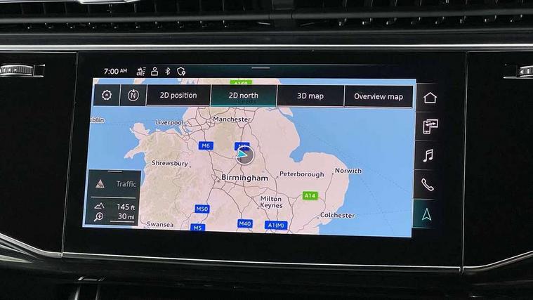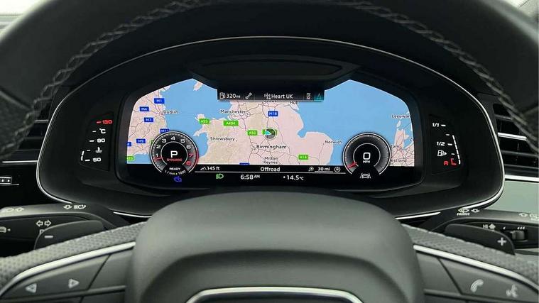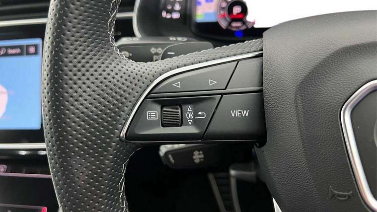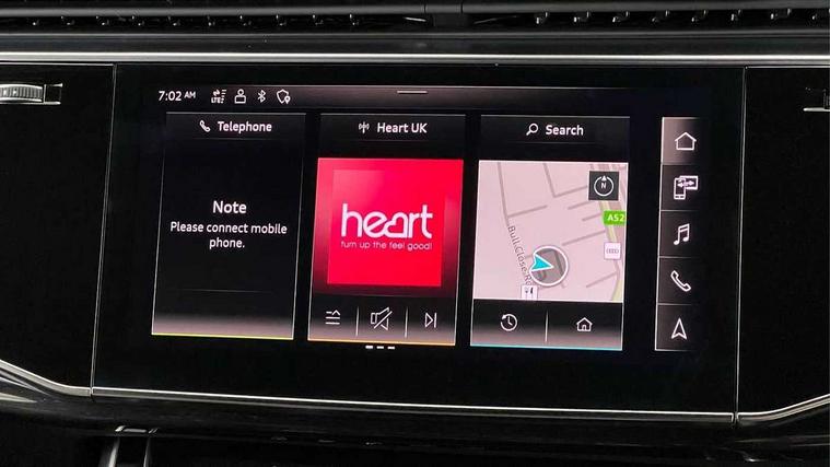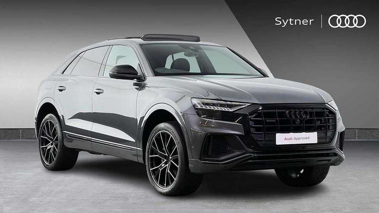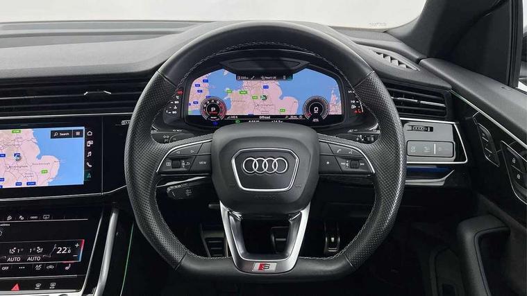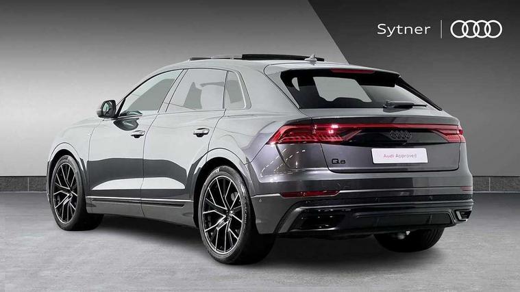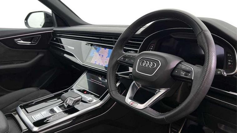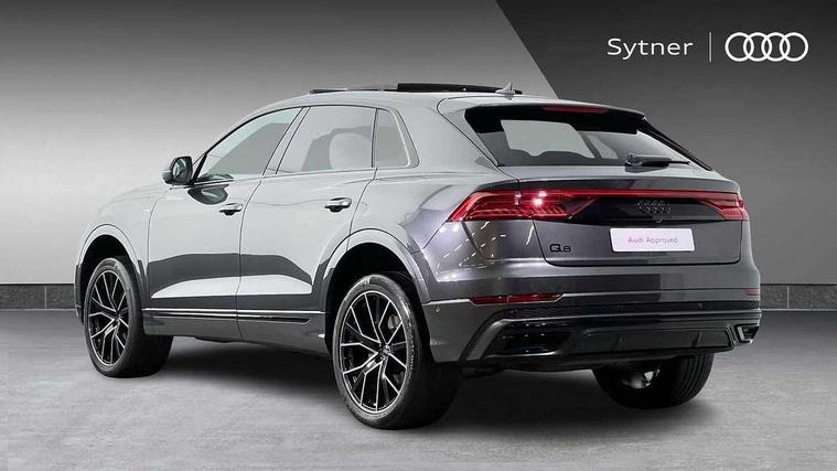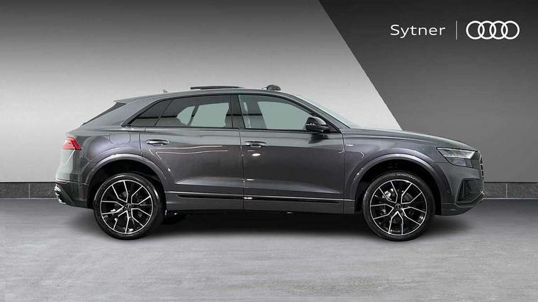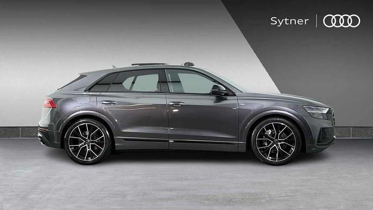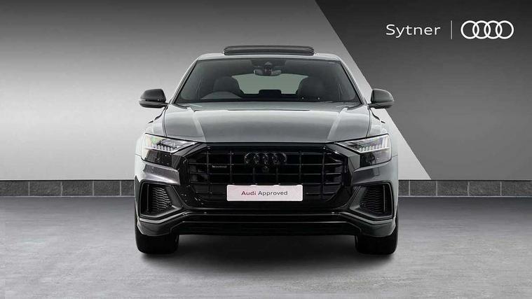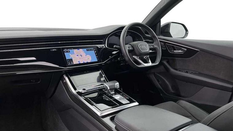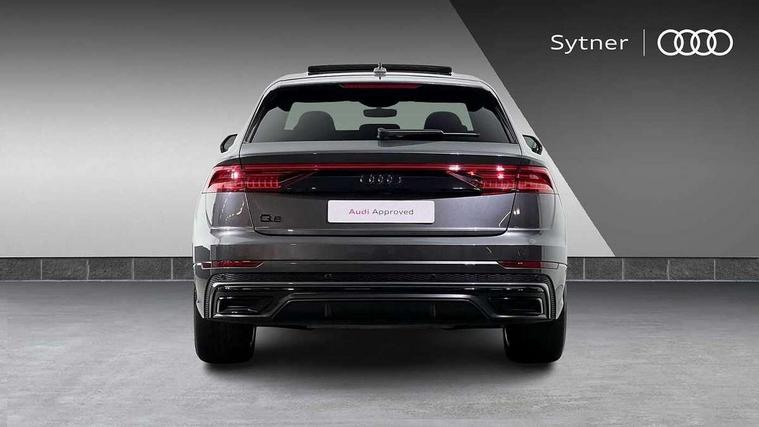 10.1" and 8.6" Dual colour touchscreens, Audi connect safety and service (e-call), Audi connect with Amazon Alexa Integration, Audi drive select, Audi parking system plus includes 360 degree display with front and rear sensors, Audi phone box with wireless charging, Audi virtual cockpit - 12.3" high resolution LCD display with fully customisable instrument cluster, Automatic start/stop system, Electro-mechanical PAS, Low washer fluid indicator, MMI - Multi Media Interface control system, MMI navigation plus with MMI touch, Natural voice recognition, On board computer, Operating buttons in black, glass look with haptic feedback, Power operated tailgate, Rear view camera, Service interval indicator, Smartphone interface includes wireless Apple carplay/Android Auto, 48V Mild hybrid technology, 85 litre fuel tank, Adaptive sport air suspension, Quattro all wheel drive with self locking centre differential, Audi music interface with 2 USB ports with charge and data functions, Audi sound system with 6 channel amplifier, 180 watt amplifying capacity and 10 loudspeakers including subwoofer, Aux-in socket, DAB Digital radio, Acoustic windscreen, Audi HD Matrix LED headlights with dynamic front and rear indicators, Auto dimming frameless rear view mirror, Coming/leaving home lighting function, Electric front+rear windows, Electrically adjustable/heated/folding/auto dimming door mirrors with integrated LED indications + kerb view function for passenger side, Headlight washers, Heat insulating glass in windshield, LED signature daytime running lights, Platinum grey front spoiler lip and diffuser insert with honeycomb grille in black, Privacy glass - dark tinted rear and rear side windows from B-pillar backwards, Rain and light sensors, Rear wiper, 4 zone deluxe automatic climate control, 4-way lumbar support for front seats, 40:20:40 split folding rear bench seat, Black cloth headlining, Comfort front centre armrest, Driver seat memory function, Electrically adjustable front seats, Front head restraints, Front/rear floor mats, Heated front seats, ISOFIX child seat mounting for front passenger seat and 2 outer rear seats with top tether child seat mounting for all 3 rear seats, LED interior ambient lighting, Luggage compartment sill protection in stainless steel, Rear centre armrest with 2 cupholders, Rear headrests, Rear seat bench plus, Stainless steel pedals, Sunvisors with illuminated vanity mirrors, Titanium Black Styling Pack - Q8, 3 point seatbelts on all seats, Audi pre sense front, Driver and front passenger, front side and curtain airbags, Electromechanical parking brake, Electronic Stability Control (ESC) including ABS, ASR and EDL, Front passenger airbag deactivation, Hill descent control, Hill hold assist, Predictive pedestrian protection, Seatbelt monitoring, Traction control, Tyre pressure loss indicator, Warning triangle and first aid kit, Anti theft alarm with tow away protection, Anti-theft wheel bolts and wheel loosening detection, Immobiliser, Keyless go with remote central locking, Polished oak trim with grey finish inlay, Tool kit, Tyre repair kit,
