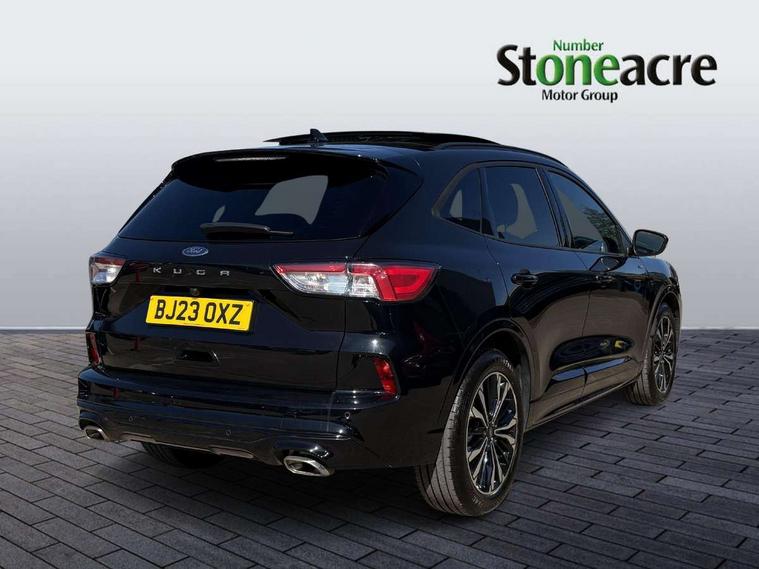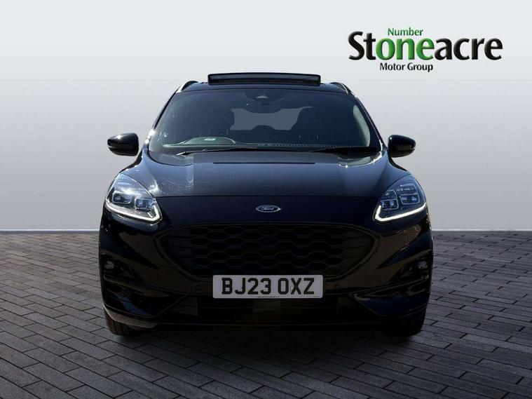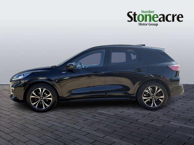 12.3" digital colour instrument cluster, Ford easy fuel, Ford SYNC 3 with 8" TFT LCD touchscreen, App Link, andriod auto/apple carPlay, emergency assistance and navigation with Ford pass connect, Front and rear parking sensors, Hands free power tailgate, Lane keeping aid with lane departure warning, Power assist steering, Rear view camera, Selectable drive modes, Service interval indicator, Sports suspension, Twist beam rear suspension, B&O premium audio system with 10 speakers and subwoofer, 2 USB ports, DAB radio/CD, Auto headlamps with high and low beam, Black roof rails, Day/night rear view mirror, Front LED fog lamps, Large rear spoiler, LED daytime running lights, LED rear lights, Power folding heated door mirrors with puddle lights, Power front/rear windows with global close, Power opening panoramic roof, Privacy glass, Quickclear heated windscreen, Rear side wing doors, Rear wiper, ST Line body styling kit with unique front and rear fascia and bumper, rear painted diffuser, front painted skid plates, dark mesh upper grille, ST Line front scuff plates, Third brake light, Twin exhausts, 10 way power adjustable drivers seat, 2nd row sliding seats with 60:40 split, 8 way manual passenger seat including lumbar support and height adjust, Alloy pedals, Centre console with electronic parking brake, Dark headlining and pillars, Electronic automatic temperature control (EATC), Flat bottomed leather steering wheel in sensico with red stitching, Front and rear head restraints, Heated passenger and driver seats, Heated rear seats, Heated steering wheel, Partial premium touch sensico leather upholstery with black cloth inserts and red stitching, Rear charging point, Single front passenger seat, Sports seats, ST Line front and rear floor mats, ST Line gear knob, 3x3 point rear seatbelts, Airbags - front driver/passenger, front and rear curtain, Drivers knee airbag, Electronic stability control (ESC) and ABS, Ford MyKey Gen 2 safety system, Manual child proof rear door locks, Post collision braking, Pre collision assist with autonomous emergency braking, Rear seat Occupancy alert, Red brake calipers, Tyre pressure monitoring system, Engine immobiliser, Keyless entry and Ford power start button (Keyless start), Locking wheel nuts, Remote powered central double locking doors, Thatcham category 1 alarm,