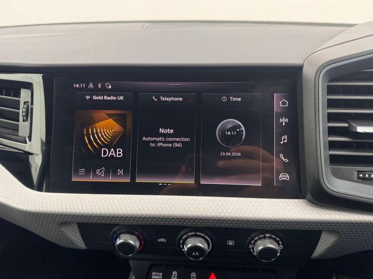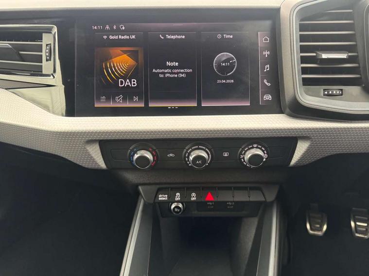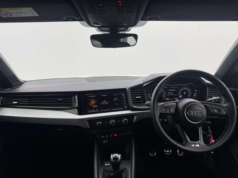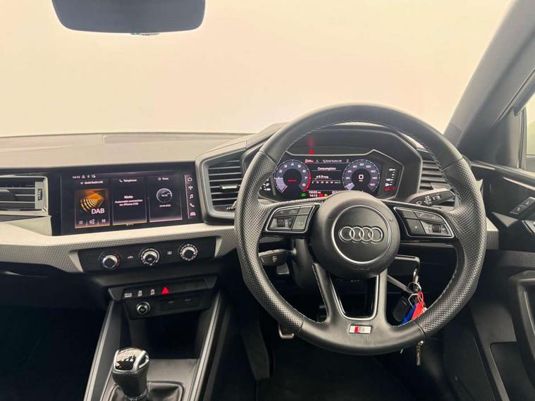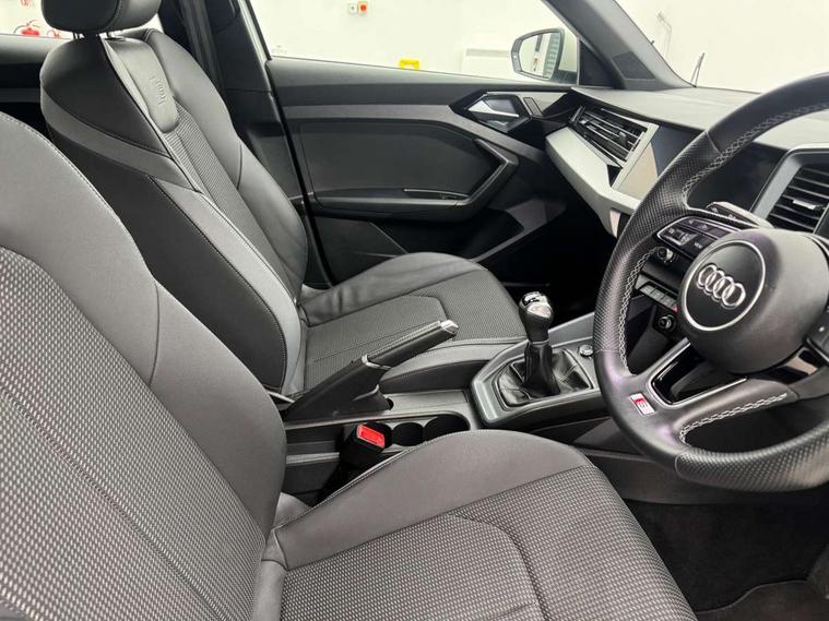 10.25" Digital instrument cluster display classis style instrument dials + speed, odometer, time, outside temperature, telephone menu + fuel level warning, Audi drive select - power steering assistance + engine, Audi smartphone interface with connect compatible smartphone via USB directly MMI display + Nav, music, third party apps controlled via MMI controller, Automatic start/stop system, Bluetooth interface, Cruise control, Driver's information system, Electromechanical power steering, Emergency e-call, Emergency services call system, Lane departure warning system, Service interval indicator, Speed limiter, Voice control system, Washer fluid level indicator, Sports suspension, 1 x SDXC card reader, 2 x USB type C connection points, DAB Digital radio, MMI radio plus with 8.8" colour MMI display screen and MMI touch, Auto dimming rear view mirror, Body coloured door mirrors, Door sills with aluminium inlays and S Line logo, Electric front and rear windows, Electrically adjustable, heated, folding door mirrors with integrated LED side indicator, Front side air inlets in grained matt black and C frame in anthracite black, Heat insulating glass windscreen and side windows, Heated rear windscreen, High level LED brake light, LED headlights with LED rear lights + dynamic rear indicators + headlight adjustment and high beam, turning light + LED daytime running lights, Radiator grille and rear diffuser in matt anthracite black, Radiator protective grille frame in matt aluminium silver, Rain and light sensors, Rear fog lights, Rear side wing doors, Rear wing door, Rear wiper, S line badges on front wings, Side front spoiler lips in grained matt black, 12V socket in centre console with two cup holders, 3 rear seats with headrests, 3 seat bench in 2nd row, 3 spoke leather multi-function plus steering wheel features S badging and grips in perforated leather with contrast stitching, 40:60 Split folding rear seat or folded fully, Black cloth headlining, Driver and passenger seat with manual height adjust with forward and backwards adjustment, Front and rear black floor mats with contrast stitching in fine silver, Front head restraints, Front passenger seat, Height and reach adjustable steering wheel, ISOFIX child seat mounting for front passenger and outer rear seats including top tether attachment point of outer rear seats, Leather gear knob with aluminium trim, Luggage compartment light with front and rear reading lights, Manually adjustable lumbar support in front seats, Stainless steel pedals, LED interior lighting pack - A1, Luggage compartment pack - A1, S line exterior styling pack - A1 Sportback, 3x3 point rear seatbelts, Audi pre-sense front with pedestrain and cyclist recognition, Brake assist function, Driver and front passenger airbag with front side and head airbags, Electronic Stability Control including ABS, EBD, ASR and EDL, Front passenger airbag deactivation switch, Hill hold assist, Manual rear child locks, Seatbelt height adjustment for front seats, Seatbelt monitoring, Tyre pressure warning light, Warning triangle and first aid kit, Anti theft alarm, Anti theft wheel bolts and loose wheel warning, Immobiliser, Remote central locking with 2 foldaway keys, Aluminium trim for control switches, air vents and digital instrument cluster, Silver grey inlays polygon structure in diamond paint finish, Structured grey accent areas including air vents, door handle recesses and centre console in quartz paint finish,