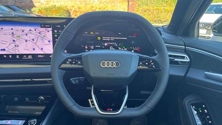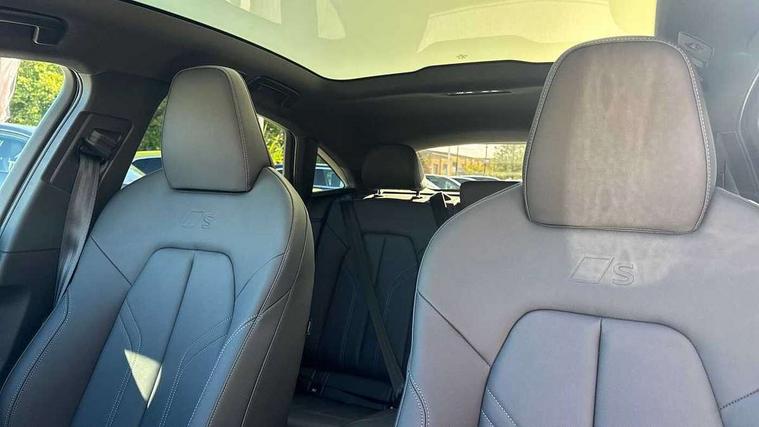 Adaptive cruise control, Advanced driver attention and fatigue montior, Audi application store, Audi assistant, Audi connect emergency call and service, Audi drive select, Audi virtual cockpit plus with 11.9" OLED colour display, Automatic start/stop system with coasting functionality, Camera based traffic sign recognition, Intersection assist, Lane departure warning, MMI navigation plus with high resolution 14.5" OLED touchscreen colour display, Park assist plus, Parking system plus with 360 display, Progressive steering with servotronic, Rear view camera, Smartphone interface, Swerve assist and turn assist, Traffic sign based speed limiter, Household plug type G, Hybrid propulsion system, Industrial connector CEE 32A, 230V, long and straight for the e-tron charging system, Mode 3 type 2 AC charging cable 22kW, Sports suspension lowered by 20mm, 2 USB-C ports in both the front and rear, Audi sound system impressive sound with 8 loudspeakers including centre speaker and subwoofer, 6-channel amplifier with a total output of 180 watts, DAB digital radio reception, Smartphone compartment with wireless charging, Aluminium window trims, Auto dimming rear view mirror, Body colour door mirrors, Door mirrors - electrically adjustable, heated, folding and auto dimming on both sides, Front and rear electric windows, Front door sill trims with aluminium inlays, illuminated with 'S' logo, High beam assist, LED headlights Plus incl. digital daytime running lights, turning light, all-weather light, motorway light, manouevring light and intersection light, LED rear lights pro incl. dynamic rear indicators and illuminated light strip with animated coming and leaving home function, LED third brake light, Privacy glass, Rear and side windows with heat insulating glass, Rear boot, Rear side wing doors, Removal of S line badge on the front wings, S line bumpers, radiator grille and diffuser in phantom black and diffuser insert in matt anthracite, White rhombus logo projection light in exterior mirrors, Windscreen with acoustic glazing, 3 rear headrests, 3 seat rear bench, 3 spoke leather steering wheel with multi-function buttons with touch control, flattened on top and bottom, with S badging and contrast stitching, 3-zone automatic climate control, 40:20:40 split folding rear seat bench with centre armrest and cup holders, Auxiliary air conditioning, Comfort front centre armrest, Front and rear floor mats, Front seats with manual adjustment for position and 4-way electric lumbar support, Front sport seats with integrated headrest and S embossed logo, Headlining in black cloth, Heated front seats, i-Size child seat mounting on the front passenger side and outer rear seats, i-Size and top tether on the outer rear seats, LED roof module front and rear including reading lights, Luggage compartment lid, electrically opening and closing, Manual steering column height and depth adjustment, Single front passenger seat, Stainless steel pedals and footrest, Steering wheel grips in perforated leather and shift paddles, Storage compartment lighting under the centre armrest, Ambient lighting package plus - A5, 3x3 point rear seat belts, Acoustic vehicle alerting system, Driver airbag, Electric child safety locks, First aid kit with warning triangle and vests, Front emergency brake assist, Front passenger airbag, Front passenger airbag deactivation, Front side airbags with head airbag system and front interaction airbag, Hill hold assist, Seat belt monitoring with rear seat occupant reminder, Tyre pressure loss indicator, Anti theft alarm, Anti-theft wheel bolts, Keyless Go, Accent surfaces and control buttons in gloss black, Black dashboard with contrast stitching, Inlays in matt brushed aluminium with linear embossing, anthracite, Softwrap in leatherette with contrast stitching, Upper and lower interior elements in leatherette, Tyre repair kit,