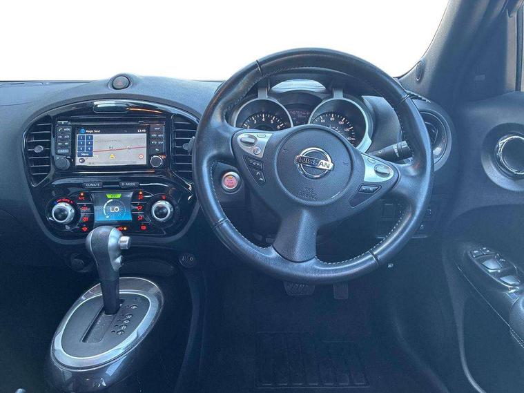Around View Monitor, Blind spot monitoring, Bluetooth system, Colour rear view camera, Cruise control + speed limiter, Door/boot open warning light, Dusk sensor, Electric speed sensitive power steering, Exterior temperature gauge, Lane departure warning system, Low fuel level warning light, Moving object detection, Nissan connect sat nav system, Push button starter, Service interval indicator, Trip computer, 6 speakers, Aux input, Bose personal sound system, DAB Digital radio, Steering wheel mounted audio controls, Stereo radio/CD player and MP3 facility, USB port, Automatic headlights, Body colour bumpers, Body colour door handles, Body colour door mirrors, Dark chrome grille, Electric door mirrors, Electric folding door mirrors, Electric front/rear windows, Heated door mirrors, Heated rear windscreen, LED daytime running lights, LED front fog lights, LED indicators in door mirrors, Privacy glass, Rain sensor windscreen wipers, Rear wiper, 12V socket, 3 height adjustable rear headrests, 60/40 split folding rear seat, Climate control, Driver/passenger reading lights, Driver/passenger sunvisors and vanity mirrors, Front armrest, Front cupholders x 2, Front door pockets with bottle holders, Front head restraints, Front seat belt pre-tensioners with load limiters, Gear shift indicator, Glovebox, Heated front seats, Height adjustable driver's seat, Interior courtesy lights, Internal chrome door handles, Isofix child seat preparation, Leather steering wheel and gear knob, Leather upholstery, Luggage area under floor storage box, Map reading lamp, Passenger seat back pocket, Pollen filter, Rear tonneau cover integrated into tailgate, Sports seats, Steering wheel rake adjustment, ABS + EBD + EBA, Child locks on rear doors, Driver and passenger airbags, Driver and passenger side airbags, ESP + traction control, Front and rear curtain airbags, Height adjustable front seatbelts, Passenger airbag deactivate switch, Three 3 point rear seatbelts, Tyre pressure monitoring system, VDC Dynamic Vehicle Control, Warning triangle and first aid kit, Alarm, Immobiliser, Intelligent Key, Remote central locking, 17" Urban alloy wheels, Tyre repair kit,