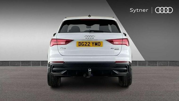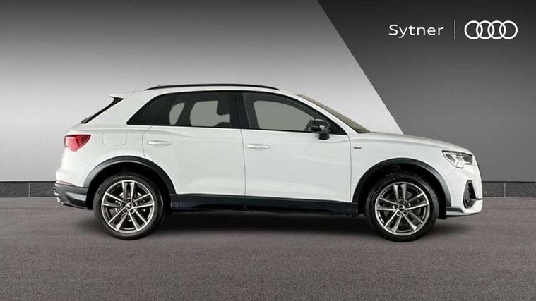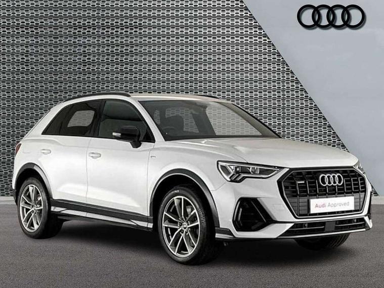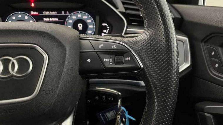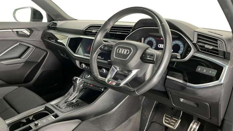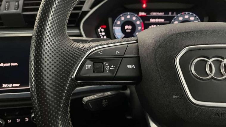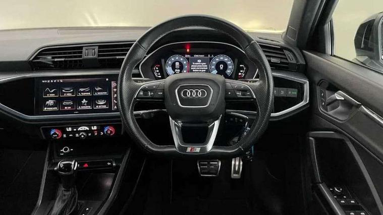 Amazon alexa Integration, Audi connect safety and service (e-call), Audi drive select, Audi lane departure warning, Audi smartphone interface includes wireless Apple carplay/Android Auto, Audi Virtual Cockpit - 10.25" display, Bluetooth interface, Camera based traffic sign recognition, MMI Navigation Plus with high resolution 10.1 inch touchscreen colour display, Power operated tailgate, Progressive steering, Service interval indicator, Start stop system with recuperation, Voice control system with natural language interaction, Sports suspension, 2 USB-C ports with charge and data functions, 6 passive loudspeakers, DAB digital radio module, Acoustic windscreen, Auto dimming frameless rear view mirror, Black roof rails, Electrically folding, adjustable and heated door mirrors with integrated LED side indicators and kerb view function for passenger side, Front and rear electric windows, Front fog lights, Grille vertical bars in aluminium silver/Matt, High gloss black finish B and C pillars, LED headlights with LED daytime running lights, LED rear lights, LED third brake light, Privacy glass dark tinted rear and rear-side windows (from B-pillar backwards), Rain and light sensors, Rear diffuser strip in matt titanium black, Rear side wing doors, Rear wiper, S line bumpers in contrasting Manhattan grey, Variable front intermittent wipers, 12V socket in rear centre console, 3 seat bench in 2nd row, 40:20:40 folding with manual adjustment for 60:40 forwards/backwards position and backrest angle, Adjustable rear seat bench/backrest with centre armrest and cupholder, Black cloth headlining, Dual zone electronic climate control, Front and rear black floor mats with contrast stitching in rock grey, Front and rear headrests, Front and rear roof module including reading lights, Front centre armrest, Glove compartment lighting, Height and reach adjustable steering wheel, Illuminated door sill trims with S logo, ISOFIX child seat mounting for front passenger with airbag deactivation and outer rear seat including top tether attachment point for outer rear seats, Luggage compartment light, Manual front seats with height adjustment, Perforated leather gearknob, Single front passenger seat, Stainless steel luggage compartment sill finisher, Stainless steel pedals, Black styling pack - Q3, Non smoking pack - Q3, 3x3 point rear seatbelts, 6 airbags - Driver, front passenger, curtain and side windows, Audi pre-sense front with pedestrain and cyclist recognition, Electromechanical parking brake, Electronic stabilisation control including ABS, ASR and EDL, Front seatbelt reminder, Hill descent control, Hill hold assist, Manual child lock in rear doors, Pre sense basic, Seatbelt monitoring, Tyre pressure warning, Warning triangle and first aid kit, Anti theft alarm, Anti theft wheel bolts, Immobiliser, Remote central locking, Detail dashboard around MMI touch colour display in glass look, black with surround in aluminium look, Leatherette door armrest, Piano black inlay,