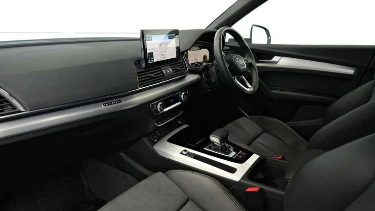 Audi connect safety and service (e-call), Audi connect with Amazon Alexa Integration, Audi drive select, Audi virtual cockpit plus with 12.3" screen and three different layout designs, Audi wireless smartphone interface, Automatic start-stop system with coasting functionality and efficiency programme, Bluetooth interface, Electro - mechanical power assisted steering, MMI navigation plus with 10.1" touch screen, Power tailgate, Reversing camera, Service interval indicator, Voice control system with Audi hotword activation "Hey Audi", Diesel particulate filter, Quattro on demand, S line sports suspension, 2 x USB charging port with aux input socket, DAB Digital radio, Acoustic windscreen, Aluminium roof rails, Audi matrix LED headlights with dynamic front and rear indicators, Auto dimming door mirrors, Auto dimming rear view mirror, Automatic headlights and windscreen wipers, Body colour door mirrors, Body colour rear diffuser with matt aluminium silver surrounds, Body colour underbody protection, Chrome plated exhaust trims, Daytime running lights, Door sills in Selenite silver, Electric adjustable/heated/folding door mirrors, Front air inlet surrounds in aluminium, Front and rear electric windows, Front radiator grille in honeycomb design, Headlight washers, High level LED brake light, Lower bumpers painted in contrast Manhattan grey, Rear chrome trim strip below lights, Rear privacy glass and rear side windows, Rear side wing doors, Rear wiper, Roof bars, S Line badges on the front wings, S Line front and rear bumpers, S Line rear spoiler, S Line side skirts, 3 rear headrests, 40:20:40 split folding 3 rear bench seat in 2nd row with rear centre armrest, Black cloth headlining, Comfort front centre armrest, Contrast stitching on seats, steering wheel and gear lever gaiter, Deluxe 3 zone electronic climate control, Front head restraints, Front/rear floor mats, Gear lever in black leather, Heated front seats, Height/reach adjustable steering column, Illuminated door sill trims with S logo, ISOFIX child seat mounting and top tether, Manual seat adjustment with 4-way electric lumbar support, Removable luggage compartment floor, Single front passenger seat, Stainless steel pedals, Sunvisors with vanity mirrors, Trunk roller cover, High gloss pack - Q5, LED interior light pack - Q5, 3 point seatbelts on all seats, 6 airbags - Driver, front passenger, curtain and side airbags, Electrically operated child locks on rear doors, Electromechanical parking brake, Electronic stabilisation control including ABS, ASR and EDL, Front passenger airbag deactivation, Hill descent control, Hill hold assist, Multi collision brake assist, Pop-up bonnet for pedestrian protection, Pre sense city, Seat belt force limiter, Seatbelt monitoring, Tyre pressure warning, Warning triangle and first aid kit, Anti theft alarm, Anti-theft wheel bolts, Keyless Go access/ignition system, Remote central locking, Matt brushed aluminium inlays,
