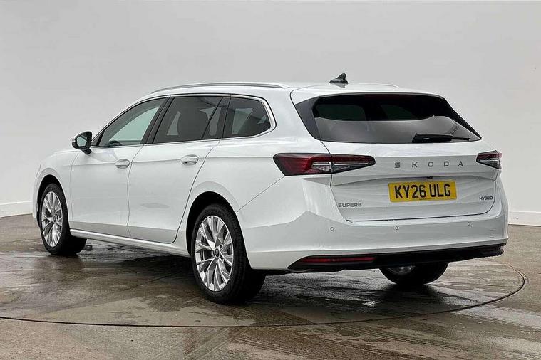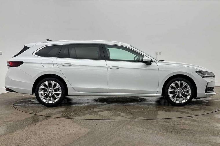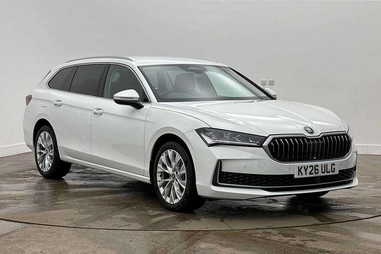 13" touchscreen display with satellite navigation, 4x USB-C ports (2x in front centre console and 2x in rear) (45W), Adaptive cruise control with speed assist, lane assist plus and traffic tram assist, Blind spot detection with door exit warning, Bluetooth system, CareConnect and Emergency Call, ChatGPT functionality, Driver fatigue sensor, Easy boot close funtion, Front assist with extended predictive pedestrian protection, Front cross traffic assist, Quick start all heating software functionality, Stop/start engine system, Traffic sign recognition, Turn assist with evasive assistance, Virtual Cockpit - 10.25" digital display, Voice control system, Washer for rear camera, Wireless charging for one smartphone (15W) with cooling function, Wireless smartlink apple carplay, SmartLink+ android auto, DAB Digital radio, Display cleaner, FM radio connection, Web radio connection, Acoustic side windows and interior noise suppression, Backdrop lighting, Body colour door handles, Body coloured door mirrors, Chrome roof rails, Chrome window surround, Dark chrome grille surround, Dynamic range control with poor weather light and integrated fog light, Electrically adjustable, heated, folding and driver side auto-dimming door mirrors with memory function, integrated indicators and logo projection, Frameless auto-dimming rear view mirror with USB-C, Ice scraper in fuel tank cap, LED 3rd brake light, Light assist with High beam control, Light assistant (coming/leaving home/tunnel light), Privacy glass, Rear fog lights (x2), Rear roof spoiler, Rear side wing doors, Rear windscreen wiper, Unique dark chrome design logo on alloy wheels, Windscreen wipers with rain sensor, 12V socket 1x centre console 1x boot, 14-way electrically adjustable, memory, front seats with 4-way pneumatic lumbar support, and extendable thigh support with smart comfort entry aid, 2x cargo elements in boot, 2x light in boot, 3 seat bench in 2nd row, 4x foldable bag hooks in boot, 60:40 Split folding rear seats, Advanced massage function for front seats, Bottle holders in the front doors 1.5 litre bottle and rear 1.5 litre bottle, Cup holder in front with easy open mat, Front armrest with storage box, Front sports comfort seats, Heated and ventilated front seats, Height adjustable front and rear head restraints, Illuminated glovebox, Interior lights with control switches, Isofix child seat fittings in outer rear and front passenger seats, LED front and rear reading lights, Single front passenger seat, Skoda lettering on steering wheel, Storage compartment with cover, Storage pockets on back of front seats, Sun visors with illuminated vanity mirrors, Ticket holder on A Pillar, Tri zone climate control, Umbrella in driver's door, Light and view package - Superb, Transport package - Superb Estate, 3 rear seatbelts, 8 Airbags - Front driver and passenger, front side driver and passenger, centre, curtain front and rear, drivers knee, Crew protect assist, Driver and passenger seatbelts with warning light, Electronic parking brake, ESC including ABS, EBV, MSR, ASR, EDS, HBA, DSR, RBS, CBC, multi-collision brake (MKB) and Auto hold, Hill hold assist, Power operated child lock in rear doors, Alarm with interior monitoring tilt sensor and back up horn, Backrest remote release from trunk, Electronic engine immobiliser, Keyless start/stop, Remote central locking with SAFE system, Third key, Walk away locking, Decorative front door sills,