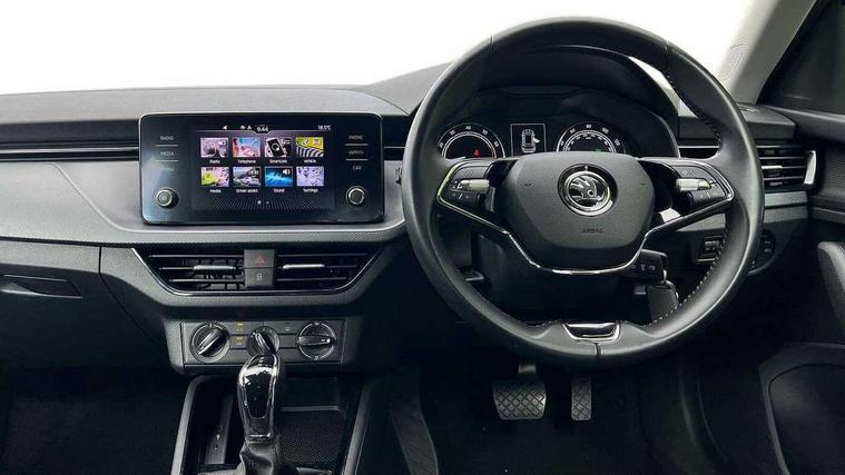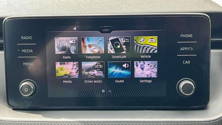 Amundsen satellite navigation with 9.2" glass colour touchscreen display, web radio, voice control and traffic sign recognition, Bluetooth system, E-call, Front assist system, Gesture control, PAS, Service indicator, Speed limiter, Wireless Smartlink for Apple CarPlay (wired for Android Auto), 8 Speakers, Auxiliary input socket, DAB Digital radio, Body colour bumpers, Body colour door mirrors and handles, Chrome grille surround, Dimming rear view mirror with black surround, Electrically adjustable and heated door mirrors, Front and rear electric windows, Headlight range control, Heated rear window, LED rear lights - low functionality, LED third brake light, Light sensors, Privacy glass, Rain sensor, Rear fog lights, Rear side wing doors, Rear wiper, 12V Accessory socket in centre console, 3 seat bench in 2nd row, Chrome inner door handles, Cloth upholstery, Front head restraints, Glove compartment with illumination, Height adjustable driver and front passenger seats - manual, Ice scraper, Isofix child seat fittings on outer rear seats, ISOFIX on front passenger seat, Manual lumbar support for front seats, Rake/reach adjustable steering wheel, Reading lights, Single front passenger seat, Sun visors with illumination on front passenger, Textile floor mats, Third rear headrest, Top tether for front passenger seat, Umbrella in driver's door, 3x3 point rear seatbelts, Airbags - driver and front passenger, ESP, Front passenger airbag deactivation switch, Front side airbags with curtain airbags, Hill hold control, Manual parking brake, Manual rear child locks, One tone horn, Rear disc brakes, Seatbelt reminder for driver an co-driver, Traction control, Tyre pressure monitor, Anti-theft alarm system with interior monitoring, backup horn, towing protection and remote central locking with SAFE system, Anti-theft wheel bolts, Electronic engine immobilizer, Silver haptic decorative insert on the dashboard with hot stamping in glossy black,