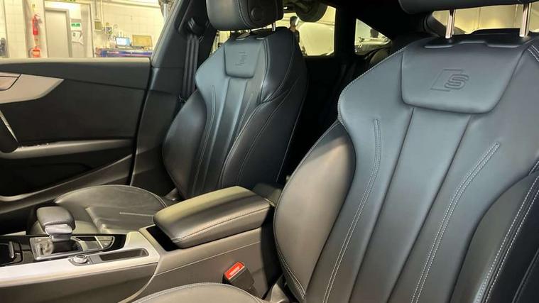 Audi connect safety and service (e-call), Audi connect with Amazon Alexa Integration, Audi drive select (Auto, Comfort, Dynamic, Efficiency and Individual), Audi parking system plus with front and rear sensors, Audi smartphone interface, Audi virtual cockpit - 12.3" full colour digital instrument cluster, vehicle/engine speed, Radio/media information+Driver assistance systems, Automatic start-stop system with coasting functionality and efficiency programme, Bluetooth interface, Electro-mechanical power steering, Email, calendar and text messages displayed via MMI, MMI nav+ with MMI touch - 10.1" high resolution MMI display, touch sensitive, 3D map, route/country info, dynamic route guide, personal route assist, Power operated tailgate, Rear view camera, Service interval indicator, Voice control system, 54 litre fuel tank, Sports suspension lowered by 23mm, 8 passive loudspeakers, CD player, DAB digital radio reception, Two additional USB ports for rear passenger in rear centre console, Two SDXC card slots, Auto dimming door mirrors, Auto dimming rear view mirror, Body colour bumpers, Body colour door handles, Body colour front spoiler lip, Body colour side sill trim, Body coloured door mirrors, Electric adjustable heated door mirrors, Electric folding door mirrors, Electric front windows, Front fog lights, Honeycomb structure radiator grille in grained matt black, Kerb-view function for passenger side, LED headlights and rear lights with LED daytime running lights, LED side indicator lights integrated into door mirrors, LED third brake light, Matt aluminium silver tailpipe trim, Privacy glass, Rain and light sensors, Rear side wing doors, Rear wiper, S line badges on front wings, S line front and rear bumpers with side skirts, S Line rear diffuser in matt anthracite black with trim strip in matt aluminium silver, Side air inlets in grained matt black with matt aluminium silver inlay, Variable front intermittent wipers, Windscreen with acoustic glazing, 3 seat bench in 2nd row, 3 spoke high multifunction leather sport steering wheel with paddle shfit and S badging perforated leather grips, 4 way electric lumbar support for driver and front passenger, 40/20/40 split folding 3 seater rear bench seat, Adjustable steering column, Black cloth headlining, Black perforated leather gearknob, Contrast stitching on seats, steering wheel and gear lever gaiter, Deluxe 3 zone electronic climate control, Front centre armrest, Front head restraints, Front/rear floor mats, Heated front seats, Illuminated door sill trim with S logo, ISOFIX child seat mounting and top tether, Luggage compartment mat, Manual seat adjustment, Rear centre armrest, Rear headrests, Single front passenger seat, Stainless steel pedals, Sunvisors with vanity mirrors, LED interior light pack - A5/RS5, 3x3 point rear seatbelts, 6 airbags - Driver, front passenger, curtain and side airbags, Electromechanical parking brake, Electronic Stabilisation Control (ESC) including ABS, ASR and EDL, Front passenger airbag deactivation, Height adjustable front seatbelts, Hill hold assist, Manual child lock in rear doors, Multi collision brake assist, Pop-up bonnet for pedestrian protection, Pre sense city, Seatbelt monitoring, Tyre pressure warning, Variable restraint system, Warning triangle and first aid kit, Anti theft alarm system, Anti theft wheel bolts, Immobiliser, Keyless Go, Remote central locking, Matt brushed aluminium inlays, Tool kit, Tyre repair kit,