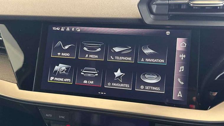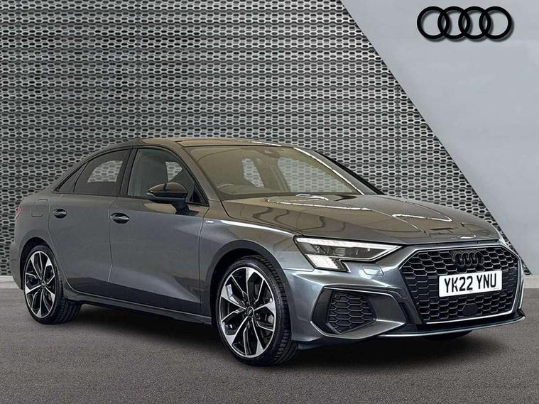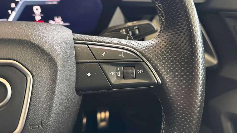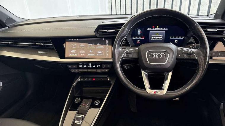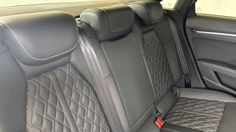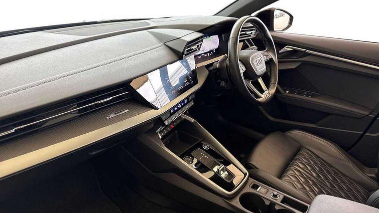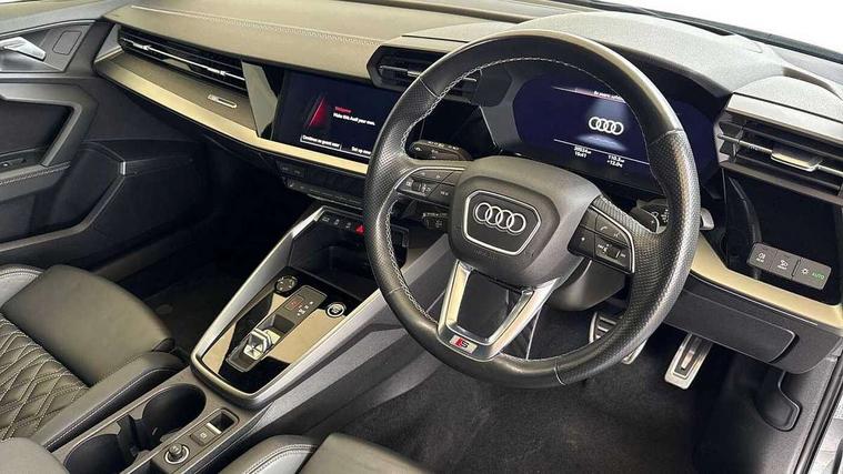 Audi connect emergency call and service, Audi drive select (Auto, Comfort, Dynamic, Efficiency and Individual), Audi smartphone interface, Audi virtual cockpit plus - 12.3" dynamic digital instrument cluster, Automatic start/stop system with recuperation, Bluetooth interface, Collision avoidance assistant, Electromechanical power speed sensitive steering, Head up Display, Lane departure warning system, MMI Navigation Plus with high resolution 10.1" colour touch screen display, Reversing camera, Service indicator, Voice control system with natural language interaction, S sports suspension with damper control and lowering by 15mm, 2x USB Type C ports (for charging and data transfer), Bang and Olufsen premium sound system with 3D sound, CD player, DAB Digital radio, 3rd brake light, Acoustic glass windscreen, Audi Beam uses LEDs to project Vorsprung onto the ground as you exit your A3, Audi matrix LED headlights, LED rear lights, dynamic front and rear indicators and headlight cleaning system, Auto dimming frameless rear view mirror, Electric panoramic sunroof, Electrically adj heated/folding + automatically dimming exterior mirrors + automatic kerb side function for passenger side exterior mirror, Front electric windows, Illuminated door sills with aluminium inserts at the front with S logo, Integrated LED indicators in door mirrors, LED daytime running lights, Light and rain sensors, Model and engine designation badges at rear, Privacy glass - dark tinted rear window, rear door and side windows, Rear electric windows, S roof spoiler, 12V socket and storage compartment in front centre console, 3 spoke leather multifunction steering wheel with gear shift paddles, 4 way electrically adjustable lumbar support for driver and front passenger, 40/20/40 split folding rear seat bench with cupholder, Black cloth headlining, Dual zone electronic climate control, Electrically adjustable front seats, Fine Nappa leather upholstery with front sports seats S embossed logo, Front and rear centre armrest in leather, Front and rear headrests, Front/rear floor mats, Heated front seats, Height and reach adjustable steering wheel, Interior lighting - glove compartment light and right hand side, Luggage compartment floor covering, Seat side bolsters, Stainless steel pedals and front footrest in black, Aluminium interior elements pack - A3, Black styling pack - A3 Saloon Vorsprung, Driver Assistance pack - A3 Saloon, Extended ambient lighting pack - A3/S3 Saloon, LED interior lighting pack - A3 Saloon Edition 1/Vorsprung, 3x3 point rear seat belts, Driver and front passenger airbag with passenger airbag deactivation, Electronic Stabilisation Control (ESC) including ABS, ASR and EDL, First aid kit with warning triangle and 2 safety vests, Front side airbags with head airbags and interaction airbag, Hill hold assist, Pre-sense front with pedestrian and cyclist detection, Seatbelt monitoring, Tyre pressure loss indicator, Advanced key and power operated tailgate - Luggage compartment lid opens electrically, Anti theft alarm, Anti-theft wheel bolts, Electronically operated child lock, Immobiliser, Remote control central locking, Aluminium air vent surrounds, Aluminium trim elements, Carbon inlays, accent surfaces in the dashboard and centre console in platinum grey silk effect paint finish,
