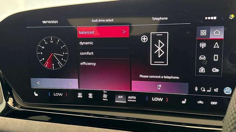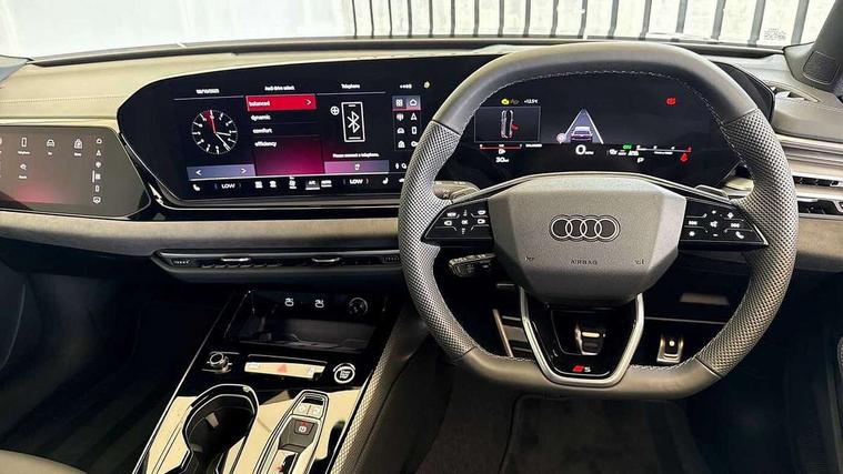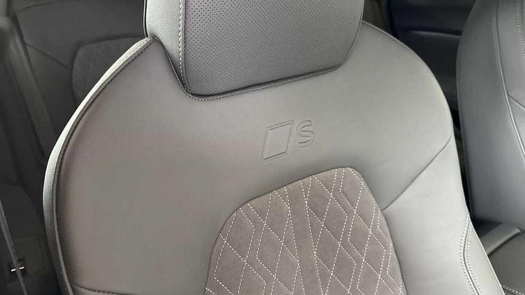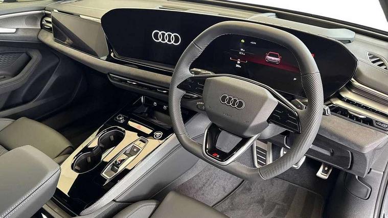Adaptive cruise control, Advanced driver attention and fatigue montior, Audi application store, Audi assistant, Audi connect emergency call and service, Audi drive select, Audi virtual cockpit plus with 11.9" OLED colour display, Automatic start/stop system with coasting functionality, Camera based traffic sign recognition, Intersection assist, Lane change assistant with exit warning system, rear cross traffic alert and rear turn assist, Lane departure warning with emergency assist, MMI 10.9" front passenger touch display, MMI navigation plus with high resolution 14.5" OLED touchscreen colour display, Park assist plus, Parking system plus with 360 display, Progressive steering with servotronic, Smartphone interface, Swerve assist and turn assist, Top view camera, Traffic sign based speed limiter, Sports suspension lowered by 20mm, 2 USB-C ports in both the front and rear, Audi sound system impressive sound with 8 loudspeakers including centre speaker and subwoofer, 6-channel amplifier with a total output of 180 watts, DAB digital radio reception, Smartphone compartment with wireless charging, Aluminium window trims, Auto dimming rear view mirror, Black door handles, Black roof rails, Dark chrome-plated tailpipe trims, Door mirrors - electrically adjustable, heated, folding and auto dimming on both sides, Front and rear electric windows, Front door sill trims with aluminium inlays, illuminated with 'S' logo, Headlight cleaning system, High beam assist, LED daytime running lights, LED rear lights pro incl. dynamic rear indicators and illuminated light strip with animated coming and leaving home function, LED third brake light, Matrix LED headlights with eight light signatures selectable via the MMI or the myAudi app, Privacy glass, Rear and side windows with heat insulating glass, Rear side wing doors, Rear wash/wipe, S Line badges on the front wings, S line bumpers, radiator grille and diffuser in phantom black and diffuser insert in matt anthracite, White rhombus logo projection light in exterior mirrors, Windscreen with acoustic glazing, 3 rear headrests, 3 seat rear bench, 3 spoke leather steering wheel with multi-function buttons with touch control, flattened on top and bottom, with S badging and contrast stitching, 3-zone automatic climate control, 40:20:40 split folding rear seat bench with centre armrest and cup holders, Comfort front centre armrest, Electrically adjustable front seats, Front and rear floor mats, Front sport seats with integrated headrest and S embossed logo, Headlining in black cloth, Heated front seats, i-Size child seat mounting on the front passenger side and outer rear seats, i-Size and top tether on the outer rear seats, Luggage compartment lid, electrically opening and closing, Manual steering column height and depth adjustment, Memory function for driver seat, Single front passenger seat, Stainless steel pedals and footrest, Steering wheel grips in perforated leather and shift paddles, Ambient lighting package plus - A5, Black styling package plus - A5, 3x3 point rear seat belts, Acoustic vehicle alerting system, Convenience key with safelock, Driver airbag, Electric child safety locks, First aid kit with warning triangle and vests, Front emergency brake assist, Front passenger airbag, Front passenger airbag deactivation, Hill hold assist, Occupant detection in rear seat area, Proactive passenger protection system for front, sides and rear, Red brake calipers, Seat belt monitoring with rear seat occupant reminder, Side airbags in front and rear with head airbag system and front interaction airbag, Tyre pressure loss indicator, Anti theft alarm, Anti-theft wheel bolts, Keyless Go, Accent surfaces and control buttons in gloss black, Black dashboard with contrast stitching, Softwrap in Dinamica with contrast stitching, Upper and lower interior elements in dinamica microfiber, 20" 5 arm fold design Audi sport alloy wheels in silk matt grey and gloss turned finish, Tyre repair kit,