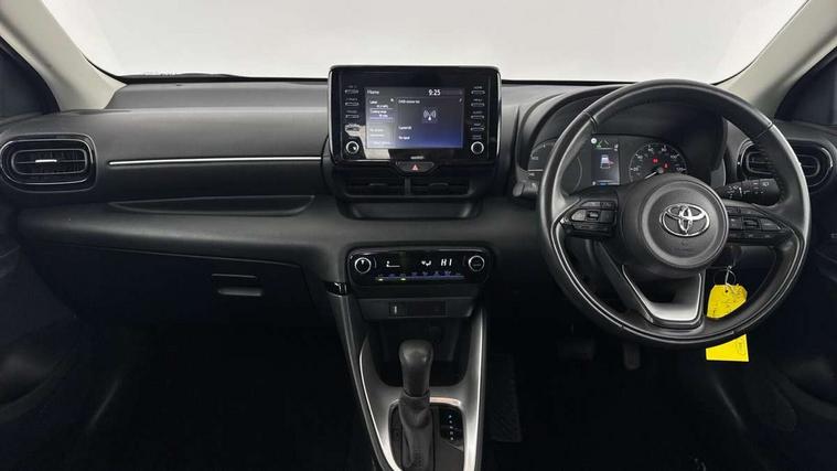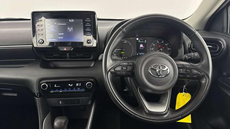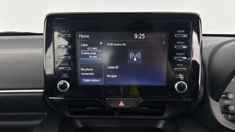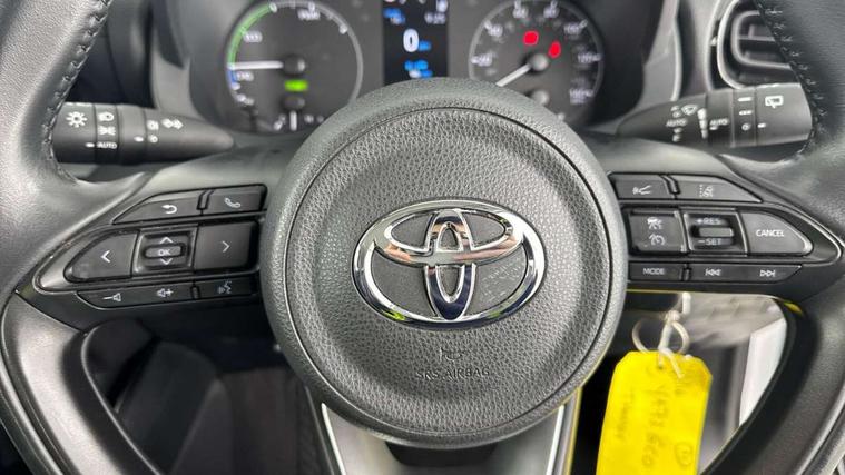 4.2" coloured TFT multi information display with analogue speedometer, Adaptive cruise control, Adjustable speed limit with speed warning, Bluetooth connectivity, E-call, Electric power steering, Hybrid energy display, Multi information display switches on steering wheel, Reversing camera, Smartphone integration with Apple CarPlay and Android auto, Smartphone integration with Apple CarPlay/Android Auto, Tailgate, Voice recognition, Vehicle Stability Control (VSC), 4 speakers, 9" Multimedia touch display, Toyota Touch 3 system with DAB radio, USB connection, Acoustic windscreen glass, Auto windscreen wipers, Automatic headlights, Body coloured door mirrors, Bulb indicators, Chequered front grille, Daytime running lights, Electric adjustable heated door mirrors, Follow me home headlights, Front auto power windows with anti jam protection, Front halogen fog lights, Halogen projector headlights, LED High mounted stop lamp, Manual headlight levelling, Rain sensor, Rear auto power windows with anti jam protection, Rear side wing doors, Rear spoiler, Rear wiper, Shark fin antenna, Turning signal integrated indicators in door mirrors, Variable front intermittent wipers, 3 adjustable rear headrests, 3 seat bench in 2nd row, 3 spoke leather steering wheel, 60/40 split folding rear seat, Active headrests, Adjustable boot height, Auto air conditioning, Coat hooks in rear grab handles, Cup holders (2 front & door), Data Communication Module (DCM) connected services, Fabric upholstery, Front armrest, Glovebox, Grey roof lining, Height adjustable driver's seat, Isofix seat fixing, Leather gearshift, Pollen filter, Shopping bag hooks, Single front passenger seat, Tilt/telescopic steering column, 3 point seatbelts on all rear seats, ABS+EBD+Brake assist, Electronic parking brake, Emergency brake light system (EBS), Front passenger airbag on/off switch, Front seatbelt reminder, Hill start assist control (HAC), Rear child proof door locks, Rear seat belt reminder, Supplemental Restraint System (SRS) 8 airbags: Driver & passenger's airbags, dual side curtain airbags, side impact airbags, front centre airbag, Toyota Safety Sense 3 with over the air updates, Tyre pressure warning system, 2x Master key, Alarm/immobiliser, Remote powered central double locking doors, Soft touch instrument panel, Space saver spare wheel,