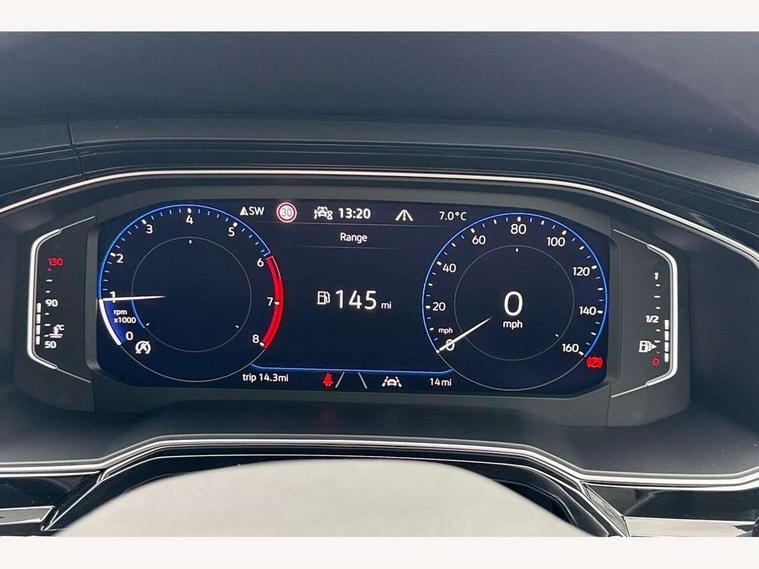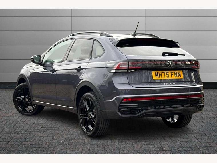 Advanced driver attention and drowsiness monitor, Digital cockpit pro - 10.25" high resolution TFT dash display screen with customizable menus and information, Driving profile selection, e-Call (emergency call), Power Steering, Predictive adaptive cruise control, Travel assist including emergency assist, Washer fluid level indicator, Wireless Charging including Bluetooth, Start-stop system with battery regeneration (recuperation - energy recovery during braking), XDS electronic differential lock for improved traction and handling, Digital radio reception (DAB+), WeConnect plus, Ambient lighting with logo projection, Aspherical driver's exterior mirror, Auto headlights, Body coloured bumpers, Body coloured door handles, Cornering headlights, Electric windows, External USB type C socket and charging sockets, LED rear combination lamp, LED third brake light, Left convex exterior mirror, Power folding adjustable/heated exterior mirrors and front passenger exterior mirror lowering function, Rear fog light on one side, reversing light on both sides, Rear side wing doors, Rear wash/wipe with intermittent wipe setting, 12V socket in centre console, 2 front reading lights, 3 rear head restraints, 3 seat bench in 2nd row, Air care climatronic air conditoning system with active combination filter and 2-zone temperature control, Black carpets, Black roof lining, Child seat anchor for child seat system i-Size, 2x top tether and child seat anchor in front on front passenger side, Chrome bezel for instrument cluster, vents, door handles + gear shift, Driver and front passenger seat height adjustment, Front + rear carpet mats, Front centre armrest, Front footwell illumination, Front sports comfort seats, Heated front seats, Height and reach adjustable steering wheel, Interior ambient lighting and surround lighting, Karoso artvelours cloth upholstery, Leather trimmed gear knob, Leather wrapped multifunction steering wheel, Luggage compartment floor, Luggage compartment light, Lumbar support for driver's and front passengers seat, Seat covers in grey + titanium black, Single front passenger seat, Split folding backrest with centre armrest and unsplit rear seat bench, Stainless steel pedals, Storage compartment under front seats, Sun visors with illuminated vanity mirrors, Black design pack - Taigo Black Edition, Black roof pack with mirror housing - Taigo, IQ.LIGHT - LED matrix headlights pack - Taigo, Light and Sight pack including High beam assist - Taigo, 2 x 3-point seatbelts/outer rear seats with ECE label, 3-point seat belts in front with pretensioner and height adjustment, 3-point seatbelt for centre rear seat, Adaptive driver and front passenger airbags with passenger airbag deactivation function, Driver and front passenger safety-optimised head restraints, Electronic stability control, Extended and predictive pedestrian/ cyclist protection, Front and rear disc brakes, Front curtain and side airbags with center airbag, Hill start assist, Manual rear child locks, Single tone horn, Tyre pressure loss indicator, Anti-theft alarm system with interior monitoring, backup horn, and towing protection, Grey anodised matte decorative inserts in dash and front door panels, 18" Misano black alloy wheels with diamond-turned surface, Breakdown kit, Low rolling resistance tyres,
