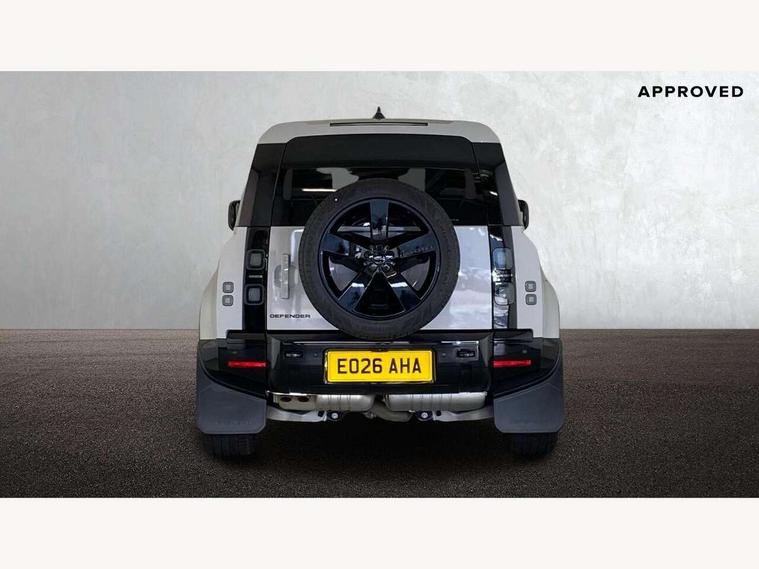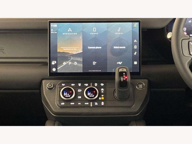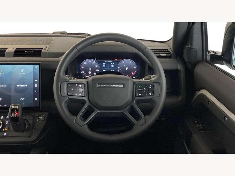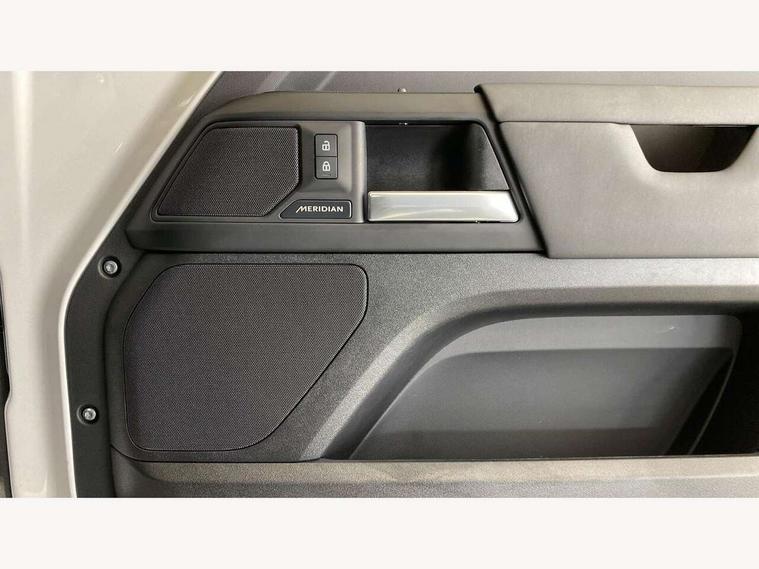 1 x USB-C (power only) & 1 x USB-C (power & data) in Row 1, 2 x USB-C in Row 2, 11.4" touchscreen, 360 degree parking aid, 3D Surround Camera with 360 View, 180 Rear View, Front Traffic Detection, Forward Vehicle Guidance, Tow Hitch Assist and clear sight Ground View, Adaptive cruise control, Android Auto, Apple CarPlay, Blind spot assist, Bluetooth system, Brake pad wear indicator, Clear exit monitor, Connected navigation pro, Driver attention monitoring system, Electric power assisted steering (EPAS), Interactive driver display, Lane keep assist, Push button start, Rear collision monitor, Rear traffic monitor, Traffic sign recognition with adaptive speed limiter, Trip computer, Wireless device charging, 8 speed automatic transmission, All wheel drive system, Twin speed transfer box, DAB Radio (Digital Audio Broadcasting), Meridian 400w sound audio system with 11 speakers and subwoofer, Pivi pro connected, Automatic headlight levelling, Automatic headlights, Black exposed rear recovery eyes, Body coloured bonnet, Darkened LED tail lights, Electric heated/power fold door mirrors with approach lights and auto dimming driver side, Electric windows with one touch open/close and anti-trap, Follow me home lighting, Front fog lights, Heated rear window with timer, Heated windscreen, LED 3rd brake light, LED tail lights, Panoramic rear side glass, Privacy glass, Puddle lights, Rain sensing windscreen wipers, Rear fog lights, Rear wiper, Side hinged tailgate, Standard tail door, Trailer stability assist, X-Dynamic badge, 12V power socket in loadspace, 3 seat bench in 2nd row, Alpine lights, Configurable cabin lighting, Durable rubber cabin flooring, Durable rubber loadspace flooring, Ebony carpet mats, Flat load space floor tray, Footwell lights, Front head restraints, Loadspace cover, Loadspace Hook, Multifunction steering wheel, Overhead stowage for sunglasses, Rear headrests, Rear ISOFIX, Rear reading lights, Single front passenger seat, Standard seat configuration, Storage glovebox, Sunvisors with illuminated vanity mirrors, Twin front cupholders, Non-smoker package, Online pack with data plan - Defender, 5 x 3 point seatbelts, ABS, Brake hold function, Cornering brake control (CBC), Customer configurable autolock, Driver and passenger airbags, DSC - Dynamic Stability Control, EBD - Electronic brakeforce distribution, Electric parking brake (EPB), Emergency brake assist, Emergency braking, ESP + traction control, Front airbags with passenger seat occupant detector, HDC - Hill descent control, Hill launch assist, Low traction launch, Remote for (e-Call, Optimised assistance call, InControl app, Climate, beep and flash and door), RSC - Roll stability control, Seat belt reminder, TPMS (Tyre pressure monitoring system), Alarm, Immobiliser, Intrusion sensor, Keyless entry, Locking wheel nuts, Secure tracker pro,