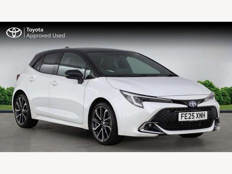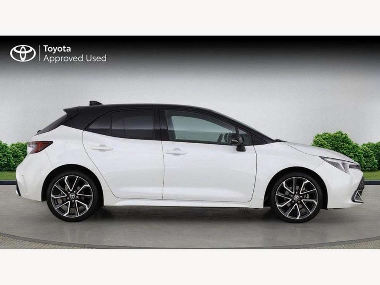 10.5" Multimedia display screen, Blind spot monitor and safe exit assist, Bluetooth telephone connectivity, Connected car functionality upgrade, tracker, remote status and e-care, Drive mode select (Eco, Normal), E-call, Electrically assisted power steering, EV drive indicator, Front and rear parking sensors, Full Digital 12.3" TFT Digital Combimeter, Head up Display, Intelligent clearance sonar, Key reminder warning, Lane Departure Alert (LDA) switch on steering wheel, Memory on adjustable speed limiter, MyT connected services, Proactive driving assist (PDA), Rear cross traffic alert, Reversing camera, Smart entry and push button start, Smartphone integration with Apple CarPlay and wired android auto, Tailgate, Toyota remote services, Toyota smart connect navigation, Wireless charger, Gasoline particulate filter, Vehicle Stability Control (VSC), AM/FM radio, DAB Digital radio, Front USB-C in centre console, Front USB-C in dashboard, JBL Premium sound system with 8 speakers, Rear USB-C device charger, Smart voice assist/ Voice recognition, USB and Aux in connectors + 12V front outlet, Adaptive headlights, Anti-jam protection on power windows, Auto headlight levelling system, Auto up and down function on all power windows, Automatic folding mirrors, Automatic headlights with high beam assist, Black centre and side air vents, Black metallic meshed front grille, Black toyota logo in front, Body coloured bumpers, Body coloured door mirrors, Body coloured front spoiler, Body coloured outside door handles, COROLLA alloy door scuff plates, Electrochromatic mirror, Follow me home headlights, LED daytime running lights, LED front fog lights, LED High mounted stop light, LED multi beam headlights, LED rear combi lights with LED lightguide, Noise reduction layer on windscreen, Piano black diffuser, Power adjustable heated door mirrors, Power front windows, Power rear windows, Privacy glass with UV filter, Rain sensing wipers, Rear bumper decoration with chrome plated inserts, Rear side wing doors, Rear under guard with chrome ornament, Rear window defogger, Rear window wiper, Reverse tilting door mirrors, Roof spoiler, Satin chrome insert on front air vents, Satin chrome insert on front door assist grips, Satin chrome inserts on rear passenger air vents, Shark fin antenna, Tailgate release with push button, Time adjustment on intermittent wiper, Turning signal integrated indicators in door mirrors, Unique grille pattern, Unique lower skirt, Unique side rocker with black insert, UV-filter on driver and passenger windows, 2 Shopping bag hooks in luggage compartment, 3 rear headrests, 3 seat bench in 2nd row, 3 spoke steering wheel with satin insert, 4 tie down hooks in luggage compartment, 60/40 split folding rear seat, Adaptive cruise control (ACC) switch on steering wheel, Adjustable speed limiter switch on steering wheel, Audio, multimedia and telephone switches on steering wheel, Black armrest on centre console box, Black gear shift console, Boot light, Centre room light, Driver and front passenger personal light, Driver and passenger assist grip, Driver and passenger seatback pockets, Driver and passenger sun visor with mirror and light, Dual zone automatic air conditioning with ECO mode switch, Electric lumbar support for passenger, Front and rear cup and bottle holders, Front door pockets, Front head restraints, Front passenger seat, Front sliding synthetic leather armrest, Front sports seats, Gear knob, Heated front seats, Illuminated entry system in room lamp, ISOFIX seat fixing (2 fixings on rear outer seats), Leather gear shift with satin chrome on gear shift console, Manual height adjustable for driver and front passenger seat, Manually tilt with sliding driver and front passenger seat, Nanoe-X air purifier, Parcel shelf, Perforated leather upholstery, Pollen filter, Power adjustable lumbar support on driver seat, Power window switches with satin chrome inserts, Rear air conditioning, Rear armrest with 2 cupholders, Rear passenger coat hooks (2), Remote air conditioning, Satin chrome inside door handles, Satin chrome surround on heater control panel, Satin chrome surround on speedometer, Sliding armrest on centre console box, Slow opening glovebox with lights, Textile floor mats, Tilt/telescopic steering column, Voice recognition switch on steering wheel, Whiplash Injury Lessening (WIL) feature (active headrest) for seats, White ambient lighting on open tray and front cup holder, Toyota safety sense 3 pack - Corolla, 3x3 point rear seatbelts, Adjustable driver and front passenger seat belt extender to top anchor point, Anti lock braking system + Electronic brake force distribution, Brake assist function, Child locks on rear doors, Downhill Assist Control (DAC), Electronic parking brake, Emergency brake light signal (EBS), Front passenger airbag on/off switch, Front seatbelt reminder, HAC - Hill start assist control, Rear seat belt reminder, Seatbelt pretensioners and force limiters, Supplemental restraint system (SRS) 7 airbags - dual driver, dual side curtain, side impact and driver knee airbags, Traction control, Tyre pressure warning system, Acoustic vehicle alert system (AVAS), Alarm with motion sensor and immobilizer, Power passenger window lock, Remote central locking + deadlocks, Satin chrome dash trim, Soft touch texture on upper dashboard, Stitching on lower dashboard, Stitching on upper dashboard, 18" 10 double spoke dark grey machined face alloy wheels, Tyre repair kit, Unique wheel finish with red wheel cap,