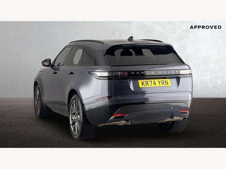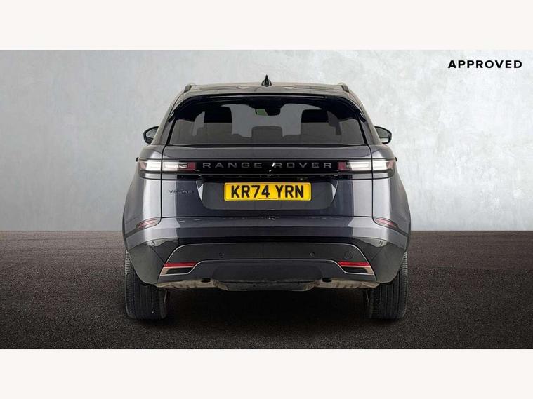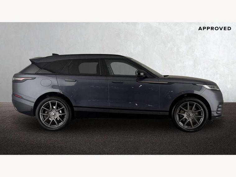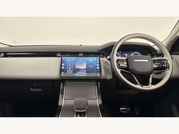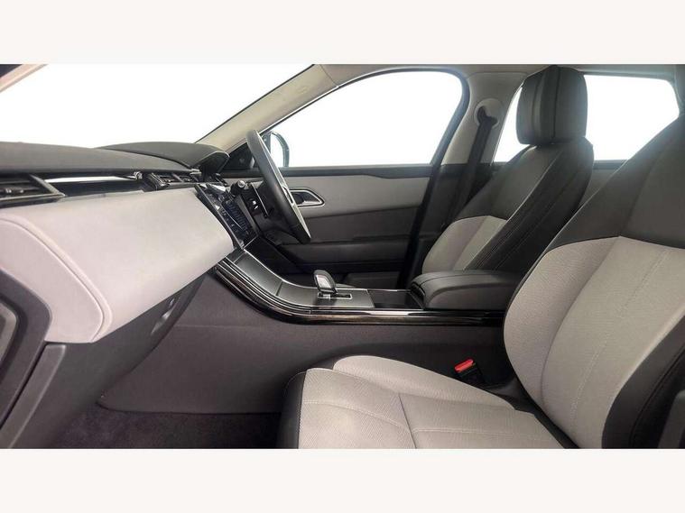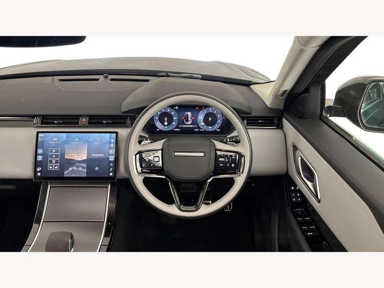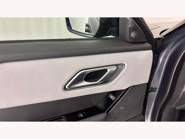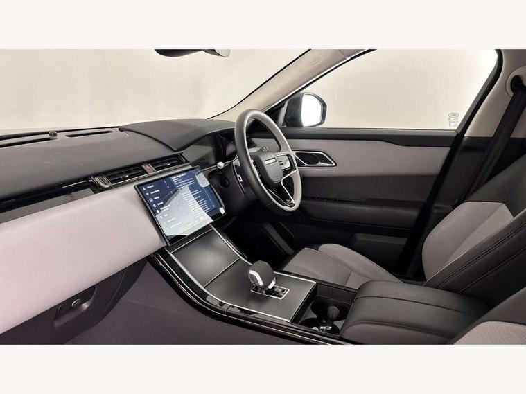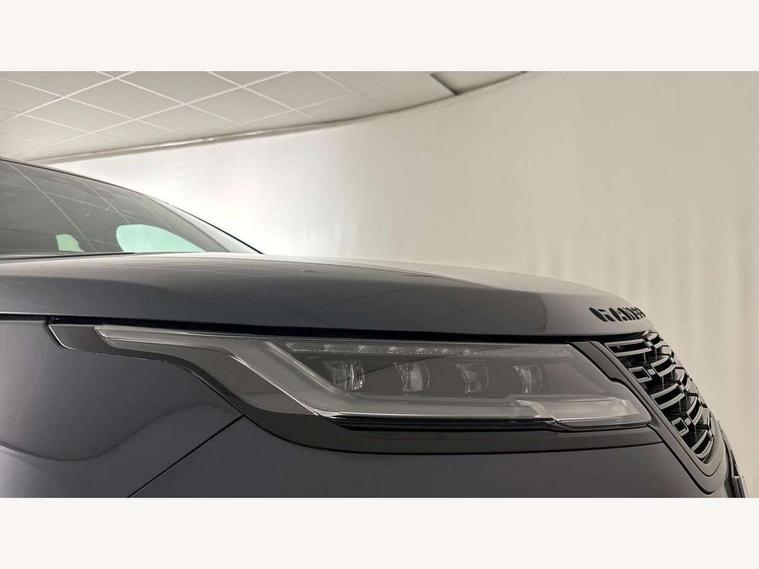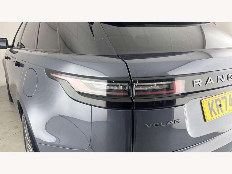 Adaptive cruise control with steering assist, Android Auto, Apple CarPlay, Blind spot assist, Bluetooth connectivity, Brake pad wear indicator warning light, Driver condition monitor, eCall emergency call system, Front and rear parking aid, InControl remote, Land Rover InControl apps, Lane keep assist, Pivi pro with connected navigation, Rear collision monitor, Rear traffic monitor, Service indicator, Speed proportional electronic power assisted steering (EPAS), Traffic sign recognition with adaptive speed limiter, Trip computer, Voice control system, Wireless device charging, 7kw on board charger, 8 speed automatic transmission, AC/DC charging, Adaptive dynamics, All terrain progress control, Coil suspension system, Home charging cable, Open differential with torque vectoring by braking, Public charging cable, Single speed transfer box, DAB radio, Steering wheel mounted controls, 3rd brake light, Acoustic laminated windscreen, Auto dimming interior rear view mirror, Automatic headlamp levelling, Automatic headlights, Body coloured bumpers, Boot protection plate, Electric windows with one touch open/close and anti trap, Flush deployable exterior door handles, Follow me home headlights, Heated rear window with timer, Heated washer jets, Heated windscreen, Metal front tread plates, Metal load space scuff plates, Pixel LED headlights with signature DRL, Power fold, auto-dimming, heated door mirrors with memory and approach lights, Rain sensor windscreen wipers, Rear animated directional indicators, Rear fog lights, Rear side wing doors, Rear wash/wipe, Tailgate/boot lid spoiler, Trailer stability assist, Velar badge, 3 seat bench in 2nd row, Ambient lighting, Bright metal pedals, Carpet mats, Driver/passenger sunvisors with illuminated vanity mirrors, Ebony morzine headlining, Electrically adjustable steering column, Extended leather upgrade, Heated steering wheel, Isofix system on outer rear seats, Loadspace cover, Overhead lighting console, Overhead stowage for sunglasses, Passive front headrests, Rear air vents, Rear centre headrest, Single front passenger seat, Twin front cupholders, Twin sliding front centre armrest, Online pack with data plan - Velar, Power socket pack 2 - Velar, 380mm front brakes and 325mm rear brakes, 3x3 point rear seatbelts, Anti-lock braking system (ABS), Cornering brake control, Curtain airbags, Customer configurable autolock, Door side intrusion beams, Driver airbag, DSC - Dynamic Stability Control, Electronic brake force distribution, Electronic parking brake, Electronic traction control, Emergency braking, Front and rear seatbelt reminder, Hill descent control, Hill launch assist, Low traction launch, Passenger airbag, Power operated child locks, Rear airbags, Roll stability control, Side airbags, Tyre pressure monitoring system (TPMS), Unpainted brake calipers, Global lock and unlock switch on driver door, Immobiliser, Intrusion sensor, Keyless entry, Lock only switch on front passenger door, Locking wheel nuts, Perimetric alarm, Remote central locking, All season tyres,