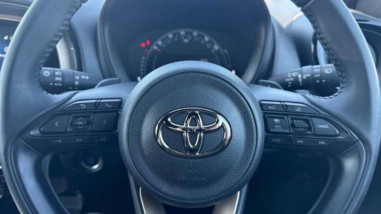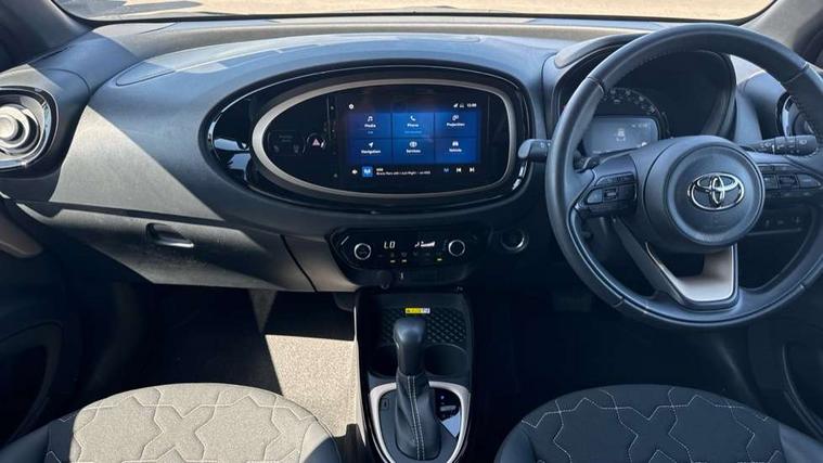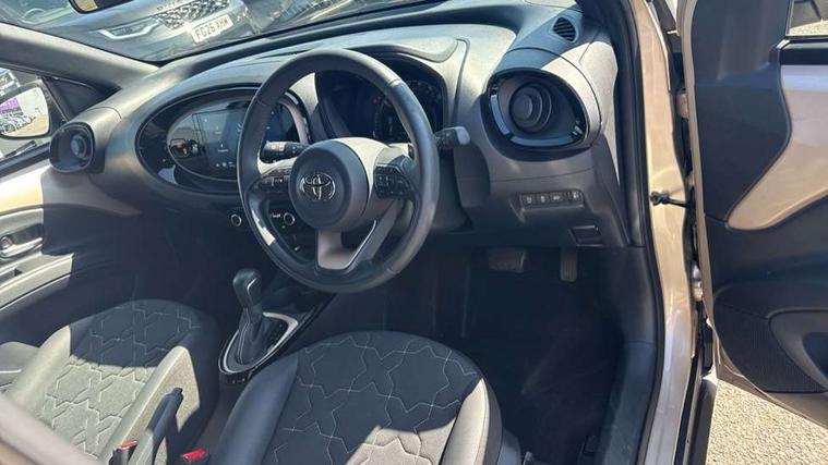 4.2" TFT colour screen, Adjustable speed limiter, Analogue speedometer, Bluetooth connectivity, Digital tachograph, Driver attention alert system, eCall emergency call system, ECO-driving indicator, Electric power steering, Front and rear parking sensors with auto brake, Intersection turn assist, Key reminder warning, Noise reduction kit, Pre collision system with emergency steering assist, Remote boot door release on key, Reversing camera with static guide lines, Smart entry and push button start, Speed limit display, Start and stop, Wireless charger, Wireless Smartphone Integration includes Apple CarPlay and Android auto, Vehicle Stability Control (VSC), 4 speakers, 9" HD multimedia display touch screen with Toyota smart connect, DAB digital audio broadcast, USB connector, Auto headlights, Auto wipers, Automatic headlights cut-off, Automatic high beam On/Off switch, Bicycle towing hook, Black fog light surrounds, Black side protection mouldings, Black wheel arch mouldings, Body colour door handles, Body coloured front bumper, Boot door scuff plate, Eclipse black rear bumper, Electric heated door mirrors, Follow me home headlights, Front and rear underruns in silver, Front fog lights, Front power windows, Gloss black door mirrors, Gloss black upper front grille, Headlight cut-off reminder, LED daytime running lights guide, LED front light guide, LED High mounted stop lamp, LED projector headlights, Manual day/night rear view mirror, Manual headlight levelling, Pagoda roof, Power adjustable door mirrors, Power back door, Privacy glass, Rain sensor, Rear combination lights LED bulb type, Rear side wing doors, Rear windscreen defogger, Rear windscreen wiper, Remote hazard lights system, Short antenna, Variable intermittent windscreen wipers, 12v power outlet - front, 2 seat bench in 2nd row, 3 spoke leather steering wheel, 50/50 split folding rear seat, Adhesive roof headlining, Adjustable speed limiter switch on steering wheel, Audio and telephone switches on steering wheel, Auto air conditioning, Black roof lining, Body colour satin anodised insert on steering wheel, Boot light, Centre room light, Chrome interior door handles, Chrome surround on air conditioning buttons, Clean air filter, Console box storage, Floor mats, Front and rear cup holders, Front head rest deco art, Front head restraints, Gear shift indicator, Height adjustable driver seat, Intelligent adaptive cruise control switch on steering wheel, ISOFIX child restraint system on rear seats, Lane departure alert switch on steering wheel, Leather gearshift knob, Light blue ambient lighting in centre console, Manual tilt steering wheel, Manually reclining and sliding driver seat, Manually reclining and sliding front passenger seat, Multimedia switches on steering wheel, Paddle shift levers on steering wheel, Partial synthetic leather upholstery, Pollen filter, Rear door pockets, Rear head restraints, Remote air-conditioning system, Satin silver insert on gear shift knob, Single compartment glovebox with lights, Single front passenger seat, Soft tonneau cover, Sun visors with mirror on driver and passenger side, Voice recognition switch on steering wheel, Toyota safety sense pack - Aygo X, Anti lock braking system + Electronic brake force distribution, Child safety door lock, Emergency brake light signal (EBS), Hill start assist control (HAC), Passenger airbag on/off switch, Seat belt reminder for front and rear seats, Supplement restraints system (SRS) - 6 airbags, Traction control, Tyre pressure warning system, Immobiliser, Remote power door locks, Black wheel centre caps, Tyre repair kit,