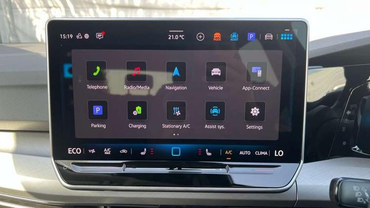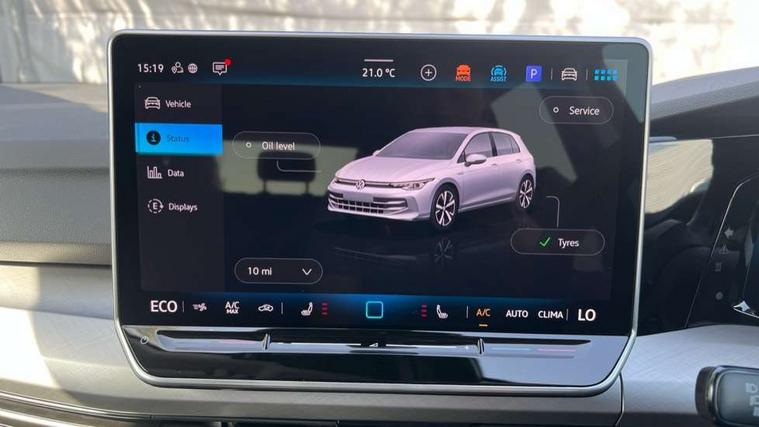 Activated carbon canister, Adaptive cruise control (ACC), Advanced driver attention and drowsiness monitor, Dynamic road sign display, E-Sim card for online connectivity, eCall emergency call system, Multi-color Digital cockpit pro, selection of different info profile possible, Multifunction front facing camera for distance control, Navigation system, Oncoming vehicle braking when turning including swerve support, Speed limiter, Speedo, rev counter, electronic odometer, trip, service interval display, exterior temperature and fuel gauge, Traffic jam assist, Voice enhancer and voice control, Warning signal and warning light for front and rear seatbelts not fastened, We connect plus preparation, We connect preparation, Wireless app connect, Charging cable Mode 2 Type 2 (10A), Charging cable mode 3, type 2 32 A, Electric motor (hybrid electric vehicle) total system output 200kw, unit OEK A, Hybrid propulsion system, Petrol Particulate Filter, Start-stop system with battery regeneration (recuperation - energy recovery during braking), XDS electronic differential lock for improved traction and handling, 2 USB C ports in front, 2 USB charging sockets on the centre console in the rear charging capacity upto 45W, 6 Speakers - 4 in front and 2 in rear with central speaker, Digital radio reception (DAB), Diversity antenna for FM reception, Gaming platform via car app, Infotainment system with 12.9" display, Mobile phone interface with inductive charging feature, 3rd brake light, Automatic headlamp activation with Coming home and Leaving home feature, Body colour door handles, Body colour door mirrors, Exterior mirrors convex on the left and aspherical on the right, Front and rear electric windows, Heat insulating windshield made of laminated glass, LED separate daytime running light, Rear exhaust tailpipe, Rear fog light on one side and reversing lights on both sides, Rear side wing doors, Rear tinted glass 65% light absorbing from B pillar backwards, Rear windscreen washer and wiper with interval delay, Remote electrically foldable door mirrors, puddle lights and reverse activated passenger's door mirror, Standard bumpers, Welcome light with surround lighting, 12V socket in front centre console, 12V socket in luggage compartment, 3 rear head restraints, 3 seat bench in 2nd row, Air care climatronic 3 Zone automatic climate control with rear air conditioning control panel, Chrome plated radiator grille inserts, air vent surrounds and light switch surrounds, Front + rear black carpet mats, Front centre armrest, Front head restraints, Front seat lumbar support adjuster, ISOFIX anchors for child seats on outer rear bench seats and on front passanger seat compatible for i-Size, Luggage compartment lighting, Manual height adjustable front passenger seat, Manually height adjustable driver seat, Plastic gear knob, Rear cupholder and loadthough, Single front passenger seat, Soul black instrument panel, Split folding backrest with centre armrest and unsplit rear seat bench, Standard pedal cluster, Storm grey roof lining, Sun visors with illuminated vanity mirrors, Technology park and comfort pro package - Golf Hatchback, 3 point height adj front seatbelts + pretensioners, 3 rear three point seatbelts, ABS, Autonomous emergency braking front assist with pedestrian and cyclist monitoring, Child locks on rear doors, Driver and front passenger airbag with front passenger airbag deactivation, Electronic parking brake with auto hold, ESC (Electronic Stability Control), Extended pedestrian protection measures, Hill start assist, Rear disc brakes, Two tone horn, Tyre pressure loss indicator, Volkswagen roadside assistance, Anti theft wheel bolts, Preparation for alcohol interlock, Nature cross brushed decorative inserts for dashboard and front door panels, Tool kit for tyre mobility set, Tyre mobility kit Includes 12V compressor and tyre sealant,