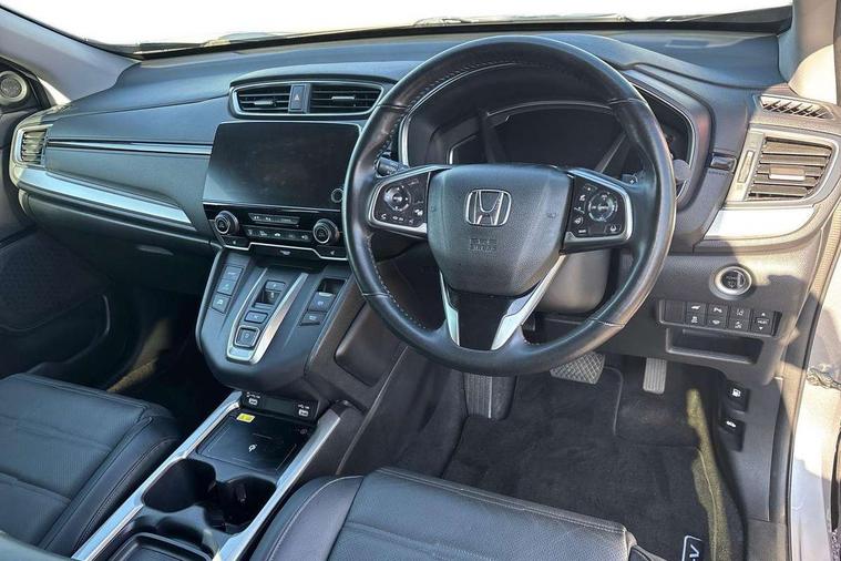 Adaptive cruise control, Agile handling assist, BLIS (Blind Spot Information System) with dual power heated blind spot mirrors, Bluetooth hands free telephone connection, E-call, Economy mode, Electric power steering, Emergency stop signalling system, Forward collision warning, Front parking sensors, Hands free tailgate, Head up Display, Honda CONNECT with GARMIN Navigation + 7" touchscreen, DAB radio, Apple CarPlay, Android Auto, Aha app integration and internet browsing, Intelligent multi info display, Lane departure warning system, Lane keep assist system, Low speed following, Rear parking sensors, Rear view camera, Road departure mitigation, Speed limiter, Traffic sign recognition, Wireless charging, Drive mode (Econ, Sport, EV), Vehicle stability assist, 2 USB sockets in rear, 2x USB sockets in front, 9 speakers, DAB Digital radio, Dashboard centre speaker, Front tweeters, Steering wheel mounted controls, Subwoofer, Aspheric door mirrors, Auto dimming rear view mirror, Auto wipers, Automatic headlights with dusk sensor, Body colour bumpers, Body colour door handles, Body colour door mirrors, Chrome grille, Cornering light, Door mirrors tilt when reversing, Electric front windows/one touch facility, Electric rear windows + one touch facility, Electrically adjustable and heated door mirrors, Electrically retractable door mirrors, Front LED Indicator lights, Front windscreen de-icer, High beam assist, LED daytime running lights, LED front fog lights, LED Headlights, LED rear lights, Panoramic opening glass sunroof, Rain sensor, Rear privacy glass, Rear side wing doors, Rear wiper, Roof rails, Shark fin roof aerial, Tailgate spoiler, Third brake light, Welcome home function, 3 seat bench in 2nd row, 60/40 split folding rear seat, 8 way electrically adjustable drivers seat + mirror memory, Accessory sockets, Ambient interior lighting, Ambient light in roof, AWD emblem rear, Cargo hooks, Courtesy lights, Driver's electric adjustable lumbar support, Driver/passenger front seatback pockets, Driver/passenger sunvisors with illuminated vanity mirrors, Dual zone automatic climate control, Electric lumbar adjustment on passenger's seat, Footwell ambient lighting, Front centre armrest, Front map lights, Front passenger seat height adjust, Heated front seats, Heated rear seats, Heated steering wheel, Hybrid emblem, Illuminated glovebox, Instrument panel with garnish wood film, Isofix child seat preparation, Leather steering wheel, Leather upholstery, Paddle shift controls, Rear air vents, Rear centre armrest, Rear headrests, Rear reading lights, Silver interior door handles, Silver interior panels, Single front passenger seat, Sunglasses holder with mirror, Tilt/telescopic adjustable steering wheel, Tonneau cover, Trunk light, 5 x 3 point seatbelts, ABS/EBD, Anti-whiplash front headrests, Brake assist function, Collision mitigation braking system, Deflation detection system, Driver airbag, Electronic parking brake with auto hold, Front and rear curtain airbags, Front and rear seat belts with emergency locking retractor (ELR), Front centre airbag, Front passenger airbag, Front side airbags, Hill start assist, Manual child lock in rear doors, Passenger airbag deactivate switch, Honda super locks, Immobiliser, Security alarm, Selectable door unlock, Smart entry + Smart start, Ultrasonic security sensor, Tyre repair kit,