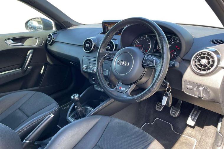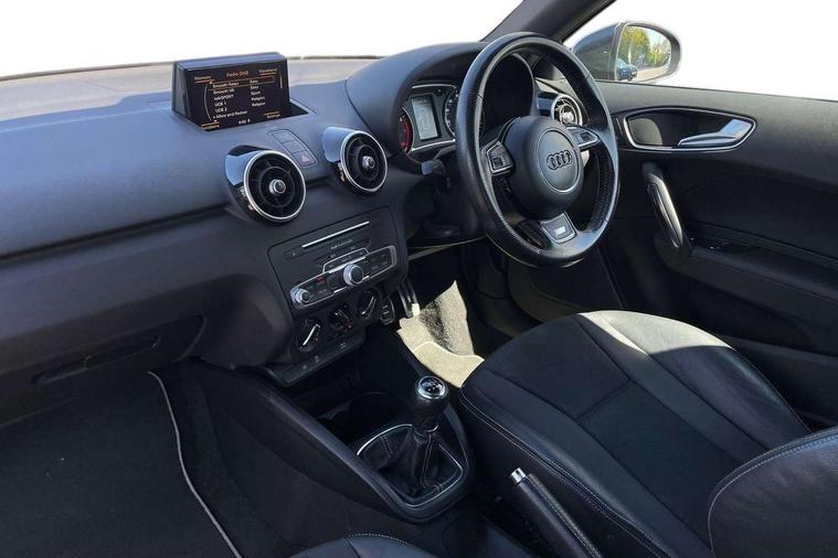 Audi drive select, Electro-mechanical PAS, Low washer fluid indicator, Service interval indicator, Voice control system, Additional SD card reader, Audi music interface, Bluetooth audio streaming, DAB Digital radio, Adaptive brake lights, Electric adjustable door mirrors, Electric front windows, Front fog lights, Heat insulating glass, Heated door mirrors, Heated rear windscreen, Rear diffuser, Rear wiper, S Line body styling, Xenon plus headlights including automatic headlights, LED daytime running lights, LED rear lights, dynamic range control and headlight washers, 12V Accessory socket in centre console, Adjustable rear head restraints, Black cloth headlining, Cupholders in centre console, Door sills trims with aluminium inlays, Front floor mats, Front head restraints, Front seats - 'Easy Entry', Height adjustable front seats, Illuminated glovebox, Isofix attachments on rear seats, Jack and tool kit, Leather handbrake, Lumbar adjustment for front seats, Rake/reach adjustable steering wheel, Split folding rear seats, ABS/EBD, Brake assist function, Driver and passenger side airbags, Driver/Front Passenger airbags, EDL, ESP with ASR, First aid kit, Front and rear seatbelt reminder, Front passenger airbag deactivation, Head airbags, Height adjustable front seatbelts, Rear three point seatbelts x 2, Tyre pressure monitor, Warning triangle, Locking wheel bolts, Remote control central locking, Thatcham category 1 alarm + immobiliser, Tyre repair kit,