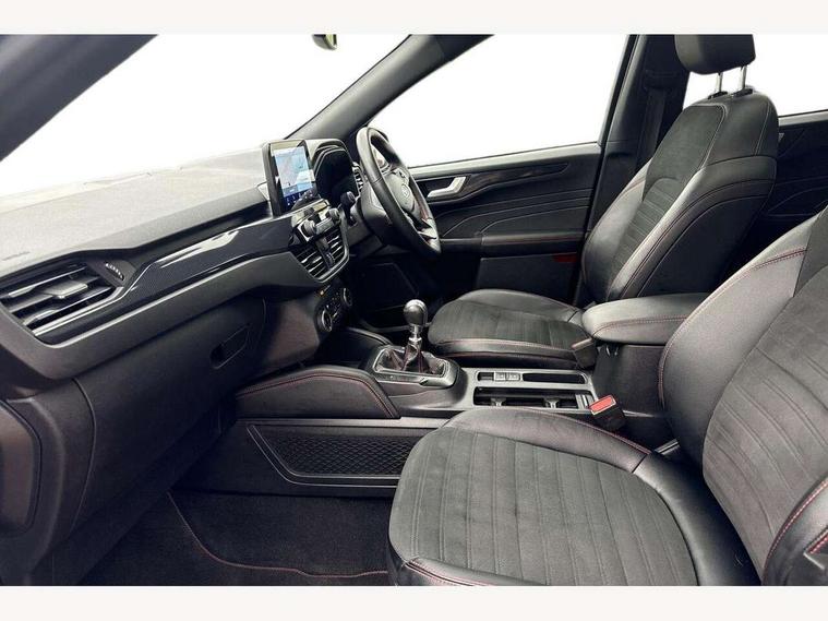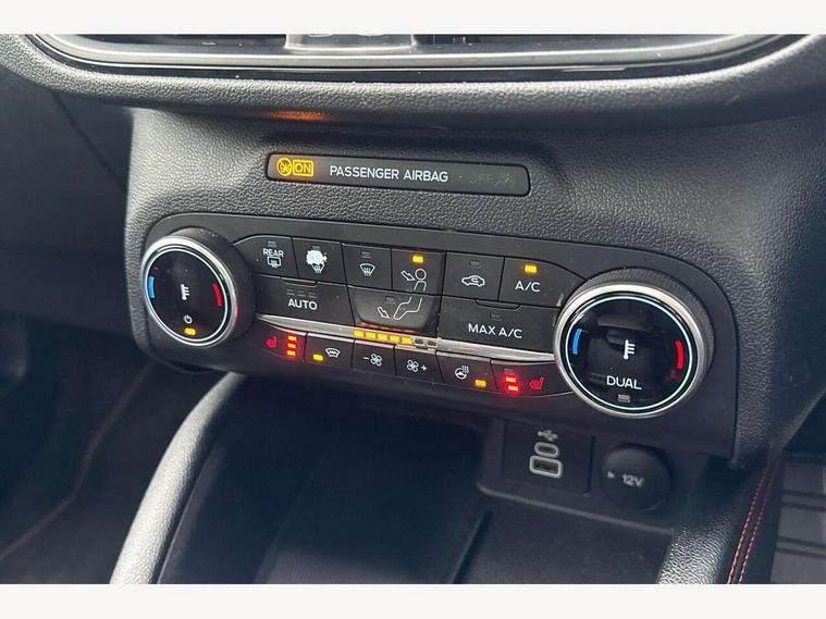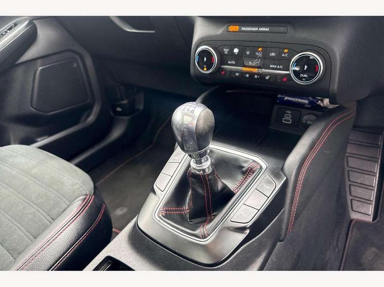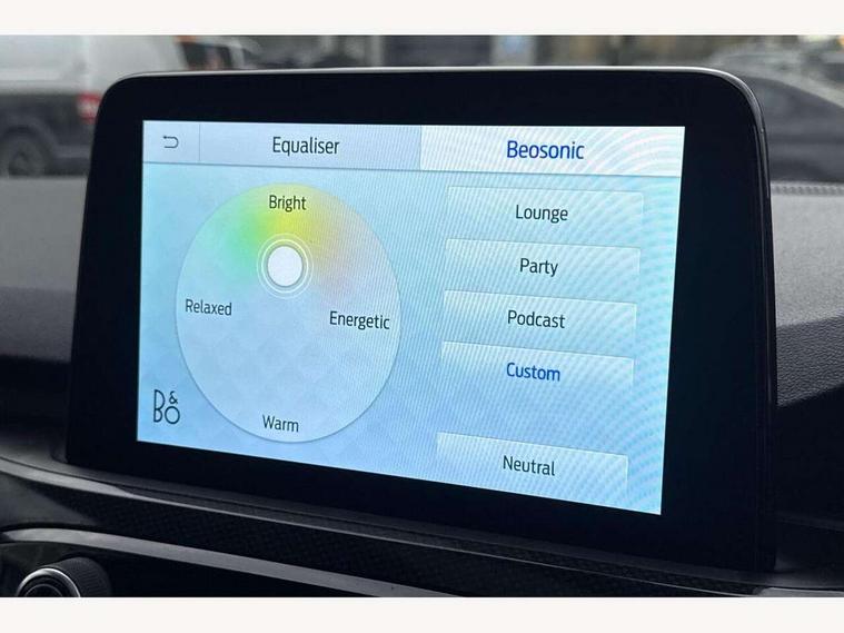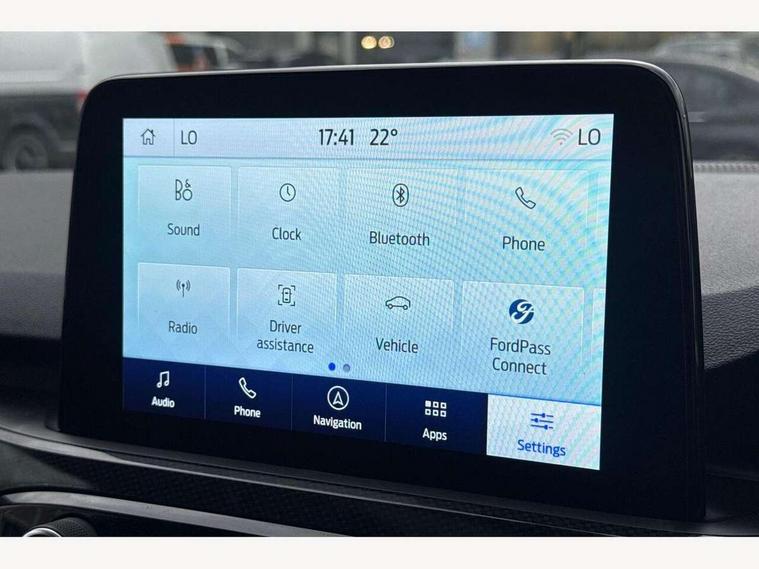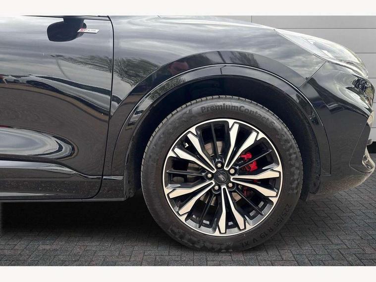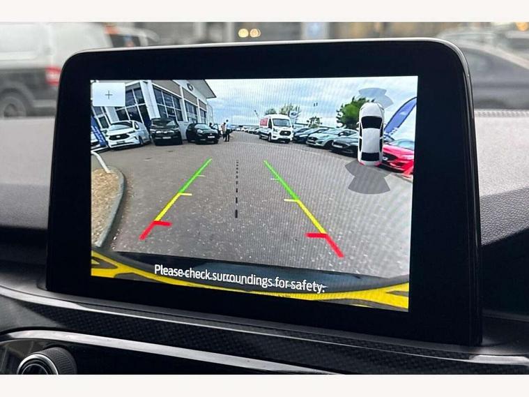 12.3" digital colour instrument cluster, Ford easy fuel, Ford SYNC 3 with 8" TFT LCD touchscreen, App Link, andriod auto/apple carPlay, emergency assistance and navigation with Ford pass connect, Front and rear parking sensors, Hands free power tailgate, Lane keeping aid with lane departure warning, Power assist steering, Rear view camera, Selectable drive modes, Service interval indicator, Sports suspension, Twist beam rear suspension, B&O premium audio system with 10 speakers and subwoofer, 2 USB ports, DAB radio/CD, Auto headlamps with high and low beam, Black roof rails, Day/night rear view mirror, Front LED fog lamps, Large rear spoiler, LED daytime running lights, LED rear lights, Power folding heated door mirrors with puddle lights, Power front/rear windows with global close, Power opening panoramic roof, Privacy glass, Quickclear heated windscreen, Rear side wing doors, Rear wiper, ST Line body styling kit with unique front and rear fascia and bumper, rear painted diffuser, front painted skid plates, dark mesh upper grille, ST Line front scuff plates, Third brake light, Twin exhausts, 10 way power adjustable drivers seat, 2nd row sliding seats with 60:40 split, 8 way manual passenger seat including lumbar support and height adjust, Alloy pedals, Centre console with electronic parking brake, Dark headlining and pillars, Electronic automatic temperature control (EATC), Flat bottomed leather steering wheel in sensico with red stitching, Front and rear head restraints, Heated passenger and driver seats, Heated rear seats, Heated steering wheel, Partial premium touch sensico leather upholstery with black cloth inserts and red stitching, Single front passenger seat, Sports seats, ST Line front and rear floor mats, ST Line gear knob, 3x3 point rear seatbelts, Airbags - front driver/passenger, front and rear curtain, Drivers knee airbag, Electronic stability control (ESC) and ABS, Ford MyKey Gen 2 safety system, Manual child proof rear door locks, Post collision braking, Pre collision assist with autonomous emergency braking, Rear seat Occupancy alert, Red brake calipers, Tyre pressure monitoring system, Engine immobiliser, Keyless entry and Ford power start button (Keyless start), Locking wheel nuts, Remote powered central double locking doors, Thatcham category 1 alarm,