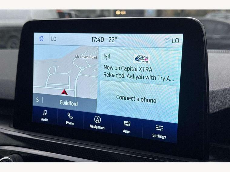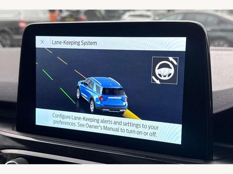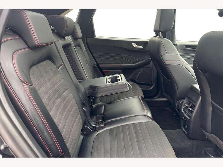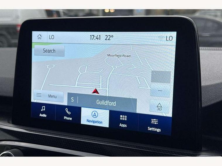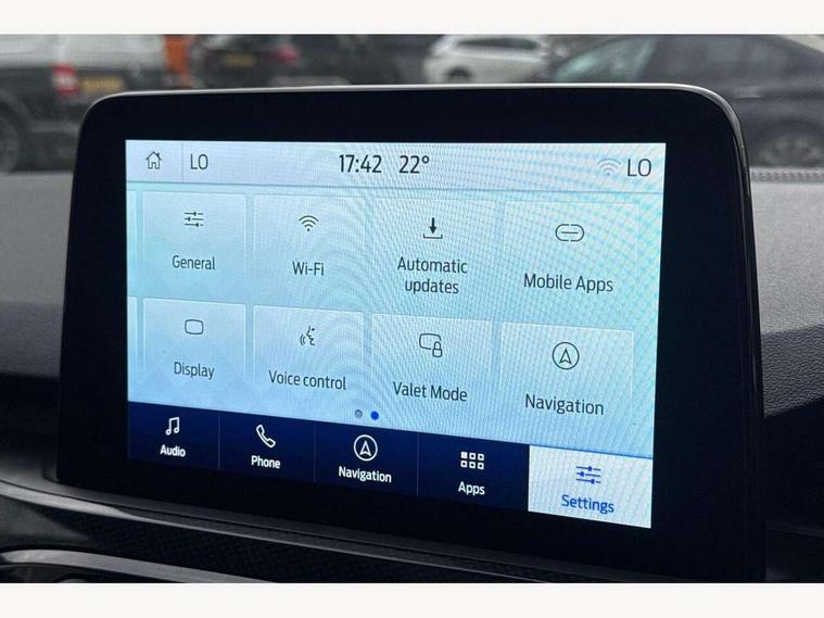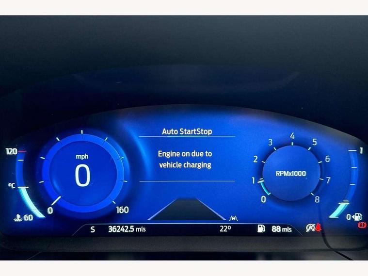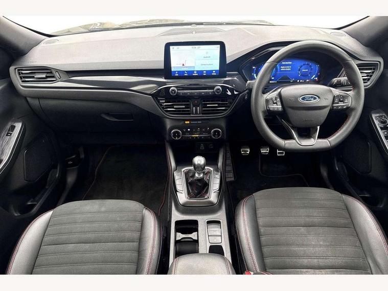 12.3" digital colour instrument cluster, Ford easy fuel, Ford SYNC 3 with 8" TFT LCD touchscreen, App Link, andriod auto/apple carPlay, emergency assistance and navigation with Ford pass connect, Front and rear parking sensors, Hands free power tailgate, Lane keeping aid with lane departure warning, Power assist steering, Rear view camera, Selectable drive modes, Service interval indicator, Sports suspension, Twist beam rear suspension, B&O premium audio system with 10 speakers and subwoofer, 2 USB ports, DAB radio/CD, Auto headlamps with high and low beam, Black roof rails, Day/night rear view mirror, Front LED fog lamps, Large rear spoiler, LED daytime running lights, LED rear lights, Power folding heated door mirrors with puddle lights, Power front/rear windows with global close, Power opening panoramic roof, Privacy glass, Quickclear heated windscreen, Rear side wing doors, Rear wiper, ST Line body styling kit with unique front and rear fascia and bumper, rear painted diffuser, front painted skid plates, dark mesh upper grille, ST Line front scuff plates, Third brake light, Twin exhausts, 10 way power adjustable drivers seat, 2nd row sliding seats with 60:40 split, 8 way manual passenger seat including lumbar support and height adjust, Alloy pedals, Centre console with electronic parking brake, Dark headlining and pillars, Electronic automatic temperature control (EATC), Flat bottomed leather steering wheel in sensico with red stitching, Front and rear head restraints, Heated passenger and driver seats, Heated rear seats, Heated steering wheel, Partial premium touch sensico leather upholstery with black cloth inserts and red stitching, Single front passenger seat, Sports seats, ST Line front and rear floor mats, ST Line gear knob, 3x3 point rear seatbelts, Airbags - front driver/passenger, front and rear curtain, Drivers knee airbag, Electronic stability control (ESC) and ABS, Ford MyKey Gen 2 safety system, Manual child proof rear door locks, Post collision braking, Pre collision assist with autonomous emergency braking, Rear seat Occupancy alert, Red brake calipers, Tyre pressure monitoring system, Engine immobiliser, Keyless entry and Ford power start button (Keyless start), Locking wheel nuts, Remote powered central double locking doors, Thatcham category 1 alarm,