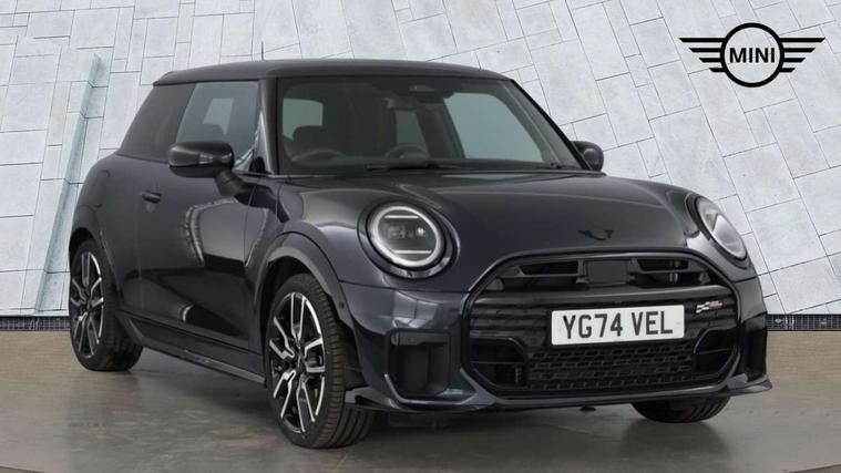 Central toggle bar, Circular OLED Screen, Compatible mobile phone bluetooth with audio streaming, Cruise control, Digital instrument cluster, Electro-mechanical speed dependant steering assistance, Emergency call service, MINI Experience Modes, Mini navigation system, On board computer, Service interval indicator, 7 speed steptronic sport transmission with double clutch, Adaptive suspension, DAB Digital radio, Personal eSim, Auto headlights, Electric adjustable heated door mirrors, Electric front windows, Front and rear apron, Heated rear window, Heated windscreen washer jets, High gloss black wheel arches, High gloss hexagonal patterned grille surround, JCW body kit, LED daytime running lights, LED Headlights, LED indicator lights, LED rear lights, Rain sensor window wipers, Rear fog lights, Rear roof spoiler with airblades, Rear window wiper, 2 seat bench in second row, 2 zone automatic air conditioning, 60/40 rear seat bench, Ambient lighting, Black lower band in high gloss, Cupholders, Dark headliner, Floor mats, Front and rear head restraints, Front compact armrest, Heated steering wheel, Height adjustable passenger seat, Lidded storage box in Black/Red knit, Luggage compartment lighting, Partially perforated vescin steering wheel with red accent, black/red decorative strap, Single front passenger seat, Steering wheel paddle shift, Sunvisors with vanity mirrors, Vescin/Cord upholstery, Driving assistant pack - Cooper Hatchback, Park assistant pack - Cooper Hatchback, 3 point seatbelts on all four seats, 6 Airbags - front, side, head and seat belt tensioners, Acoustic pedestrian protection, Anti-lock braking system (ABS), Brake caliper in Black with JCW badge, DSC - Dynamic Stability Control, Electronic parking brake, Front and rear disc brakes, Front ISOFIX (iSize), Front passenger airbag deactivation, JCW Sport Brakes, Traction control, Tyre pressure monitoring system, Alarm, Immobiliser, Remote central locking, Black/Red decorative dash strap, JCW Black/Red dashboard knit, Tyre repair kit,