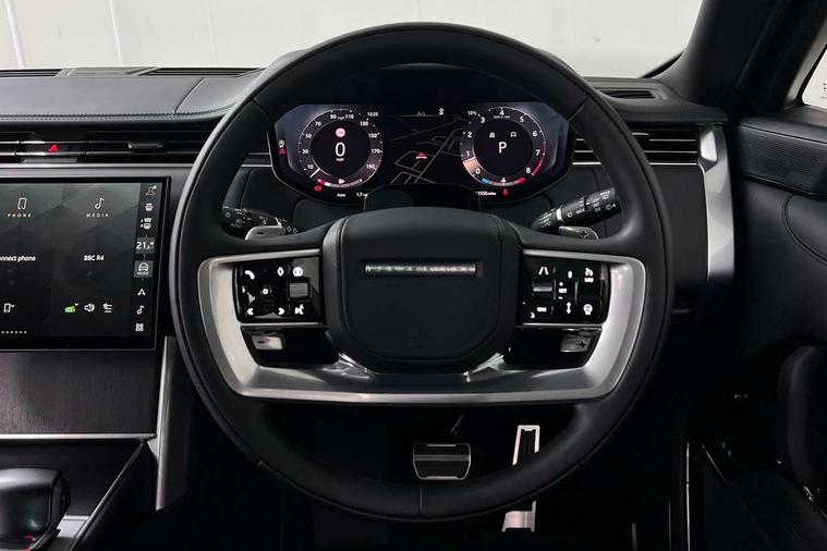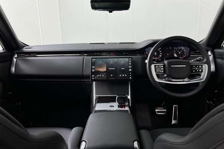 13.1" Touchscreen, 3D surround camera inc frwd traffic detection, vehicle clearance guidance, 3D view, clearsight ground view, manoevure light, 360 parking aid, wade sensing, All Terrain Info Centre, All wheel steering, Android Auto, Apple car play, Blind spot assist, Bluetooth connectivity streaming, Configurable programs, Driver condition response, Eco mode, Electric power assisted steering (EPAS), Emergency call service, Front and rear parking aid, Head up Display, Interactive driver display, Lane keep assist, Park assist, Powered gesture tailgate/boot lid, Rear collision monitor, Rear traffic monitor, Remote, Traffic sign recognition with adaptive speed limiter, Wi-Fi Enabled with data plan, Wireless device charging with phone signal booster, 8 speed automatic transmission, Active damper technology system, Adaptive dynamics, Adaptive off-road cruise control, All Wheel Drive (AWD), Automatic access height, Electronic air suspension, Open differential with torque vectoring by braking, Terrain Response 2 Auto, Twin speed transfer box, Digital Audio Broadcast radio-DAB, Meridian 1600W signature sound system, Pivi pro including smart settings, Connected navigation pro, nuance speech, USB socket, Acoustic laminated windscreen, Animated directional indicators, Automatic headlights, Automatic levelling headlights, Centre high mounted stop light, ClearSight interior rear view mirror, Digital LED headlights with signature DRL and image projection, Electric windows with one touch open/close and anti trap, Engine cover, Flush deployable exterior door handles, Front and rear recovery eyes, Front fog lights, Headlamp power wash, Heated rear window, Heated washer jets, Illuminated metal treadplates with Autobiography script, Laminated front and rear side glass, LED tail lights, Power fold, auto-dimming, heated door mirrors with approach lights, Rain sensing windscreen wipers, Rear boot, Rear fog lights, Rear side wing doors, Side repeater indicators in mirror, Solar attenuating windscreen, Trailer stability assist, Winter wiper park position, 12V power sockets, 2 seat bench in 3rd row, 24-way heated and cooled, massage electric front seats with power recline heated and ventilated rear seats and heated third row seats, 3 seat bench in 2nd row, Air quality sensor, Bright metal pedals, Cabin air purification pro, Cabin lighting, Centre console with armrest, Customer configurable single point entry, Driver and passenger front seat armrests, Easy boot loading, Ebony Carpet, Electric rear side window sunblinds, Four zone climate control, Front and rear cupholders, Front and rear grab handles, Front head restraints, Gearshift paddles, Heated steering wheel, Hook in load space, Loadspace cover, Loadspace light, Luggage tie down in loadspace, Multifunction steering wheel, Perforated Semi-Aniline leather upholstery, Rear centre armrest, Rear head restraints, Rear ISOFIX, Single front passenger seat, Soft close doors, SV bespoke carpet mats, SV bespoke full extended leather upgrade, Twin blade sunvisors with Illuminated vanity mirrors, Upper and lower glovebox, Versatile loadspace floor in tailgate, Online pack with data plan - Range Rover, 3x3 point rear seat belts, Anti-lock braking system (ABS), Black brake calipers, Brake hold function, Cornering brake control (CBC), Customer configurable autolock, DSC - Dynamic Stability Control, Electronic brake force distribution, Electronic parking brake, Electronic traction control, Emergency braking, Front airbags with passenger seat occupant detector, Front side airbags, Hill descent control, Hill launch assist, Illuminated seat belt buckles, Low traction launch, Occupant protection assist, Power operated child locks, Roll stability control, Tyre pressure monitoring system (TPMS), Immobiliser, Intrusion sensor and alarm, Keyless entry, Locking wheel nuts, Remote central locking, Noble chrome controls,