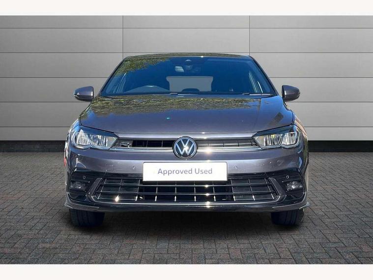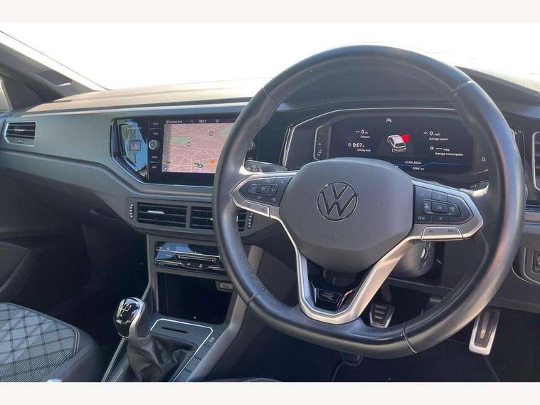 Adaptive cruise control without follow-to-stop and speed limiter, Bluetooth mobile phone interface, Digital Cockpit Pro with 10.25" Display, Driver alert system, Dynamic road sign display, Emergency call service, Power assisted speed sensitive steering, Preparation for We connect and We connect plus, Speedo and rev counter, electronic odometer, trip, service interval display and fuel gauge, Standard rear axle, Travel Assist - Lane keeping system and traffic jam assist, Travel assist including emergency assist, Trip computer, Warning signal and warning light for front and rear seatbelts not fastened, Washer fluid level indicator, Wireless app connect, Front wheel drive, Rear shock absorpion, Start-stop system with battery regeneration (recuperation - energy recovery during braking), DAB Digital radio, Diversity antenna for FM reception, Front and rear 6 speakers, Body colour bumpers, Body colour door handles, Body colour door mirrors, Electric front windows, Front scuff plates with R-Line logo, Heat insulating darkened glass in side and rear windows, Heat insulating glass windscreen, Power folding adjustable/heated exterior mirrors and front passenger exterior mirror lowering function, Rear electric windows, Rear fog light, Rear side wing doors, Rear tinted glass from B-pillar backwards approx 65% tinted, Rear windscreen washer and wiper with interval delay, Third brake light, 12V power socket in centre console, 2 USB-C ports in the front, 2 USB-C charging sockets on the center console in the rear, 3 rear head restraints, 60/40 split folding rear seat and rear seat bench not split, Air care climatronic air conditoning system with active combination filter and 2-zone temperature control, Black roof lining, Ceramique headliner, Chrome plated radiator grille inserts, air vent surrounds and light switch surrounds, Door and side trim panel, Driver and front passenger seat height adjustment, Driver/passenger sunvisors with illuminated vanity mirrors, Front + rear carpet mats, Front centre armrest, Front footwell illumination, Front seat backrest storage pockets, Front sports comfort seats, Handbrake lever handle in leather, Isofix child seat preparation easy-fit (for two outer rear seats, and front passenger seat) compatible with I-size, Karoso artvelours cloth upholstery, Leather trimmed gear knob, LED interior light with switch off delay and dimmer, 2 reading lights front and rear, Luggage compartment cover, Luggage compartment floor, Luggage compartment lighting, Lumbar adjustment for front seats, Multifunction steering wheel, Single front passenger seat, Stainless steel pedals, Standard pedal cluster, Light and sight pack - Polo R-Line/Black Edition, 3 point height adj front seatbelts + pretensioners, 3x3 point rear seatbelts, ABS, Driver and front passenger airbag with front passenger airbag deactivation, Drivers and front passengers safety optimised head restraints, ESC (Electronic stability control) + EDL (Electronic Differntial lock) and ASR (Traction control), Extended and predictive pedestrian/ cyclist protection, Front curtain and side airbags with center airbag, Hill hold control, Manual child lock in rear doors, Single tone horn, Tyre pressure loss indicator, Alarm with interior protection, Anti-theft alarm system with interior monitoring, backup horn, and towing protection, Anti-theft wheel bolts, Electronic engine immobiliser, Chrome applications on rotary light, mirror adjustment, window regulator switches, outlet with frame in black, Dark grey anodised matt decorative inserts in dash and front door panels, Low rolling resistance tyres,