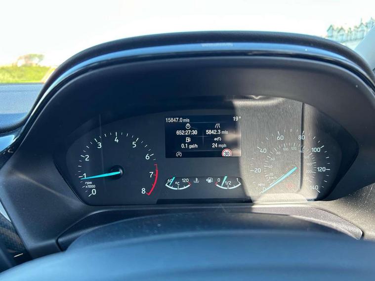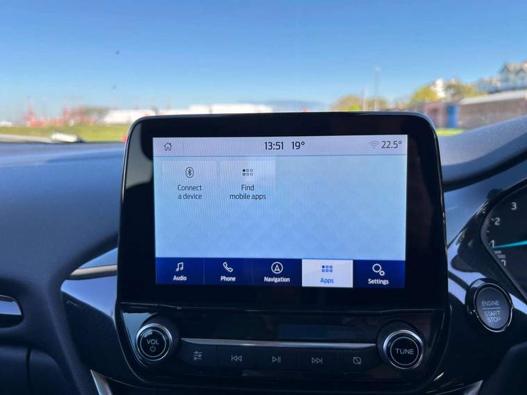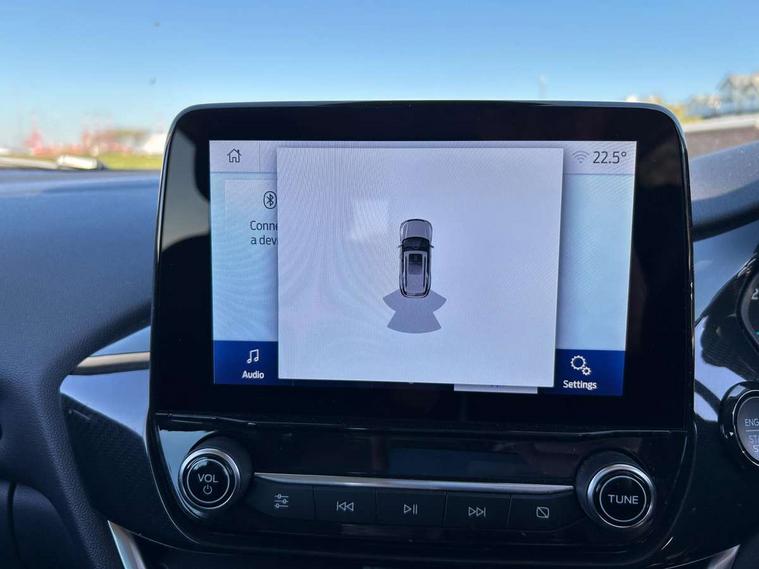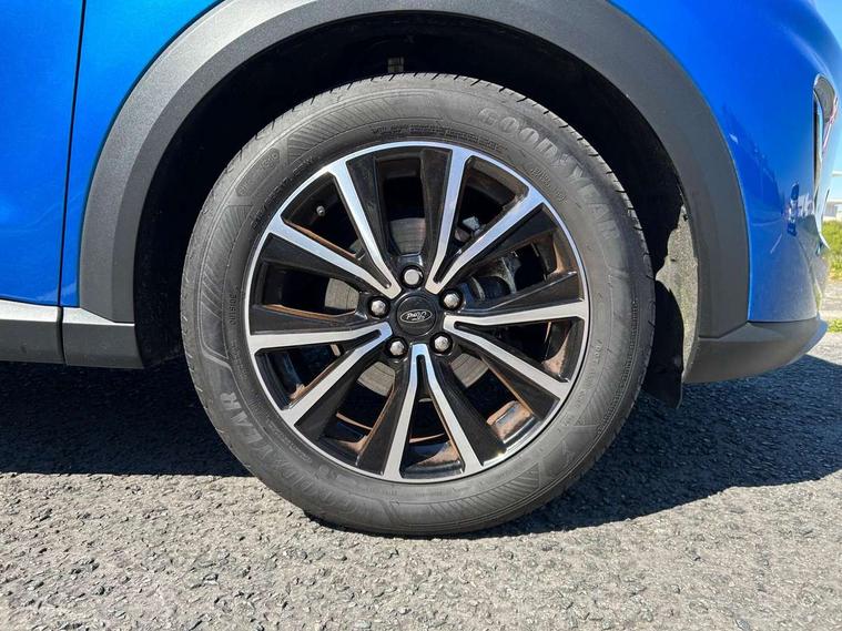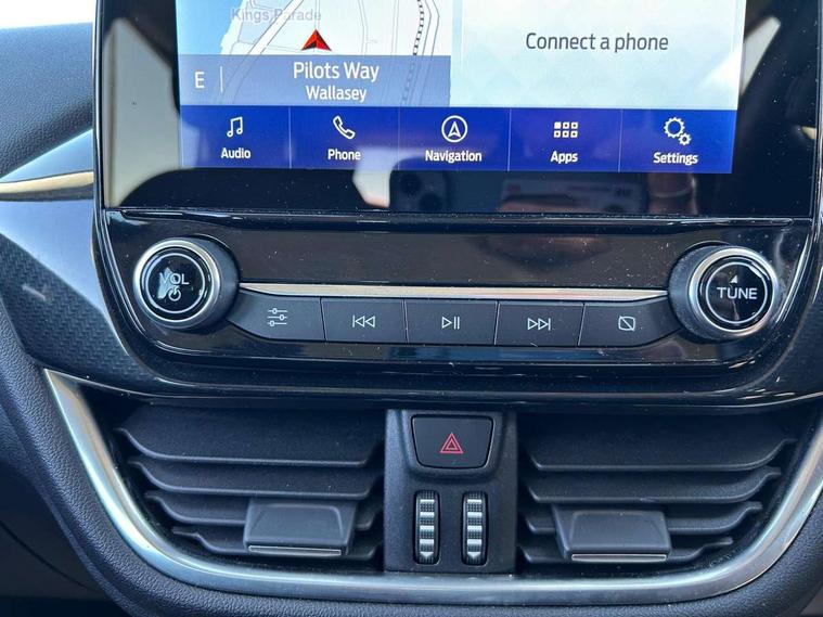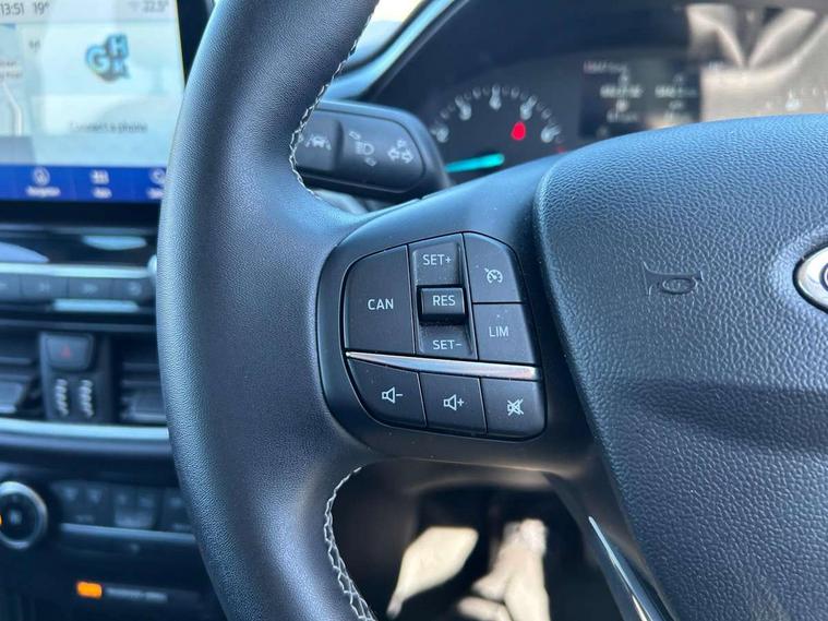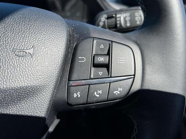 Driver impairment monitor, Emergency call service, Ford easy fuel, Lane keeping aid with lane departure warning, Power assist steering, Power start button, Rear parking sensor, Selectable drive modes(Normal, Eco, Sport, Slippery and Trail), Speed sign recognition, Standard suspension, Automatic headlights with auto high beam, Automatic rain sensing wipers, Body colour rear spoiler, LED rear lamps, Power foldable heated door mirrors with puddle lamps, Projector headlamps with LED day time running lights and front fog lamps, Quickclear heated windscreen, Rear side wing doors, Rear wiper, Third brake light, 3 seat bench in 2nd row, Centre console with armrest and stowage, Electronic automatic temperature control (EATC), Ford megabox extended bootspace, Front and rear head restraints, Front floor mats, Manual 2 way passenger seat adjustment, Manual 4 way driver seat adjust with lumbar adjustment, Sensico leather steering wheel/gear knob/handbrake, Single front passenger seat, Titanium cloth upholstery, Ford SYNC 3 navigation pack - Puma, 3 rear seatbelts, Child safety lock, Electronic stability control (ESC) and hill start assist, Pedestrian/cyclist detection & post-collision braking, Pre collision assist system, Tyre pressure monitoring system (TPMS), Thatcham alarm, 17" 10 spoke absolute black machined finish alloy wheel,