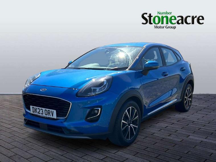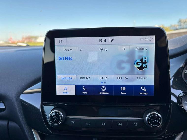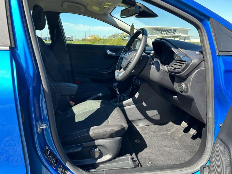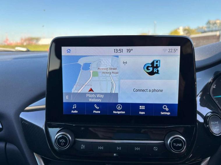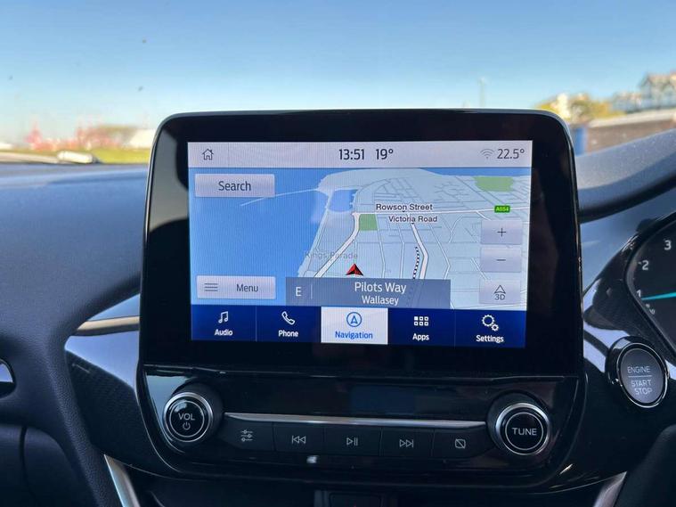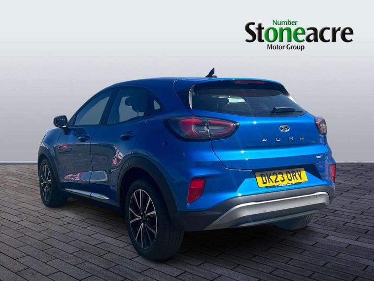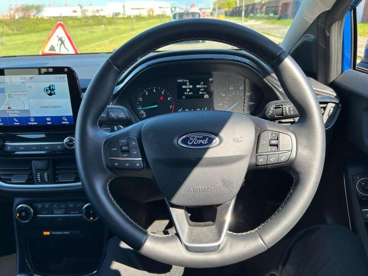 Driver impairment monitor, Emergency call service, Ford easy fuel, Lane keeping aid with lane departure warning, Power assist steering, Power start button, Rear parking sensor, Selectable drive modes(Normal, Eco, Sport, Slippery and Trail), Speed sign recognition, Standard suspension, Automatic headlights with auto high beam, Automatic rain sensing wipers, Body colour rear spoiler, LED rear lamps, Power foldable heated door mirrors with puddle lamps, Projector headlamps with LED day time running lights and front fog lamps, Quickclear heated windscreen, Rear side wing doors, Rear wiper, Third brake light, 3 seat bench in 2nd row, Centre console with armrest and stowage, Electronic automatic temperature control (EATC), Ford megabox extended bootspace, Front and rear head restraints, Front floor mats, Manual 2 way passenger seat adjustment, Manual 4 way driver seat adjust with lumbar adjustment, Sensico leather steering wheel/gear knob/handbrake, Single front passenger seat, Titanium cloth upholstery, Ford SYNC 3 navigation pack - Puma, 3 rear seatbelts, Child safety lock, Electronic stability control (ESC) and hill start assist, Pedestrian/cyclist detection & post-collision braking, Pre collision assist system, Tyre pressure monitoring system (TPMS), Thatcham alarm, 17" 10 spoke absolute black machined finish alloy wheel,