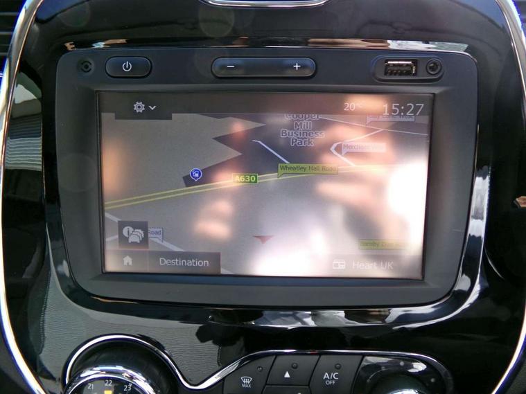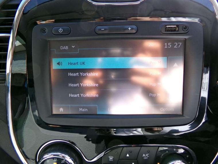 Bluetooth + USB, Cruise control + speed limiter, Renault MediaNav with 7" touch screen and Navteq Nav 'n' Go Satellite Navigation, Trip computer, Variable PAS, Voice control system, 4x20W Arkamys radio, Auxiliary input socket, DAB Digital radio, Fingertip controls for audio system, Automatic headlights + automatic windscreen wipers, Body colour door handles, Body coloured bumpers, Chrome headlight surround, Chrome insert to side strips, Chrome trim on tailgate, Cornering front fog lights, Electric adjustable heated door mirrors, Electric front windows + one touch + anti-pinch, Electric rear windows, LED daytime running lights, Rear wiper, Variable intermittent front wash/wipe, 12V Accessory socket, 3 rear headrests, 60/40 split rear seats, Centre console storage tray, Climate control, Compartment in glovebox, Front cupholder, Front seat backrest storage nets, Gloss black door armrest, Height adjustable driver's seat, Height adjustable front headrests, Height/reach adjust steering wheel, ISOFIX on front passenger and rear outer seats, Leather steering wheel and gear knob, Pollen filter, Removable storage between driver and passenger, Reversible boot floor, Storage area on top of dashboard, Storage compartments in doors, Variable boot floor, 3 point seatbelts on all rear seats, ABS+EBA, Driver/Front Passenger airbags, ESC - Electronic Stability Control + traction control, Front passenger airbag deactivation, Front side airbags(head+thorax), Hill start assist, Rear door child safety locks, Seatbelt warning, Tyre pressure monitor, Deadlocking system, Keyless entry, RAID (Renault Anti-Intruder Device) with automatic door locking, Thatcham Cat 2 engine immobiliser,