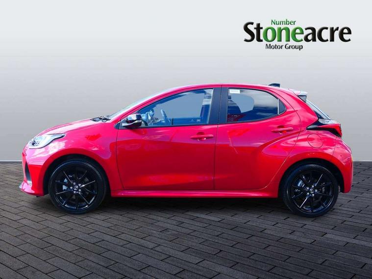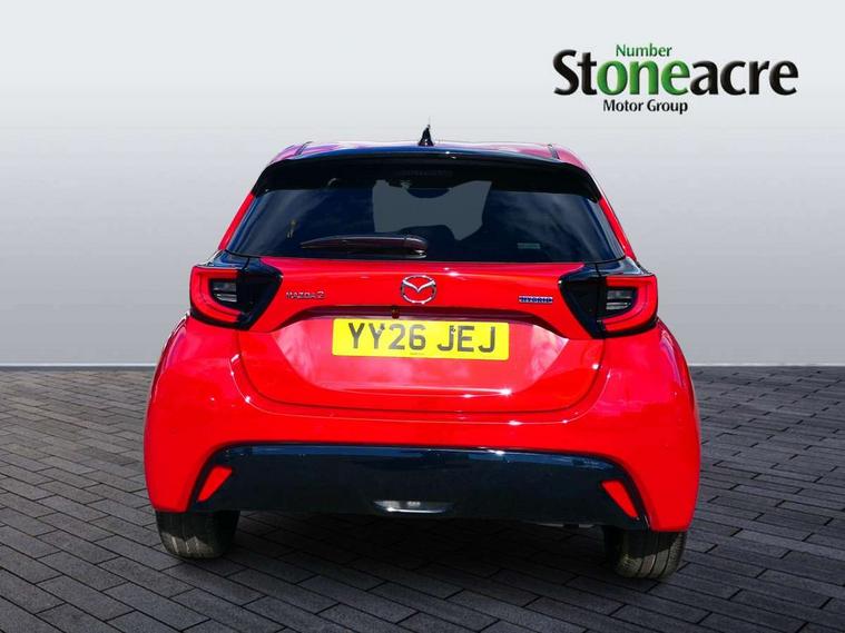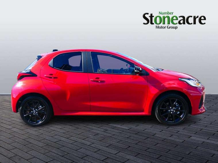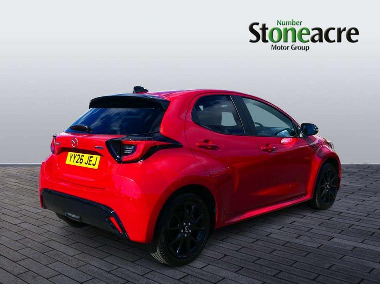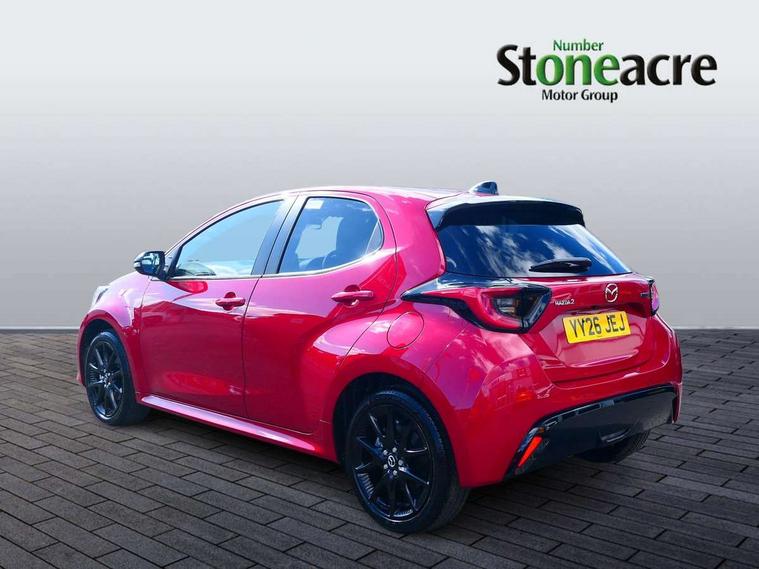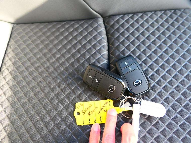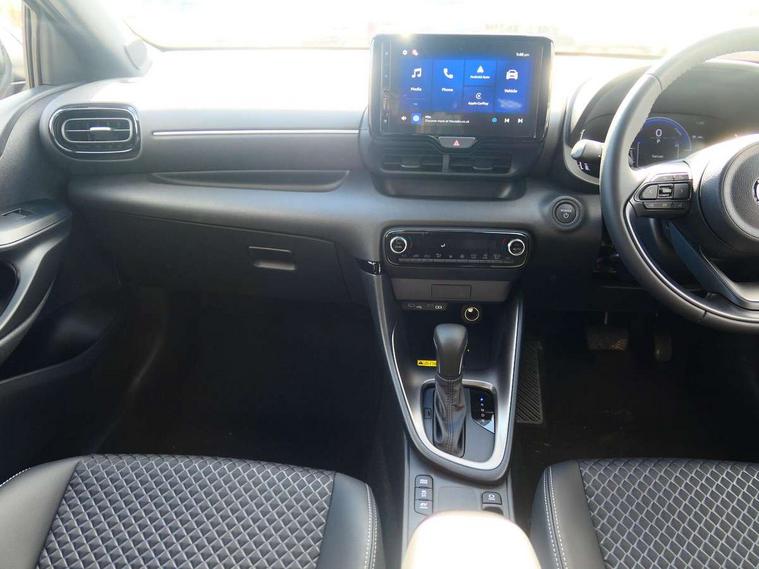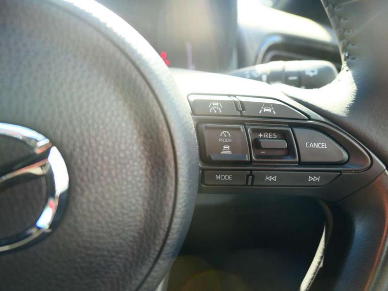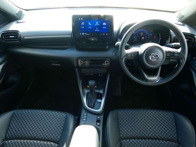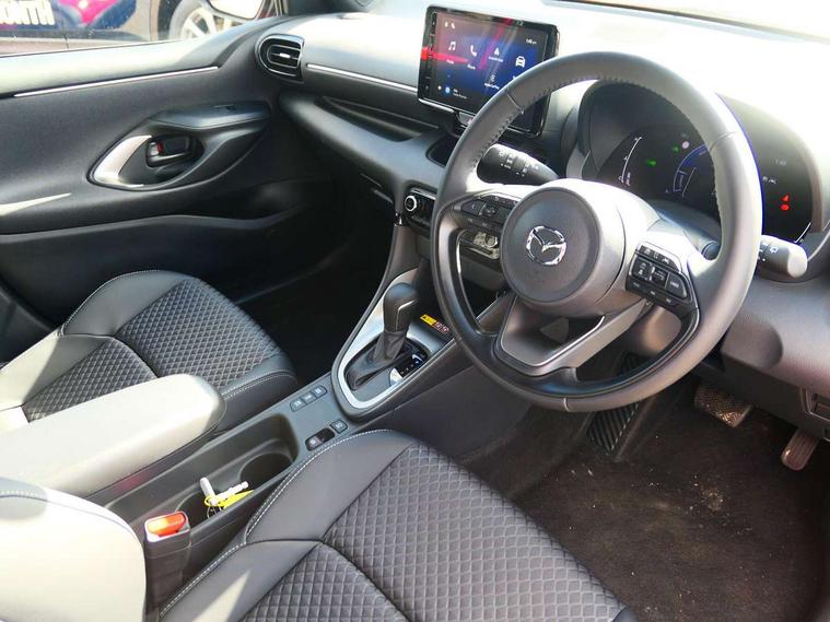 7" Digital instrument cluster with speedometer and hybrid system indicator, Adjustable speed limiter, Drive mode selector (Eco, Normal and Power), Driver attention alert system, Dynamic radar cruise control, E-call with GPS, EV drive mode, Front and rear parking sensors, Integrated bluetooth, Lane tracing assist includes Lane centering, Lane departure alert, Steering assist and Vehicle sway warning, Multi-information display, PAS, Push button start and stop, Qi wireless charging, Rear cross traffic alert with auto braking, Reversing camera, Road sign assist - RSA, Service indicator, Tailgate, Trip computer, Wireless Apple CarPlay and wired Android Auto, i-stop, 6 speaker audio system and 9" colour screen centre display, DAB Digital radio, Steering wheel mounted audio/bluetooth controls, USB type C port, Auto dimming rear view mirror, Auto folding door mirrors, Automatic high beam - AHB, Body coloured front bumper, Body coloured rear bumper with gloss black lower mouldings, Coming home function, Dusk sensing headlights, Front and rear electric windows, Gloss black electric adjustable/heated door mirrors, Gloss black front grille, Gloss black rear roof spoiler, Hybrid badge, LED front fog lights, LED headlights with manual headlight levelling and LED daytime running lights, LED rear combination light with LED turn signals, LED third brake light, Mazda unique tailgate garnish, Piano black lower window garnish, Privacy glass in rear side and rear windows, Rain sensing front wipers with adjustable sensitivity and speed, Rear side wing doors, Rear wash wiper, Shark fin antenna, Welcome lighting, 12V power outlet, 3 seat bench in 2nd row, 60/40 split fold down rear seats, Ambient lighting, Black roof lining in pillar and ceiling, Cloth/Synthetic leather upholstery, Driver, front passenger and two rear door storage, Driver, Front passenger and two rear grab handles with coathooks, Drivers seat manual slide recline and height adjustment, Drivers/front passengers with covered vanity mirrors and light, Dual zone climate control, Front centre armrest with console storage, Front head restraints, Front passenger seat manual slide, recline and height adjust, Front sport seats, Glovebox, Interior courtesy light with LED illumination, ISOFIX child seat anchorage points attached on outer rear seats, Leather handbrake, Leather wrapped gearshift, Leather wrapped steering wheel with telescopic and tilt adjustment, Luggage compartment light, Seatback pocket at rear of the front passenger seat, Single front passenger seat, Three height adjustable rear head restraints, 2x3 point front seatbelts with pre-tensioners, 3 point seatbelts on all rear seats, Airbags - driver and front passenger, Anti-lock braking system (ABS), Blind spot monitoring with rear cross parking support brake function, Collision mitigation braking system, Driver and passenger central airbags, Dynamic stability control + Traction control, Electronic parking brake with auto-hold and auto-disengage function, Emergency brake light signal (EBS), ESP, Front and rear curtain airbags, Front passenger airbag cut-off switch, Front side airbags, Hill start assist control (HAC), Manual child lock in rear doors, Pre-crash safety system - PCS, Rear parking support brake, Regenerative braking system, Seatbelt reminder audible warning, Tyre pressure monitoring system, Deadlocking system, Remote central locking, Smart keyless entry, Thatcham approved immobiliser and alarm, 17" Alloy wheels, Emergency tyre repair kit,