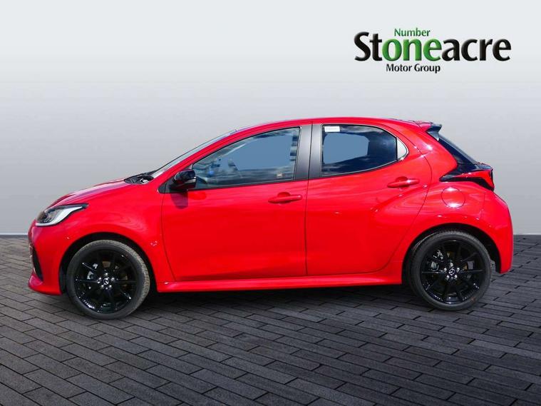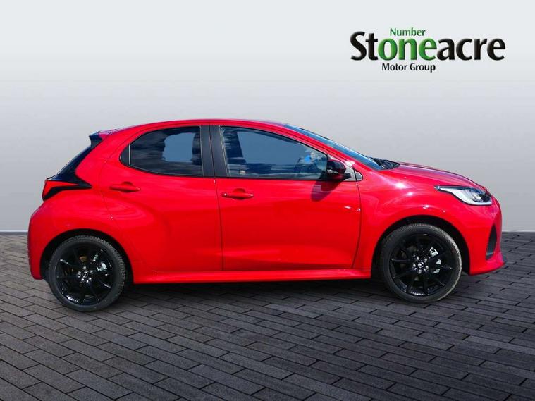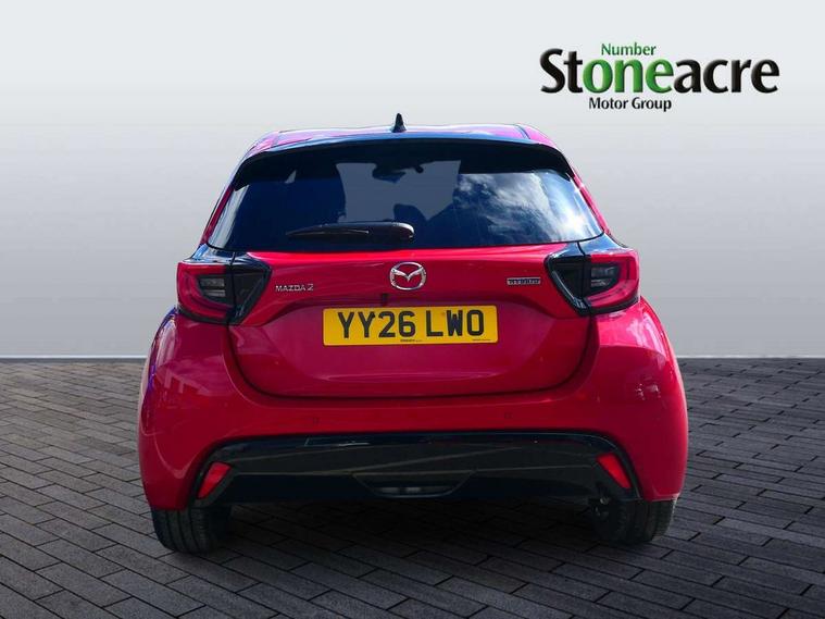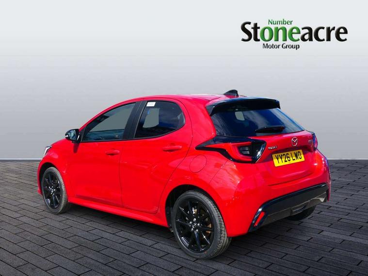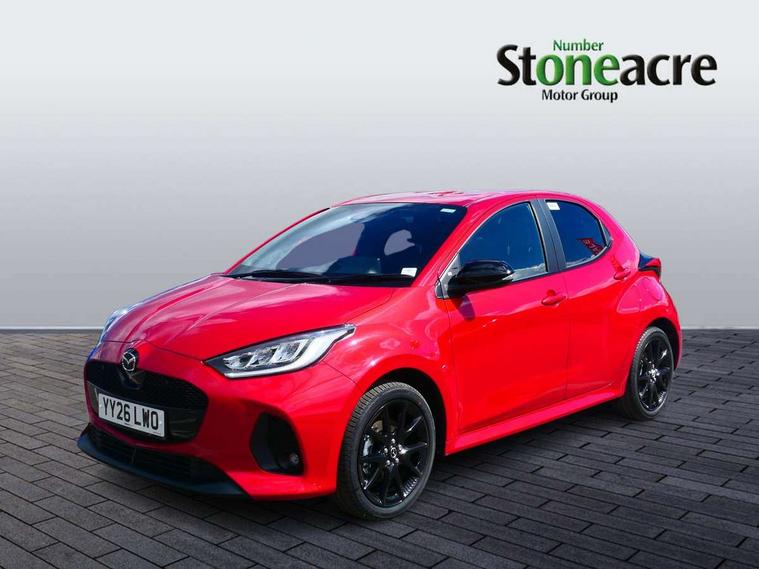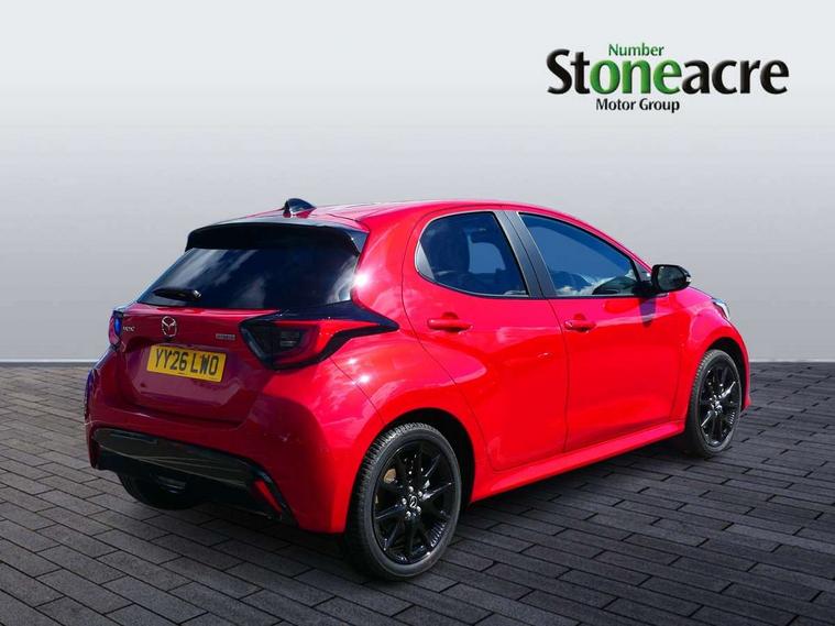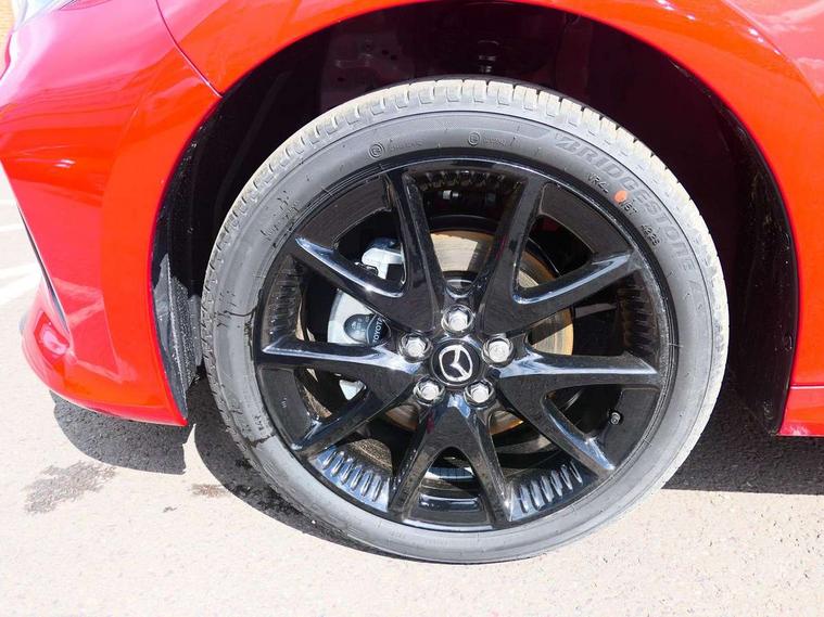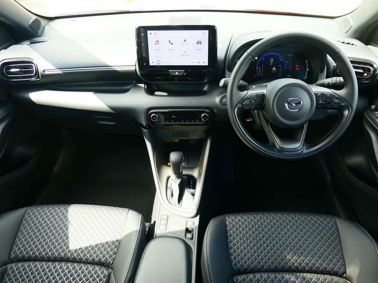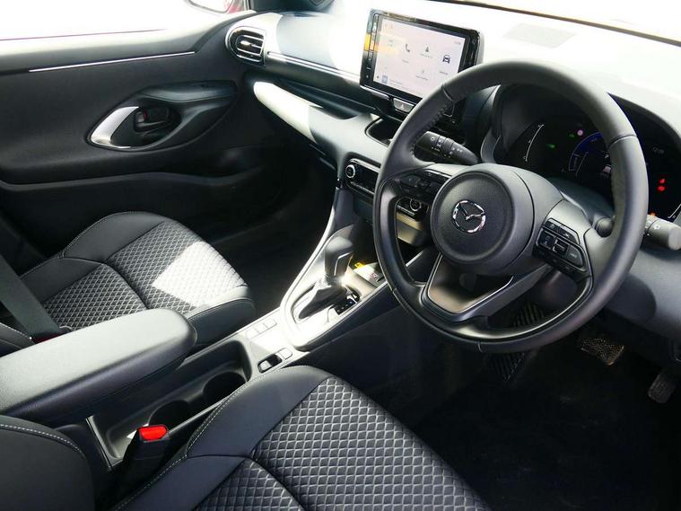 7" Digital instrument cluster with speedometer and hybrid system indicator, Adjustable speed limiter, Drive mode selector (Eco, Normal and Power), Driver attention alert system, Dynamic radar cruise control, E-call with GPS, EV drive mode, Front and rear parking sensors, Integrated bluetooth, Lane tracing assist includes Lane centering, Lane departure alert, Steering assist and Vehicle sway warning, Multi-information display, PAS, Push button start and stop, Qi wireless charging, Rear cross traffic alert with auto braking, Reversing camera, Road sign assist - RSA, Service indicator, Tailgate, Trip computer, Wireless Apple CarPlay and wired Android Auto, i-stop, 6 speaker audio system and 9" colour screen centre display, DAB Digital radio, Steering wheel mounted audio/bluetooth controls, USB type C port, Auto dimming rear view mirror, Auto folding door mirrors, Automatic high beam - AHB, Body coloured front bumper, Body coloured rear bumper with gloss black lower mouldings, Coming home function, Dusk sensing headlights, Front and rear electric windows, Gloss black electric adjustable/heated door mirrors, Gloss black front grille, Gloss black rear roof spoiler, Hybrid badge, LED front fog lights, LED headlights with manual headlight levelling and LED daytime running lights, LED rear combination light with LED turn signals, LED third brake light, Mazda unique tailgate garnish, Piano black lower window garnish, Privacy glass in rear side and rear windows, Rain sensing front wipers with adjustable sensitivity and speed, Rear side wing doors, Rear wash wiper, Shark fin antenna, Welcome lighting, 12V power outlet, 3 seat bench in 2nd row, 60/40 split fold down rear seats, Ambient lighting, Black roof lining in pillar and ceiling, Cloth/Synthetic leather upholstery, Driver, front passenger and two rear door storage, Driver, Front passenger and two rear grab handles with coathooks, Drivers seat manual slide recline and height adjustment, Drivers/front passengers with covered vanity mirrors and light, Dual zone climate control, Front centre armrest with console storage, Front head restraints, Front passenger seat manual slide, recline and height adjust, Front sport seats, Glovebox, Interior courtesy light with LED illumination, ISOFIX child seat anchorage points attached on outer rear seats, Leather handbrake, Leather wrapped gearshift, Leather wrapped steering wheel with telescopic and tilt adjustment, Luggage compartment light, Seatback pocket at rear of the front passenger seat, Single front passenger seat, Three height adjustable rear head restraints, 2x3 point front seatbelts with pre-tensioners, 3 point seatbelts on all rear seats, Airbags - driver and front passenger, Anti-lock braking system (ABS), Blind spot monitoring with rear cross parking support brake function, Collision mitigation braking system, Driver and passenger central airbags, Dynamic stability control + Traction control, Electronic parking brake with auto-hold and auto-disengage function, Emergency brake light signal (EBS), ESP, Front and rear curtain airbags, Front passenger airbag cut-off switch, Front side airbags, Hill start assist control (HAC), Manual child lock in rear doors, Pre-crash safety system - PCS, Rear parking support brake, Regenerative braking system, Seatbelt reminder audible warning, Tyre pressure monitoring system, Deadlocking system, Remote central locking, Smart keyless entry, Thatcham approved immobiliser and alarm, 17" Alloy wheels, Emergency tyre repair kit,