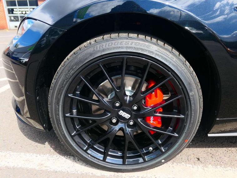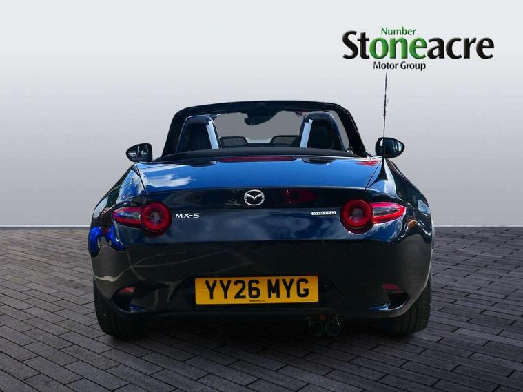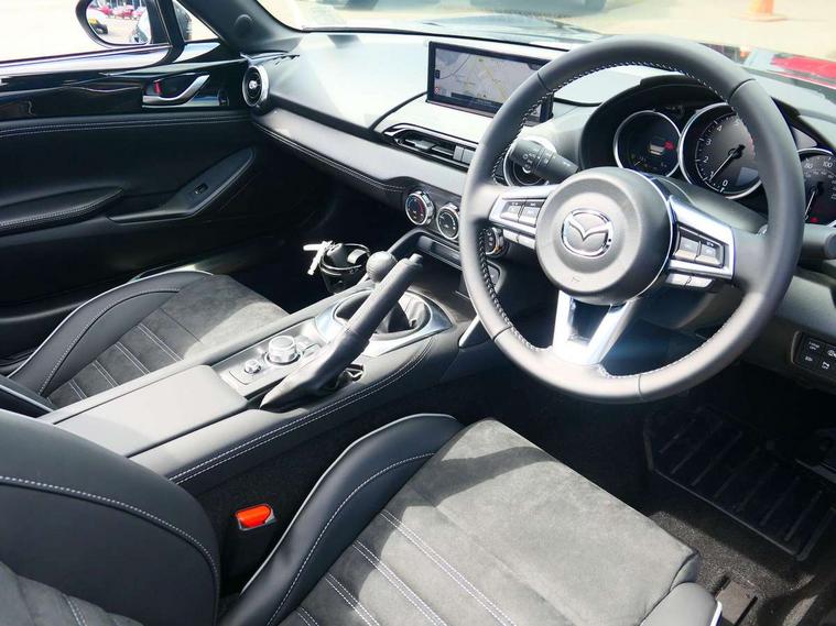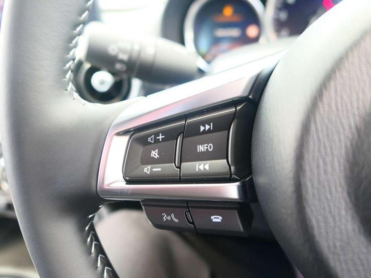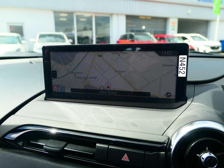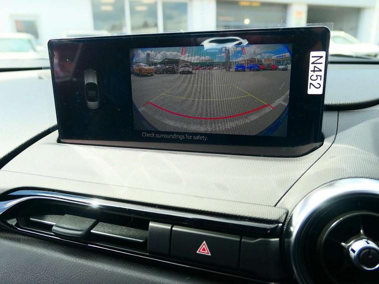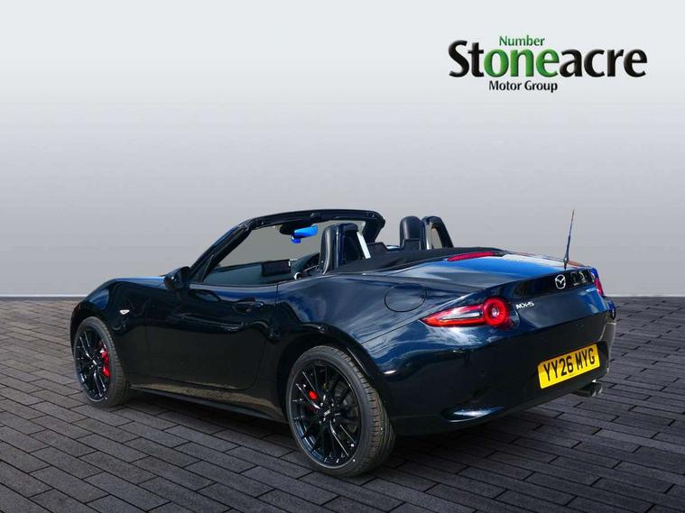 8.8" Colour centre touch screen display with Mazda Connect infotainment, Aha and stitcher app, Analogue speedometer, Apple car play/Android Auto, Blind spot monitoring with rear cross traffic alert, Cruise control with Intelligent speed assist, Driver alert system, eCall emergency call system, Emergency stop signalling system, Engine start/stop button, Hands free phone preparation, Integrated bluetooth with hands-free calling, bluetooth audio and easy access to phone contacts, Integrated navigation system, Kinematic posture control, Lane departure warning system, Lane keep assist, Multi dot display tachometer and electric odometer, PAS, Rear parking sensor, Reversing camera, Service indicator, Traffic sign recognition, Trip computer, Water temperature gauge, Asymmetric limited slip differential, I-ELOOP, i-stop, Sports suspension featuring Bilstein dampers, 2 x USB Type-C inputs, Multimedia Commander including separate volume dial, Premium Bose sound system with 9 speakers with 2 in each front headrest, AM/FM/DAB radio and MP3, Steering wheel mounted audio/bluetooth controls, Adaptive LED Headlights, Automatic headlamp levelling, Body colour bumpers, Body colour co ordinated interior upper door trim, Coming/leaving home lighting function, Dual exhaust pipes, Dusk sensitive headlamps, Electric front windows/one touch facility, Frameless auto dimming rear view mirror, Front intermittent wipers, LED 3rd brake light, LED daytime running lights, LED indicator lights, LED rear lights, Manually operated black premium cloth soft top with heated rear glass window, Piano black electric/heated door mirrors, Piano Black fashion bars, Rain sensing front wipers, Rear boot, Stainless steel scuff plates with MX-5 logo, 12V socket, Alcantara/leather upholstery, Centre console storage box, Chrome Air conditioning dials, Climate control air conditioning, Coin Box, Driver and front passenger sunvisors with covered vanity mirror and driver ticket holder, Driver seat manual slide, recline and tilt adjustment, Front centre armrest, Front head restraints, Gear shift indicator, Heated front seats, in 3 heat levels, Interior courtesy light, ISOFIX front passenger seat child seat compliance, Leather gear knob, Leather handbrake lever, Leather steering wheel, Lockable rear centre box with lid, Passenger seat + manual slide/recline adjust, Recaro sports seats, Single front passenger seat, Strut brace, Tilt/telescopic steering column, Two cupholders, Windblocker, 3 point ELR front seatbelts with pretensioners, ABS+Electronic Brake force Distribution, Deployable Hood System (DHS), Driver and passenger seatbelt reminder audible warning, Dynamic stability control with track mode, Exit warning, Front dual stage driver and single stage front passenger airbags, Front smart city brake support with autonomous emergency braking (SCBS), Hill hold assist, Passenger airbag deactivate switch, Red brembo brake callipers, Side airbags, Smart city brake support - Rear (SCBS-R), Traction control, Tyre pressure monitor, Remote central locking with deadlocking and remote boot release, Smart keyless entry, Superlocking, Thatcham category 1 alarm + immobiliser, Centre Console - Vinyl leather, Chrome air vent surrounds, Dashboard panel - Black Vinyl, Exterior body colour co-ordinated upper door panel trim with black vinyl, 17" BBS Gun Metallic alloy wheels, Tyre puncture repair kit,