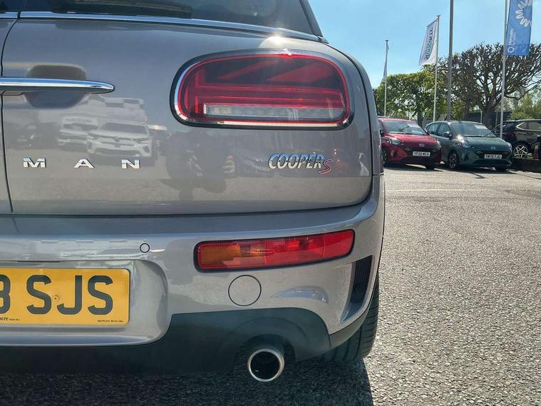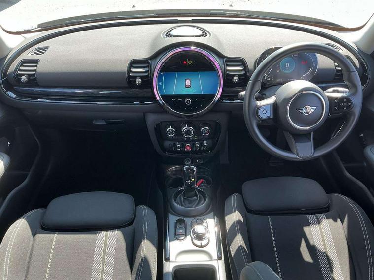 Active Guard incl speed limiting and lane departure functions with auto steering, and front collision warning with brake intervention, Automatic start/stop function with brake energy recuperation, Compatible mobile phone bluetooth with audio streaming, Digital cockpit, Electro-mechanical speed dependant steering assistance, Instrument cluster, Mini E-call, MINI TeleServices, On board computer, Double Vanos system, Fully variable valve control, High precision injection, Performance Control, Steptronic transmission with double clutch, FM tuner and DAB digital radio, Bonnet scoop, Chrome border honeycomb structure radiator grille with S badge, Chrome fuel filler cap, Dynamic brake lights, Electric windows, Heated rear window, Heated windscreen washer jets, LED headlights with closed ring as daytime driving lights, LED rear light with union jack design, Metal door sill strips with Cooper S imprint, Model logo, Model logo on rear doors, Rain sensor with auto headlights, Rear fog lights, Rear window wiper, Side scuttle panel with integrated indicator, Split rear doors, Sun/heat protection glass, Twin exhaust tailpipe, White indicator lenses, 12V Accessory socket in centre console, 3 spoke sport leather steering wheel + limiter function and audio controls, 360L luggage compartment capacity, 4 lashing eyes in luggage compartment, 60/40 split folding rear seat, Chrome interior highlights, Cupholders, English handbook, Front and rear head restraints, Glove compartment, Headliner with grab handles and clothes hooks, Height and length steering column adjustment, Interior lighting with 12 basic colours selectable via toggle switch in roof, Isofix rear child seat preparation, Leather gearshift lever and handbrake gaiters, LED reading lights, vanity mirror lights, front foot well light and spotlight on front seats, Manual air conditioning, Mechanical seat adjustment, driver seat height adjust, forward/back and front seats backrest, Multifunction steering wheel, Storage compartments in doors, Sunvisors with vanity mirrors, Toolkit, Excitement pack - Clubman, Navigation pack - Clubman, 2 tone horn, 3 point seatbelts on all seats, 6 Airbags - front, side, head and seat belt tensioners, Anti-lock braking system (ABS), DSC - Dynamic Stability Control, Electronic handbrake, Front and rear disc brakes, Tyre pressure monitoring system, Alarm system with tilt sensor, monitoring doors, bonnet interior and tailgate, Auto drive away locking, Deadlocking function, Electronic vehicle immobiliser, Locking wheel bolts, Start/stop toggle with keyless go, Tyre repair kit,