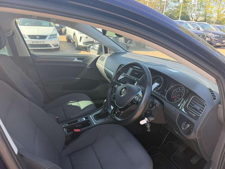'Lights On' Reminder warning buzzer, ACC - Adaptive cruise control with front assist, forward collision warning, distance monitoring, city emergency brake and speed limiter, Bluetooth telephone and audio connection for compatible devices, Brake pad wear indicator warning light, Driver alert system, Driver profile selection, Driving Mode Selection with four preset modes - Eco, normal, sport or individual modes, Instrument cluster in white, Multifunction computer with visual gear change recommendation for fuel consumption, Power assisted speed sensitive electro-mechanical steering, Push tank flap, Speed limit display, Speedo, rev counter, electronic odometer, trip, service interval display, exterior temperature and fuel gauge, Stop/start system, Warning buzzer and light for front seatbelts unfastened, Battery regeneration during braking, XDS electronic differential lock, Composition media system, DAB Digital radio receiver, Driver Personalisation profile selection, MP3/WMA compatability, Multi device interface (MDI) with USB connection, Personalisation 1.1 profile for media, Premium USB cable in choice of either Apple or Android smartphone compatibility, SD card slot, SMS Functionality, USB and SD card connectivity, Black front air intake and radiator grille with chrome insert, Black rear diffuser, Body colour bumpers, Body colour door handles, Body colour door mirrors with integrated indicators, Dusk sensor + automatic driving lights, Electric front windows, Electric rear windows, Electrically adjustable and heated door mirrors, Fully galvanised body, Heated rear windscreen, Hidden exhaust pipe, High level 3rd brake light incorporating LED Technology, LED daytime running lights, LED front fog lights with static cornering light function, Rear fog lamp, Rear tinted glass 65% light absorbing from B pillar backwards, Rear window aerial, Rear window wash/wipe with intermittent wipe, Reflectors in all doors, Tailgate with integrated rear roof spoiler, Windscreen wipers/ intermittent wipe + 4 position delay, 12V socket in luggage compartment, 3 rear headrests, 4 load lashing points in luggage compartment, 60/40 split folding rear seat backrest, Auto fold down lever in rear seat backrest, Bag hook in luggage compartment x 2, Cooled glovebox, Cupholder cover, Dust/pollen filter, Front and rear reading lights incorporating LED technology, Front centre armrest with storage compartment and two rear air vents, Front seat back storage pockets, Grab handles front x 2, rear x 2 with integrated coat hooks, Height and reach adjustable steering wheel, Illuminated vanity mirrors, Instrument lighting white adjustable panel illumination, Interior light delay, Isofix preparation for 2 rear child seats, Load through provision with rear centre armrest and cupholders x2, Luggage compartment lighting, Overhead storage box, Passenger underseat drawer, Pearl grey headlining, Storage box in luggage compartment, Storage compartment in roof console with cover, Storage compartments in centre console, Storage compartments in front doors, Storage compartments in rear doors, Stowable luggage compartment cover, Sun visors, Variable boot floor, height adjustable and removable, Convenience Pack - Golf, Light and Sight pack - Golf, Mirror pack - Golf, 3 rear three point seatbelts, Airbags - Driver's and front passenger's, curtain airbag, Driver's knee, front side impact and passenger's airbag deactivation switch, Anti-lock Braking System (ABS) with Hydraulic Brake Assist (HBA), Automatic post collision braking system, Child locks on rear doors, Driver/Passenger optimised head restraints, Electronic parking brake with auto hold, Electronic stability control (ESC) including Electronic differential lock (EDL) and ASR (Traction control) with deactivation via infotainment system, Front ventilated disc brakes and rear disc brakes, Pre crash preventive occupant protection, Three point height adjustable front seatbelts with tensioners, Tyre pressure loss indicator, Alarm with interior protection and deactivation via infotainment system, Electronic engine immobiliser, Remote central locking with 2 remote folding keys, Brushed dark silver decorative inserts in dash and door panels, Chrome plated air vent surround, Chrome plated electric mirror adjustment light switch surround, Polar night black centre console, Steel space saver spare wheel,