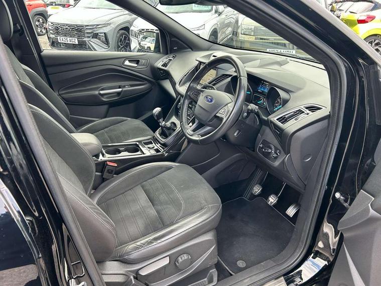 Enhanced active park assist including perpendicular parking pull out assist and flank guard, EPAS, Rear parking sensor, SYNC Emergency Assistance, Trip computer, Sports suspension, Auxiliary socket for external device, Remote audio controls on steering wheel, USB connection, Auto dimming rear view mirror, Automatic headlights, Black roof, Body colour bumpers, Body colour rear spoiler, Body styling kit, Electric folding mirrors, Electrically heated door mirrors, Front scuff plate, LED daytime running lights, Power front and rear windows, Quickclear heated windscreen, Rain sensor windscreen wipers, Rear diffuser, Tailgate wash/wipe, Twin exhaust pipes, 60/40 split/folding rear back and cushion, Alloy Foot Pedals, Auxiliary power socket in luggage area, Centre console with stowage tray/bottle holder/CD stowage/front and rear 12V power point, Dark headlining, Dinamica/Leather Upholstery, Driver seat lumbar adjustment, Driver/passenger front seatback pockets, Driver/passenger seats fore/aft adjustment, Dual electronic automatic temperature control, Floor mats with contrast stitching, Folding rear centre armrest, Footwell courtesy lights front and rear, Front head restraints, Front overhead courtesy lights with theatre style dimming and delay, Front/rear reading lights, Isofix system on outer rear seats, Leather gearknob, Leather steering wheel, Passenger lumbar support, Reach + rake adjustable steering column, Rear head restraints, Sports style front seats, Stowage unit in upper instrument panel, Tie down hooks, Tonneau cover, Variable intensity instrument illumination, 3 point seatbelts on all 3 rear seats, ABS/EBD, Driver and passenger airbags, Driver and passenger side airbags, Electric traction assist system, Electronic parking brake, ESP+EBA, Front and rear curtain airbags, Hill start assist, Intelligent Protection System (IPS), Tyre pressure monitoring system, Immobiliser, Keyless start, Locking wheel nuts, Remote central locking, Thatcham Cat.1 alarm, Mini steel spare wheel,