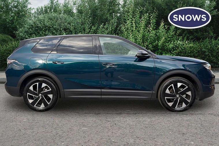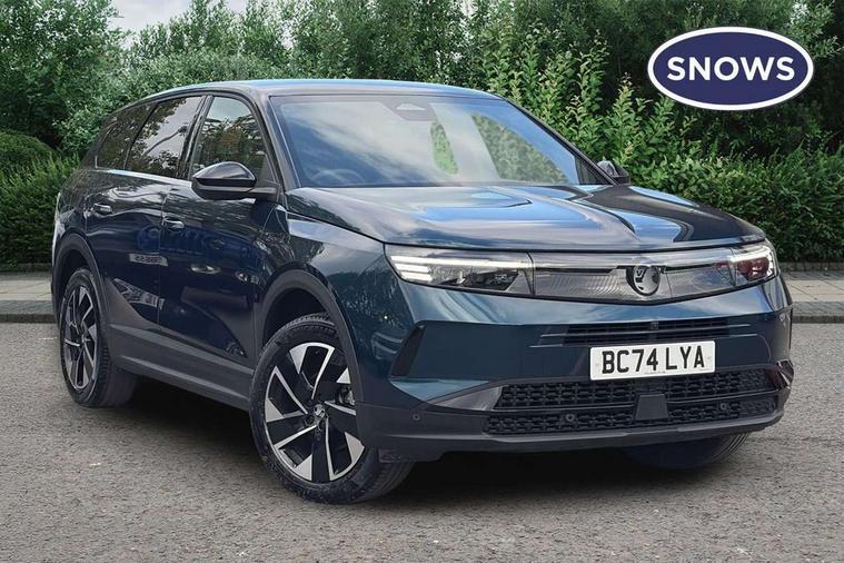10" digital instrument cluster, 16" multimedia navigation with wireless Apple Carplay/Android auto, 360 degree surround camera, Anticipated intelligent speed adaptation, Central facia display with digital clock, outside air temperature and audio information, Curve speed adaptation, Digital fuel gauge with low fuel level warning light, Digital rev counter, Digital speedometer, Digital water temperature gauge with warning light, Drive mode selector (Eco, Normal, Sport), Driver information - Total mileage, service indicator, oil life, Electric power steering, Front and rear parking sensors, In-crash braking, Intelli-HUD (Extended heads up display), IntelliDrive 2.0 - Semi autonomous lane change assist with lane positioning assist, rear cross traffic alert and side long range blind spot detection, Lights on audible warning, Multi function trip computer - Trip odometer, vehicle range, average speed and fuel economy, instantaneous fuel economy and driving time, Power tailgate, Speed sign recognition, Start/stop system, Vauxhall connect including Emergency call (SOS e-call) and Breakdown call (b-call), Wireless charger for mobile devices, Anti-roll bars, Compound crank rear suspension with coil springs and gas pressure dampers, Independent decoupled MacPherson strut front suspension with gas pressure dampers and coil springs, anti-roll bar, Stability control, 2 rear USB-C sockets, AM/FM and DAB radio, Premium focal Hifi sound system includes 10 speakers and subwoofer, Radio controls on steering wheel, Acoustic windscreen, Auto headlights, Automatic headlight beam levelling, Black door mirrors, Black grained wheel arch claddings, Body colour door handles, Dark tinted rear windows, Electrically defrosting driver and passenger door mirrors, Electrochromic frameless rear view mirror, Front illuminated griffin, Front wiper system spraying directly from wipers, Grained lower door claddings, Heated windscreen, High gloss black front and rear bumpers, High gloss black roof spoiler, Illuminated rear Vauxhall, IntelliLux LED headlights with 3D illuminated vizor, welcome and farewell animation, 11 driving modes and adaptive high beam assist, Intermittent rear window wash/wipe, LED 3rd brake light, LED daytime running lights, LED tail lights, Magic wash, Panoramic opening glass roof, Power folding door mirrors with memory function and reverse mode, Power front and rear windows, Rain sensor windscreen wipers, Rear side wing doors, Rear wipers with camera cleaning, Two speed windscreen wipers with variable intermittent wipe, Welcome lighting, 10 way manual adjustable heated front seats with AGR approved with pneumatic lumbar support, cushion nose extension and power tilt, 2 cupholders with slider, 3 12V plugs, 3 bench rear seats in 2nd row, 3 spoke leather effect steering wheel with dimpling, 7 colour ambient lighting, Automatic air conditioning, Centre console armrest, Chrome effect interior door handles, Clean cabin system, Cooled glove box and central console storage with LED light, Dashboard and door panels polychromatic ambient lighting, Dual zone electronic climate control, Front door storage with 1.5 litre capacity, Front seat back storage pockets, Fully carpeted luggage area, Heated steering wheel, Height adjustable headrests, Illuminated vanity mirrors, Intelli air, Paddle shifts, Pixel storage, Rear armrest, Rear centre seat head restraint, Rear clothes hooks on B pillar trims, Single passenger seat, Sunglasses Box, Touch sensitive front and rear reading lights, Anti-lock braking system (ABS), Automatic emergency braking system, Child proof locks on rear doors, Deactivation switch for front passenger front and side impact airbags, Deflation detection system, Driver airbag, Dual seatbelt pretensioners on front seats, EBD - Electronic brakeforce distribution, Electronic parking brake, Front and rear ventilated discs, Front passenger airbag, Front seat side impact airbags, Full-size curtain airbags for driver and front passenger, Hill assist control, Hydraulic Brake Assist (HBA), Inertia reel lap and diagonal seatbelts for all seats, Load limiters on outer rear seatbelt retractors, Pretensioners on outer rear seatbelt retractors, Rear 3 point ISOFIX, Smart seatbelt reminder for front and rear seats, Tyre pressure monitoring system, Central locking, Deadlocking system, Electronically protected audio equipment, Engine deadlock immobiliser, Keyless entry and start, Locking wheel nuts, Remote security alarm system, Mistral dark ambience, 19" Diamond cut alloy wheels, Tyre repair kit,