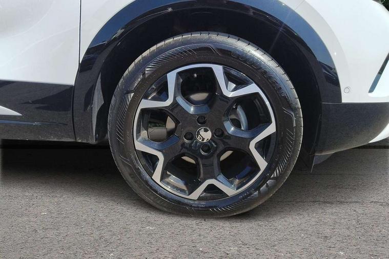 10" digital instrument cluster, Active drive assist, Adaptive cruise control, Digital instrumentation with digital speedometer, rev counter, fuel and water temperature gauge, Driver attention alert, Driver drowsiness alert system, Driver information display with multi function trip computer, audio info, digital clock and outside air temperature with ice warning function, Front and rear parking distance sensors, Lane keep assist system (LAS) with Lane departure warning system (LDWS), Lights on audible warning, Panoramic rear view camera, Power assisted speed sensitive steering, RDS with traffic programme, Side blind spot alert and flank guard, Speech recognition, Start/stop system, Vauxhall connect with e-Call, WiFi connectivity, Wireless phone projection with Apple CarPlay and Android Auto, Sports chassis, 2 rear USB connection, 6 speakers, AM/FM stereo radio with 36 station presets, DAB Digital radio, Front USB connection, Mobile phone portal - bluetooth connect, vehicle microphone, handsfree calls, SMS read out and reply, phone book access, Multimedia pure panel navigation system with 10" colour touchscreen and 15W wireless charger, Steering wheel mounted controls, Adaptive brake lights, Automatic headlamp levelling, Automatic lighting control with tunnel detection, Black DLO, Black door mirror housings, Black Griffin logo and vizor frame, Black lettering and emblems, Black upper window moulding, Body colour door handles, Body colour front and rear bumpers, Body colour skid plates, Dark tinted rear side windows, Electrically adjustable and heated door mirrors, Electrically foldable door mirrors, Electrically operated front and rear windows with safety auto reverse and one touch up/down facility, Electrochromatic frameless auto dimming rear view mirror, Hazard warning lights, Heated rear window+rear wash/wipe, High gloss black front and rear bumper inserts, High gloss black painted claddings, lower grille and front lateral inserts, High gloss black painted lateral moulding, Integrated black tailgate spoiler, IntelliLux matrix headlights with advanced forward lightning and anti glare beam, LED 3rd brake light, LED daytime running lights, LED side repeat indicators, Rain sensitive windscreen wipers, Rear side wing doors, Reversing light, Shark fin antenna, Solar heat absorbing windscreen and windows, Windscreen and side window demist vents, 12V Accessory socket, 3 seat bench in 2nd row, 4 speed fan with illuminated controls, 4 way electrical driver lumbar adjustment, 6 way adjustable front passenger seat including height adjustment, 60/40 split folding rear seat, Air recirculation system, Ambient lighting, Black headliner, Cabin particulate filter - removes dust, airborne particles and pollen, Chrome effect interior door handles, Door pockets with two litre capacity, Driver and passenger heated seats, Driver and passenger sun visors with vanity mirror, Driver seat massage function, Electronic climate control (ECC), Four adjustable facia vents, Four load restraint lashing eyes, Front centre armrest with storage, Front driver and co-driver side articulated grab handles, Front head restraints, Front map reading lights, Front seat back storage pockets, Fully carpeted load area, Heated steering wheel, Interior courtesy light, Interior tailgate handle, Luggage compartment cover, Luggage compartment lighting, Moveable boot floor, Reach + rake adjustable steering column, Rear Reading Lamps, ReNewKnit fabric/leather upholstery, Single front passenger seat, Three height adjustable rear seat head restraints, Twin gas assisted tailgate struts, 2x Isofix child seat fitting on outer rear seats, 3x3 point rear seat belts, Anti-lock braking system (ABS), Child proof locks on rear doors, Cornering brake control, Deactivation switch for front passenger front and side impact airbags, Drag torque control, Driver and front passenger airbags, front seat side impact airbags, full size curtain airbags, Electronic brake force distribution, Electronic Stability Programme (ESP), Emergency brake assist, Enhanced automatic emergency braking with pedestrian and bicycle detection, Forward brake assist, Forward collision alert at all speed, Hill start assist, Inertia reel lap and diagonal seatbelts for all seats, Manual parking brake, Seatbelt unfastened audible warning and warning light, Straight line stability control, Traction control, Tyre pressure monitoring system, Electronically protected audio equipment, Engine deadlock immobiliser, Freewheeling door locks, Key left in ignition audible warning, Keyless entry and start, Locking wheel nuts, Remote control central locking, Remote control ultrasonic security alarm system, Visible vehicle identification number, Black facia with silver trim insert, Light grey trim inserts on front doors, Vegan door inserts, 18" Black diamond cut alloy wheels,
