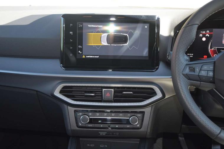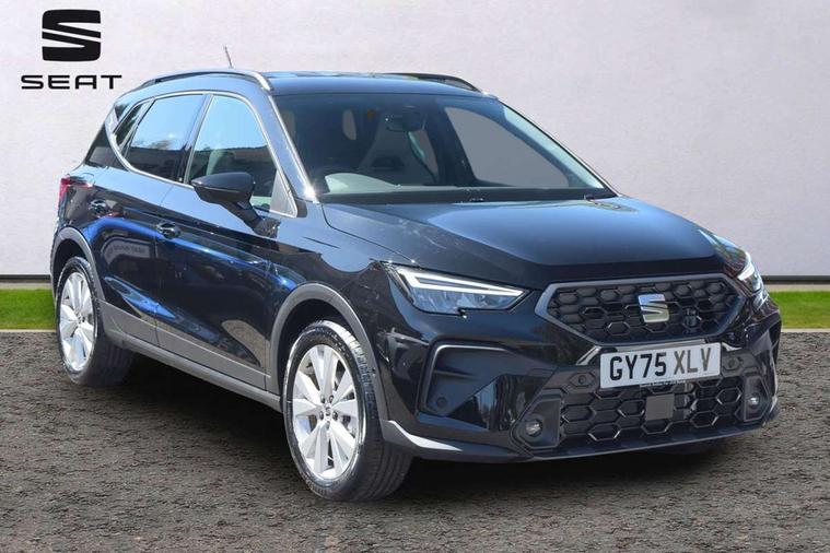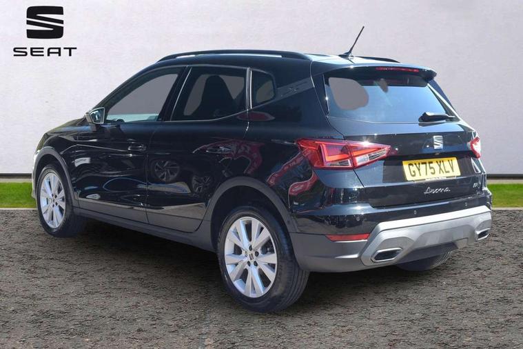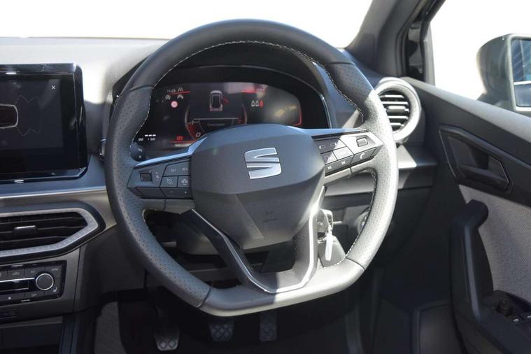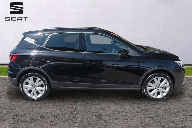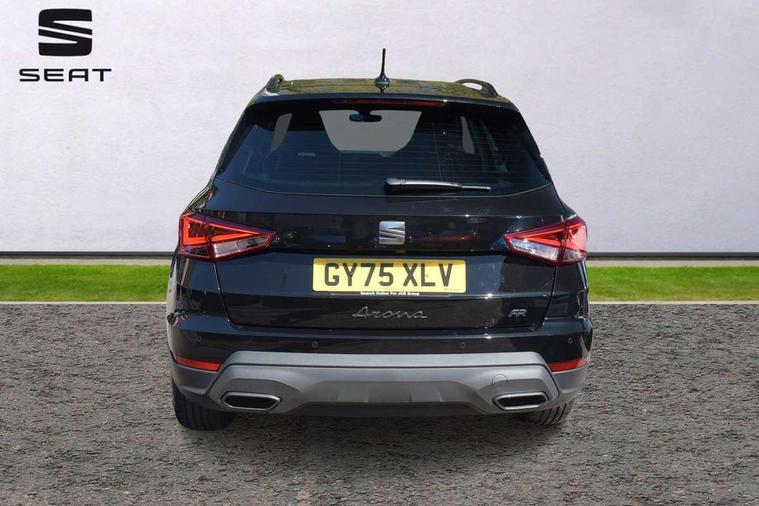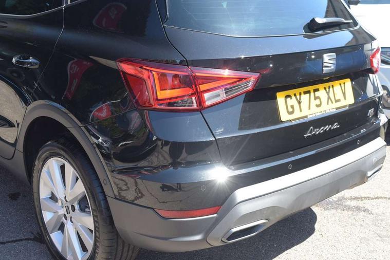 'Lights On' Reminder warning buzzer, 8" Digital cockpit, Digital clock, E-call, Electric speed sensitive power steering, Front parking sensors, Full link smartphone integration with mirror link, wireless apple carplay, Google android auto + USB Type C cable for apple and android devices, Low fuel warning light, Outside temperature display, Rear view camera, RPM counter, SEAT Drive profile - Four different models normal-sport-eco-individual, steering response, throttle response, Trip computer, Wireless phone charger, 9.2" colour touchscreen with navigation system, voice control and USB port (type c), Bluetooth interface for hands free and audio streaming, DAB digital radio and AM/FM radio, Steering wheel mounted audio controls, Anti theft roof antenna, Auto dimming interior rear view mirror, Automatic activation of hazard warning lights, Black roof rails and window surrounds, Body coloured bumpers, Body coloured door handle inserts, Dark tinted rear windows, Electric front/rear windows, Electrically adjustable, heated and folding door mirrors, Front fog lights with cornering function and rear fog light, LED 3rd brake light, LED daytime running lights, LED rear tail lights and licence plate lights, Protective side mouldings, Rain sensing wipers, Rear side wing doors, Rear spoiler, Rear window wash/wipe, Roof colour door mirrors, SEAT design Full LED automatic headlamps with dynamic headlight range control, coming and leaving home feature, Twin exhaust pipe styling with double flow exhaust pipe, Visible VIN plate, 2 cupholders, 3 seat bench in 2nd row, 60/40 split folding rear seat, Aircare filter, Black headliner, Cloth upholstery with embossed textile/Sport bucket seats, Double boot floor, Driver sunvisor with covered mirror + card holder, Dual zone climate control, Front courtesy light with front reading lights, Front seat back storage pockets, Heated front seats, Height adjustable front seats, Height/reach adjustable steering column, Illuminated air vent surrounds, Interior ambient lighting, Interior light in footwell, central console and door panel, ISOFIX points in outer rear seats with top tether anchorage points, Passenger sunvisor with vanity mirror, Perforated flat bottomed leather steering wheel/gear knob/handbrake with red stitching and FR logo, Red coloured interior air vents, Single front passenger seat, Two front and three rear height adjustable headrests, Interior chrome pack - Arona, Safe and driving pack (S) - Arona, Storage pack - Arona, 3 point seatbelts on all rear seats, ABS, Active front headrests, Child locks on rear doors, Driver and front passenger airbags with front passenger airbag de activation, front side and curtain airbags, Emergency Brake Assist (EBA) and front assist, Front and rear seatbelt reminder, Hill hold control, Multi-Collision braking, Tiredness recognition system, Traction control, Tyre pressure monitoring system, Anti-theft alarm (perimeter and interior monitoring) with backup horn and towing protection, Central locking with radio remote control, interior controls and SAFELOCK, Deadlock, Electronic engine immobiliser, KESSY Keyless entry and go, Locking wheel bolts, 17" Dynamic alloy wheels in brilliant silver,