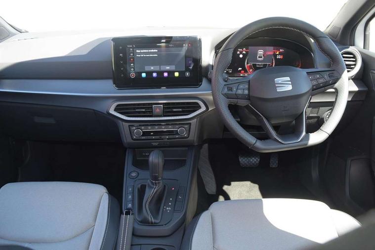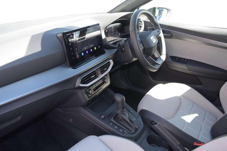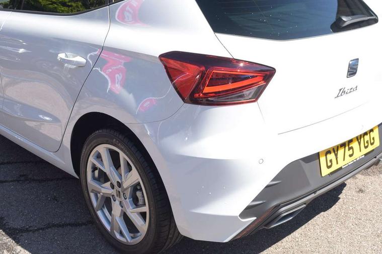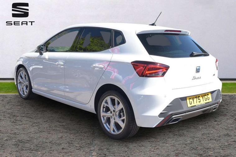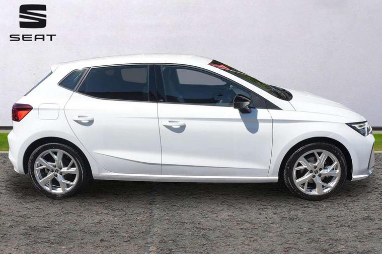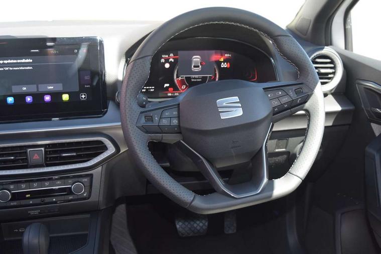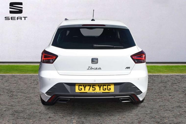 8" Digital cockpit, 9.2" touchscreen navigation system with type C USB socket, Voice control and DAB/AM/FM radio, Bluetooth audio streaming with handsfree system, Cruise control and speed limiter, E-call, Front parking sensors, Full Link Smartphone integration with Mirror Link, Apple Car Play, Google Android Auto with USB Type C cable for Apple and Android devices, PAS, Rear view camera, SEAT Drive profile - Four different models normal-sport-eco-individual, steering response, throttle response and gear shifts mode, Start/stop system, Sport suspension, Body colour mirror caps, Body coloured bumpers, Body coloured door handles, Dark tinted rear windows, Electric front and rear windows, Electrically adjustable, heated, folding exterior mirrors, FR styled rear diffuser, Front foglights with cornering functionality, Interior auto dimming rear view mirror, LED 3rd brake light, LED daytime running lights, LED license plate light, LED taillights, Rear fog lights, Rear side wing doors, Rear wash/wipe, SEAT Design Full LED automatic headlamps with signature dynamic headlight range control and coming and leaving home feature, 3 seat bench in 2nd row, 60/40 split and folding rear seats, Black headlining and chrome detailing, Cloth upholstery, Dual zone climate control with combination filter, Front integrated headrests, Front reading lights, Heated front seats, Height adjustable front seats, Height adjustable rear headrests, Interior ambient lighting in footwell, Isofix, Nappa leather multifunction flat bottomed sports steering wheel, Red coloured interior air vents with ambient lighting, Single front passenger seat, Sports bucket seats, Storage pockets on back of front seats, Sunvisors with mirrors and card holder on drivers side, Safe and Driving pack (S) - Ibiza, ABS, Child locks on rear doors, Driver and passenger airbags, Front driver and passenger side airbags with curtain airbag and front passenger airbag deactivation, Hill hold control, Three point seat belts on all rear seats, Tyre pressure monitoring system, Anti-theft alarm with interior monitoring, backup horn, and towing protection, KESSY Keyless entry and go with Safelock, Locking wheel bolts, 17" Dynamic alloy wheels in Nuclear grey,