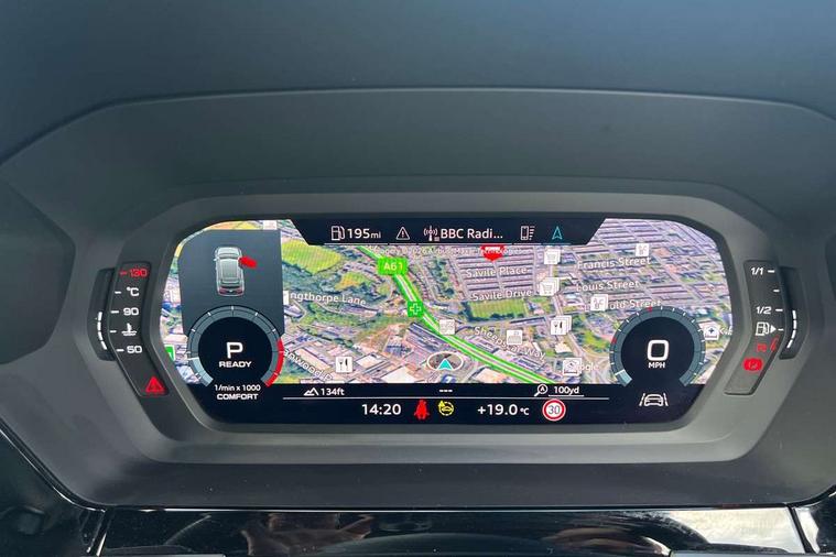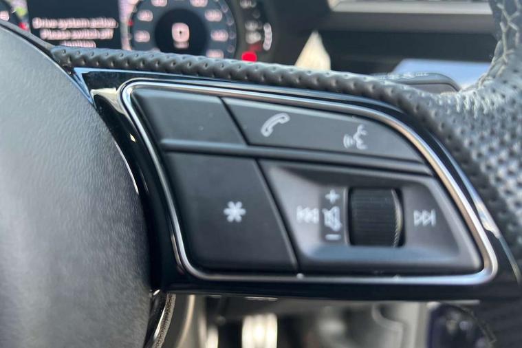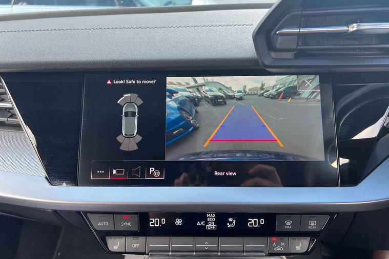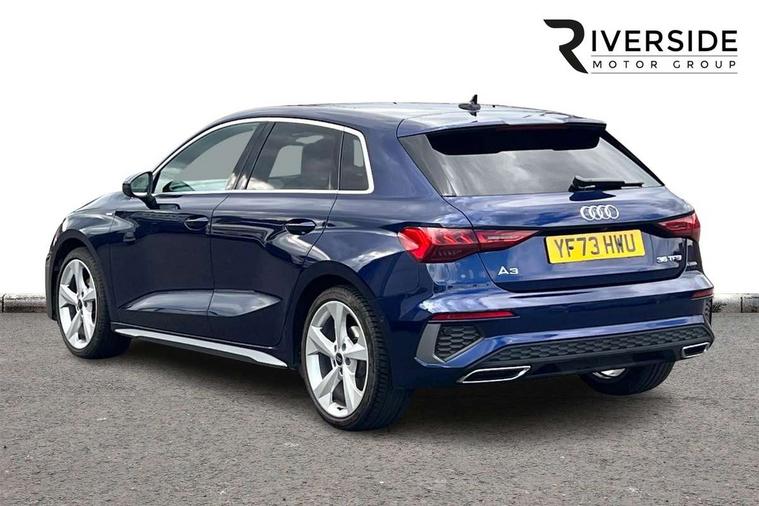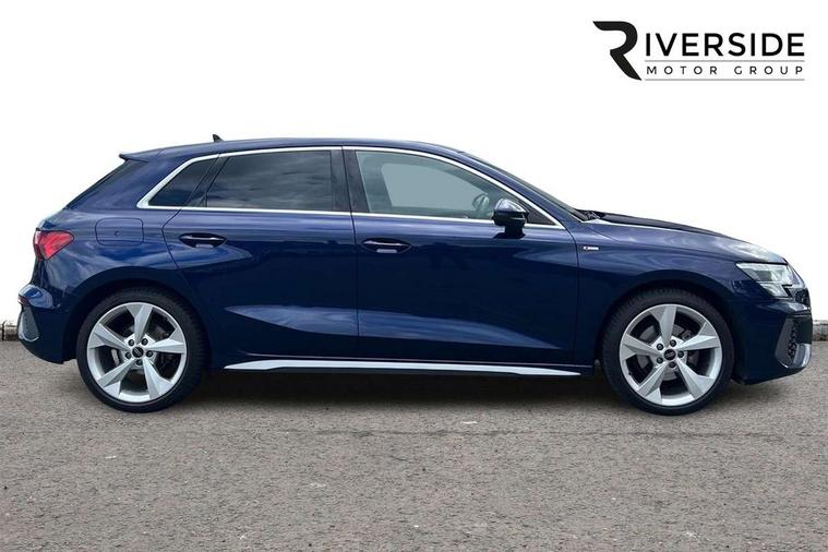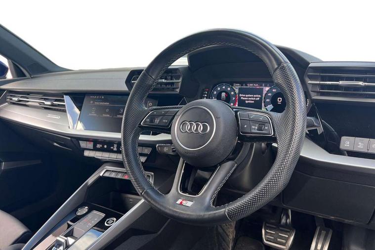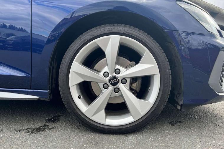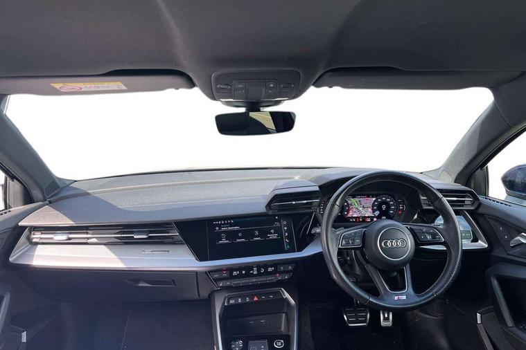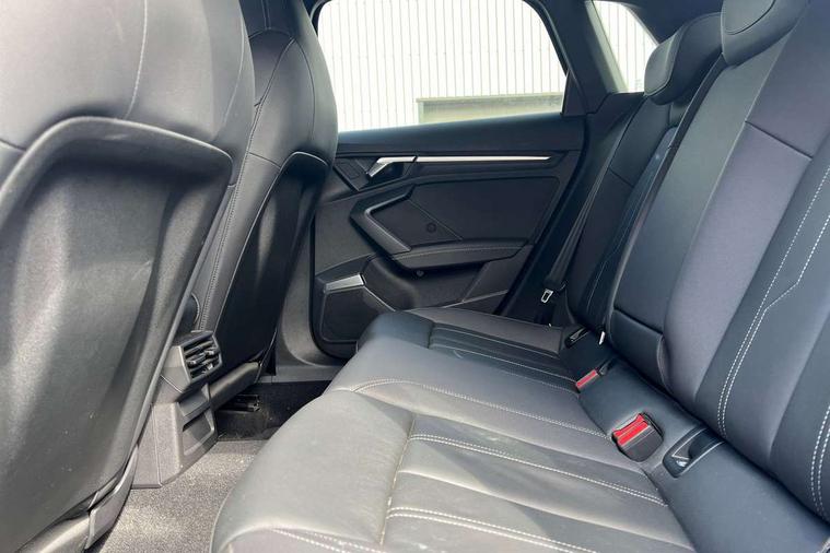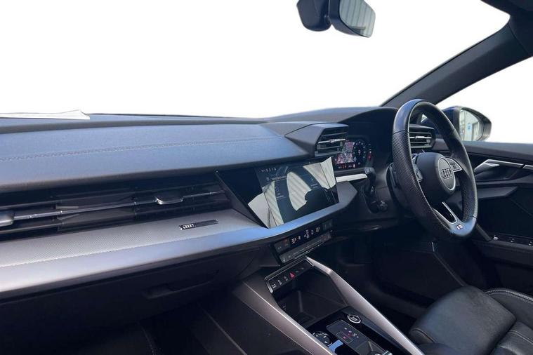 Audi drive select (Auto, Comfort, Dynamic, Efficiency and Individual), Audi smartphone interface, Audi Virtual Cockpit - 10.25" digital and colour instrument cluster, Automatic start/stop system with recuperation, Bluetooth interface, Camera based traffic sign recognition, Collision avoidance assistant, e-Call (emergency call), Electromechanical power speed sensitive steering, Lane departure warning system, MMI Navigation Plus with high resolution 10.1" colour touch screen display, Service indicator, Trip computer, Voice control system with natural language interaction, Sports suspension, 2xUSB-C connection with data and charging functions, 6 passive loudspeakers, DAB Digital radio, 3rd brake light, Acoustic glass windscreen, Aluminium window trim, Auto dimming frameless rear view mirror, Body colour exterior mirrors, Electrically adjustable/heated/folding/dimming door mirrors with kerb view includes integrated LED indications + kerb view function for passenger side, Front electric windows, Illuminated door sills with aluminium inserts at the front with S logo, LED daytime running lights, LED headlights with LED rear lights and dynamic rear indicators, Light and rain sensors, Privacy glass - dark tinted rear window, rear door and side windows, Rear electric windows, Rear side air outlets in grained matt black, Rear side wing doors, Rear wiper, S line bumpers, S roof spoiler, 12V socket and storage compartment in front centre console, 3 seat bench in 2nd row, 3 spoke leather multifunction steering wheel with paddle shift, 4 way electrically adjustable lumbar support for driver and front passenger, 60/40 split folding rear seat bench, Black cloth headlining, Dual zone electronic climate control, Front and rear centre armrest in artificial leather, Front and rear headrests, Front/rear floor mats, Height and reach adjustable steering wheel, Interior lighting - glove compartment light and right hand side, Luggage compartment floor covering, Manual boot compartment lid, Manually adjustable front seats, Seat side bolsters, Single front passenger seat, Stainless steel pedals and front footrest in black, Twin leather upholstery with front sports seats S embossed logo, Aluminium interior elements pack - A3 Sportback, LED interior lighting pack - A3 Sportback, S line styling pack - A3 Sportback, 3x3 point rear seat belts, Driver and front passenger airbag with passenger airbag deactivation, Electronic Stabilisation Control (ESC) including ABS, ASR and EDL, First aid kit with warning triangle and 2 safety vests, Front side airbags with head airbags and interaction airbag, Pre-sense front with pedestrian and cyclist detection, Seatbelt monitoring, Tyre pressure loss indicator, Anti theft alarm, Anti-theft wheel bolts, Electronically operated child locks, Immobiliser, Remote control central locking, Dark spectrum aluminium inlays, accent surfaces in the dashboard and centre console in platinum grey silk effect paint finish,