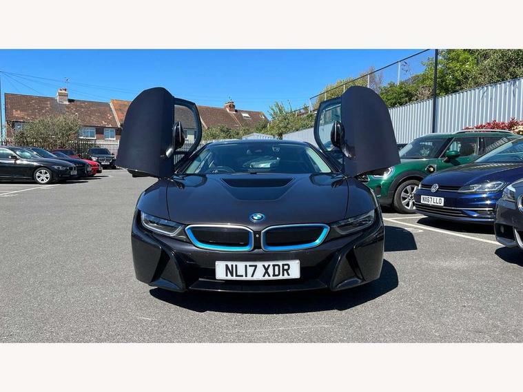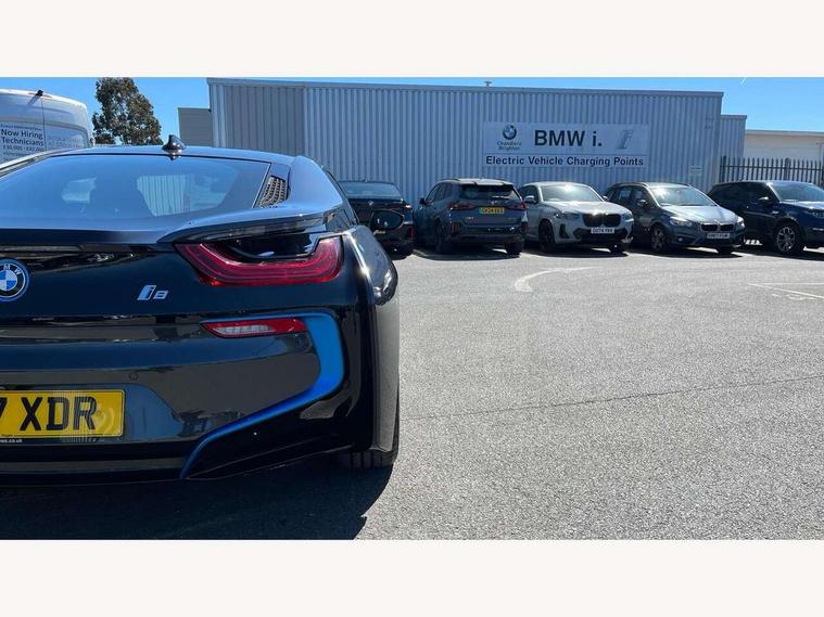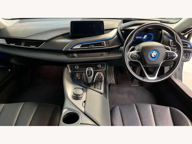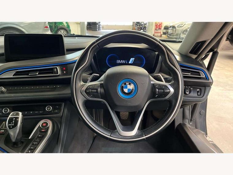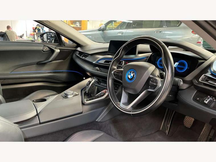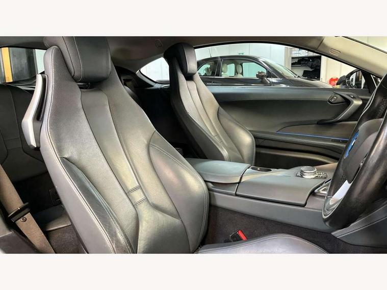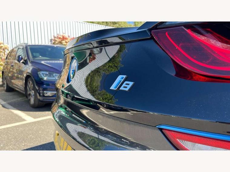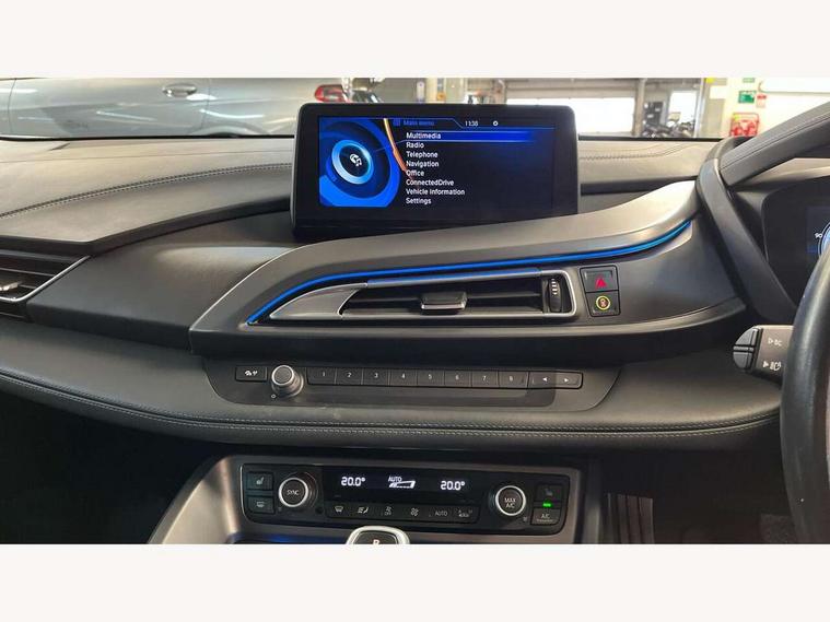 20GB Hard drive, BMW display key, Brake pad wear indicator warning light, Check control system, Cruise control with brake assist, Electric power steering, Enhanced bluetooth telephone functionality with USB audio interface + voice control, Front/rear park distance control, Head up Display, iDrive Touch Controller with 8.8" colour display, Luggage compartment with electric unlocking via key remote control, Multifunctional instrument panel, Navigation System Professional Multimedia, On board computer, On-board diagnosis - OBD, Outside temperature display, Personal Profile, Service interval indicator, Stop/start button, Variable Damper Control, Double wishbone suspension, Drive Performance Control, Multi-link rear suspension, Aux input, BMW professional radio, DAB Digital radio, Aluminium bonnet in two tone body colour and high gloss black, Auto dimming door mirrors, Auto dimming rear view mirror, Body colour bumpers, Body colour door mirrors, Dynamic brake lights, Electric + heated aspheric door mirrors, Electric folding door mirrors, Electric front windows with fingertip open/close + anti-trap facility, Fogging sensor for front windscreen, Fuel filler cap, Green tinted heat insulating glass, Headlight washers, Heated windscreen washer jets, High gloss black kidney grille, LED welcome home lights, Rain sensor with auto light activation system, Twin exhaust tailpipe, Welcome lighting, 12V power outlets, Adjustable steering column, Ambient interior lighting, Auxiliary air conditioning, Cup holders, Dual zone automatic air conditioning, Electrically adjustable front seats, Front centre armrest with storage compartment, Front footwell lights, Front seat back storage pockets, Glovebox, Heated front seats, Integrated front head restraints, Isofix attachments on rear seats, LED reading lights, Passenger footwell storage net, Rear coat hooks, Removable load compartment cover, Sport multifunction leather steering wheel in black with satin silver accent with gearshift paddles, Storage nets, Sunvisors with vanity mirrors, ConnectedDrive Services pack - i8, Driving assistant pack - i8, ABS/EBD, Cornering brake control (CBC), Crash Sensor - activates hazard/interior lighting + unlocks doors, Deformation zones front and rear, Driver/Front Passenger airbags, Driver/front passenger side airbags, DSC+, Dynamic brake control, Dynamic Traction Control - DTC, Electromechanical parking brake, Front and rear head airbags, Front passenger airbag deactivation, Front seatbelt force limiters, Front seatbelt pretensioner, Hill start assist, Passenger occupancy sensor, Rear seatbelts with pre-tensioners and load limiters, Tyre pressure monitoring system, Warning triangle and first aid kit, Engine immobiliser, Key integrated remote control central locking, Keyless ignition, Locking wheel bolts, Remote control Thatcham category 1 alarm, Leather instrument panel, Tyre repair kit,