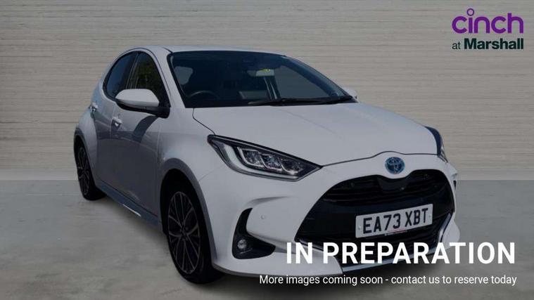 Adaptive cruise control, Adjustable speed limit with speed warning, Blind spot monitoring, Bluetooth connectivity, Colour binocular inspired displays with digital speedometer, E-call, Electric power steering, Hybrid energy display, Multi information display switches on steering wheel, Reversing camera, Smartphone integration with Apple CarPlay and Android auto, Tailgate, Touch 2 navigation system, Voice recognition, Vehicle Stability Control (VSC), 6 speakers, 9" HD multimedia display touch screen with Toyota smart connect, USB connection, Acoustic windscreen glass, Auto windscreen wipers, Automatic headlights, Automatically retractable door mirrors, Body coloured door mirrors, Electric adjustable heated door mirrors, Follow me home headlights, Front auto power windows with anti jam protection, Full LED rear lights, LED daytime running lights, LED front fog lights, LED front light guide, LED Headlights, LED High mounted stop lamp, LED Indicators, LED rear light guide, Manual headlight levelling, Painted chequered front grille, Rain sensor, Rear auto power windows with anti jam protection, Rear privacy glass, Rear side wing doors, Rear spoiler, Rear wiper, Satin lower front grille, Shark fin antenna, Turning signal integrated indicators in door mirrors, Variable front intermittent wipers, 3 adjustable rear headrests, 3 seat bench in 2nd row, 3 spoke leather steering wheel, 60/40 split folding rear seat, Active headrests, Adjustable boot height, Coat hooks in rear grab handles, Cup holders (2 front & door), Data Communication Module (DCM) connected services, Dual zone automatic air conditioning, Fabric seat with partial synthetic leather upholstery, Front armrest, Front sport seats, Glovebox, Grey roof lining, Height adjustable driver's seat, Height adjustable passenger seat, Isofix seat fixing, Leather gearshift, Map pockets on the backs of the front seats, Pollen filter, Shopping bag hooks, Single front passenger seat, Tilt/telescopic steering column, Parking pack - Yaris, 3 point seatbelts on all rear seats, ABS+EBD+Brake assist, Electronic parking brake, Emergency brake light system (EBS), Front passenger airbag on/off switch, Front seatbelt reminder, Hill start assist control (HAC), Rear child proof door locks, Rear seat belt reminder, Supplemental Restraint System (SRS) 8 airbags: Driver & passenger's airbags, dual side curtain airbags, side impact airbags, front centre airbag, Toyota Safety Sense 2, Precollison + Night time Pedestrian & Cyclist Detection, Lane Trace Assist, Auto High Beam, Intelligent ACC & Road Sign Assist, Tyre pressure warning system, 2x Master key, Alarm/immobiliser, Keyless smart entry with push button start, Remote AC via MyT, Remote locking via MyT, Remote powered central double locking doors, Satin chrome interior styling, Soft touch instrument panel, Space saver spare wheel,