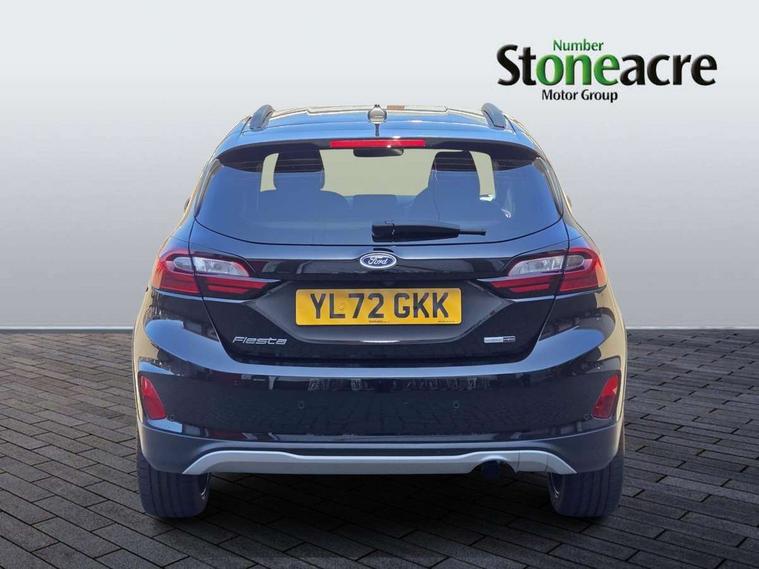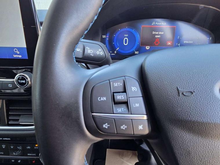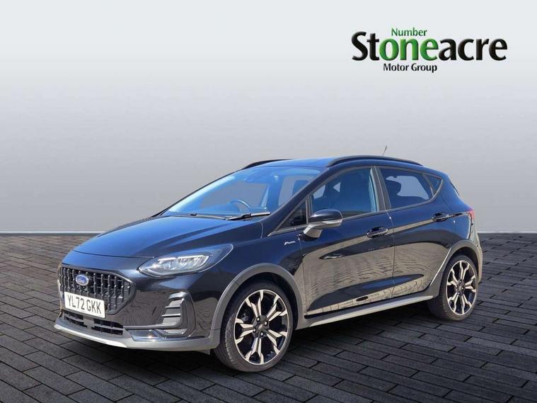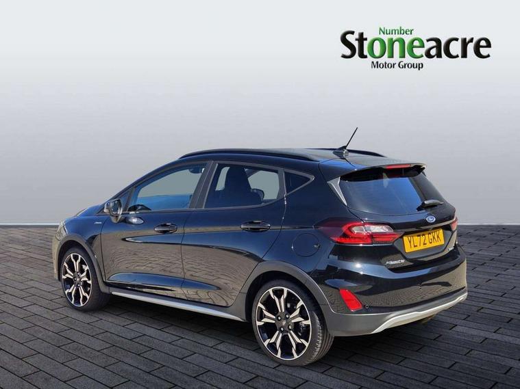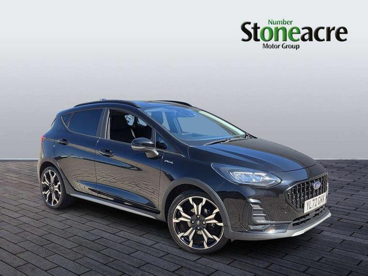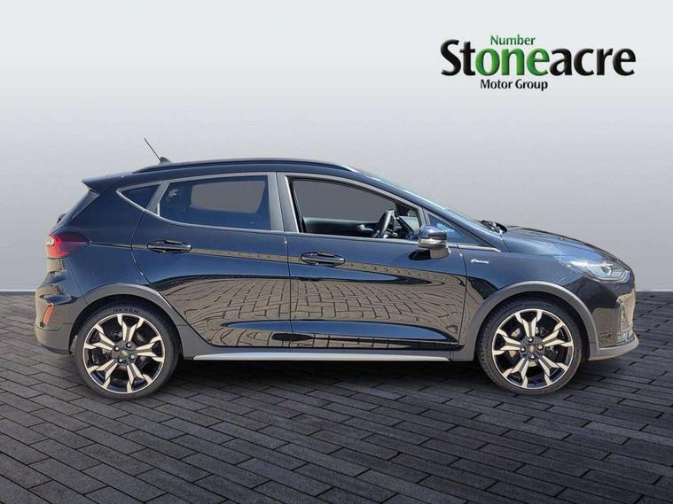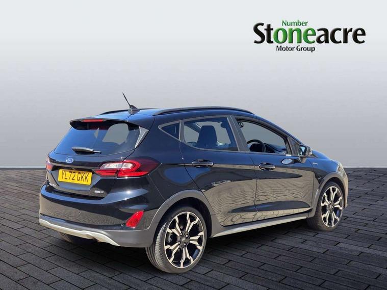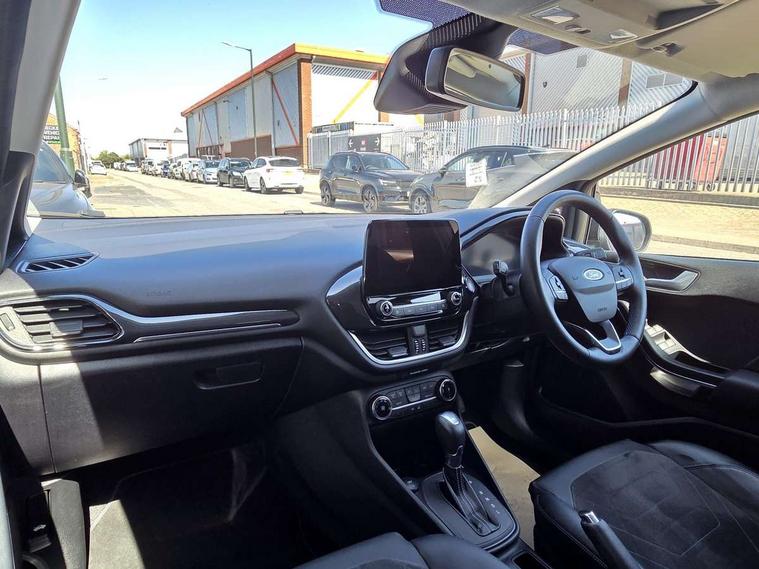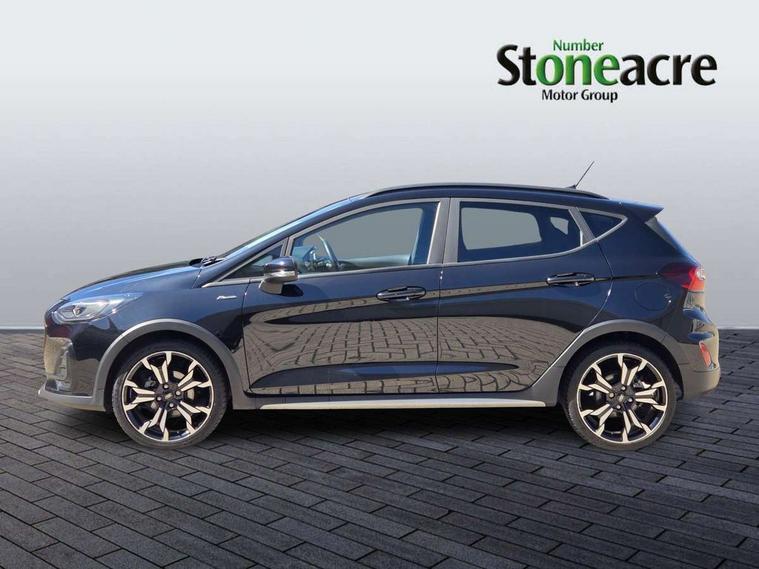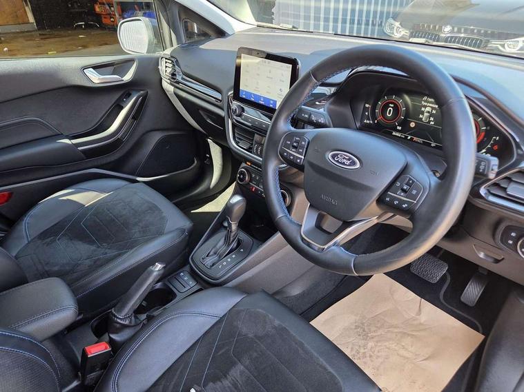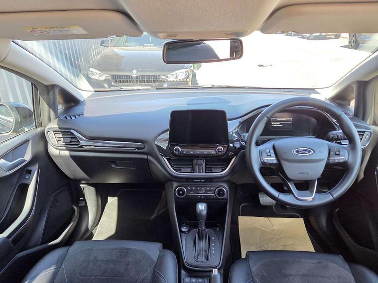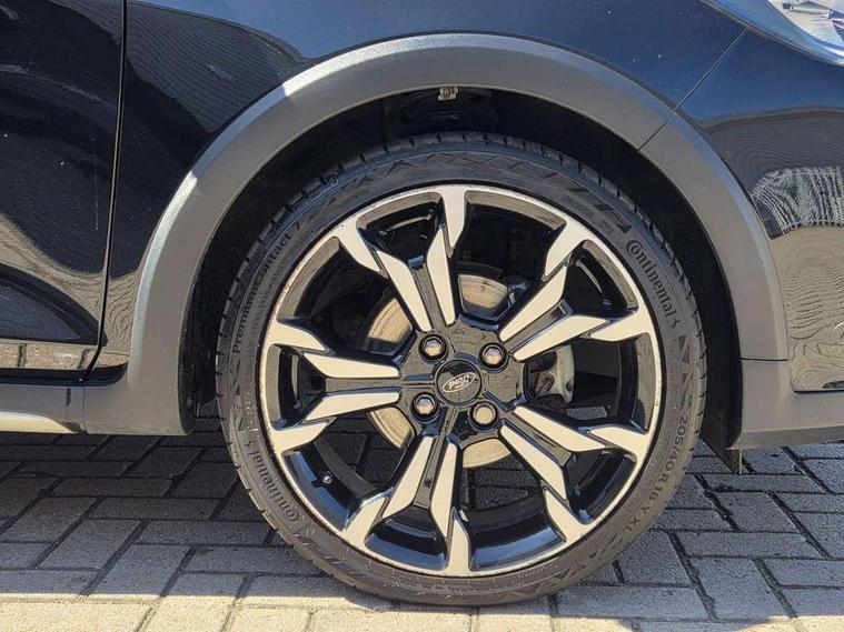 4.2" TFT instrument cluster screen, Bluetooth system, Electric power steering, Extra selectable drive modes ( Trail, Slippery), Ford easy fuel, Rear parking distance sensors, Selectable drive modes (Normal, Sport, Track), Traffic sign recognition, Trip computer, Rough road suspension with increased ride height adjust, 2 USB ports, Auxiliary input socket, B&O Premium audio system with 8" touchscreen, 10 speakers, 360 degree sound system, Ford SYNC 3 navigation system and Ford pass connect, DAB Digital radio, Steering wheel mounted controls, Auto high beam, Body colour bumpers, Body colour door handles, Body colour rear spoiler, Chrome beltline trim, Cornering front fog lights, Electric front windows/one touch facility, Electric rear windows, LED Night signature to rear lights, Mesh design front grille with chrome surround, Power foldable door mirrors with puddle lights, Quickclear heated windscreen, Rain sensing wipers and auto dimming rear view mirror, Rear privacy glass, Rear wiper, Rugged body styling kit with active front wing badges, 3 spoke leather trimmed steering wheel with audio control, 60/40 split folding rear seat, Adjustable head restraints, Boot carpet, Centre console with opening armrest, 2x cupholders, 12v and USB, Chrome inner door handles, Drivers and Passenger lumbar support, EATC - Electronic Auto Temperature control, Footwell illumination, Front floor mats in velour, Front map reading lights, Front seat and rear pockets, Height adjustable passenger seat, Illuminated glovebox, Leather gear knob, LED ambient lighting, Load area light, Manual 4-way driver seat adjust, Overhead console with sunglasses holder, Pollen filter, Rake/reach adjustable steering wheel, Sensico partial premium upholstery, Sensico wrapped steering wheel, NCAP Pack - Fiesta, 3 point seatbelts on all rear seats, ABS+EBA, Curtain airbags, Driver and passenger airbags, Drivers knee airbag, Electronic stability control with hill start assist, Front passenger airbag deactivation, Front side airbags, Seatbelt warning, Two tone horn, Tyre pressure monitoring system, Ford keyfree system with Keyless entry and keyless start, MyKey system, Remote central locking & engine immobiliser, Thatcham Cat.1 alarm, 18" 5 spoke alloy wheels with shadow black machined finish,