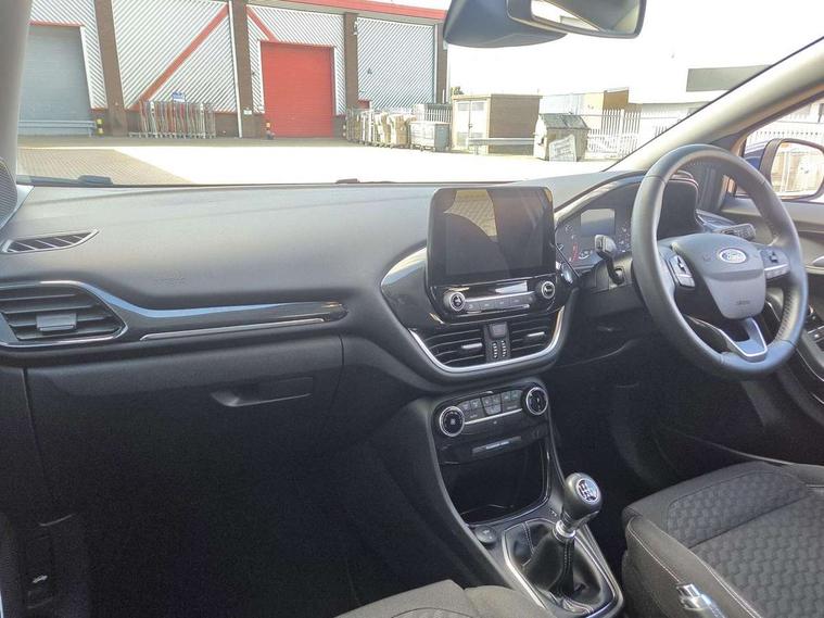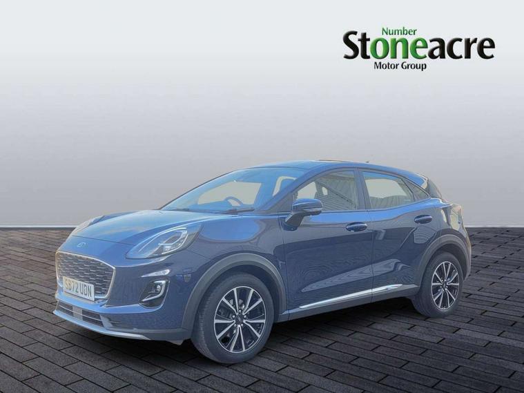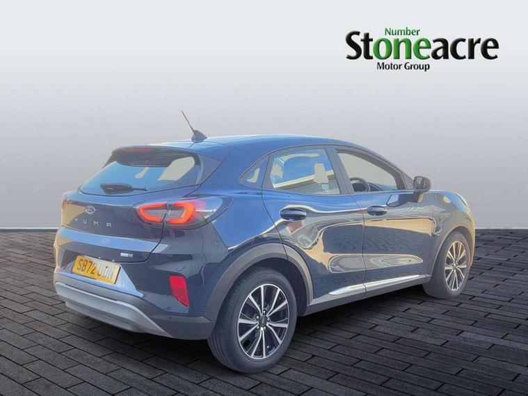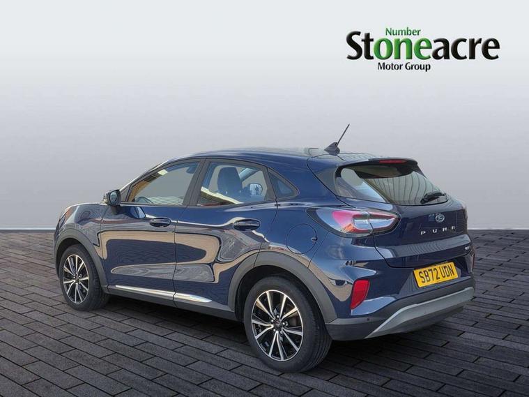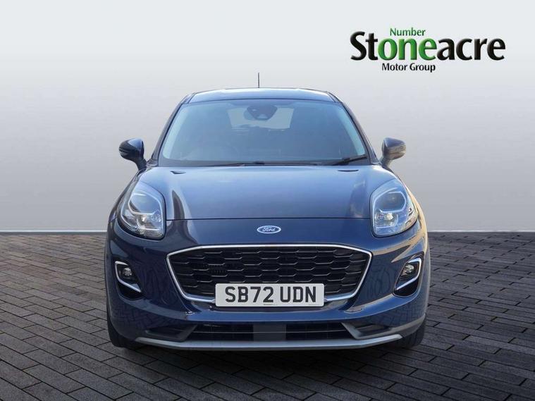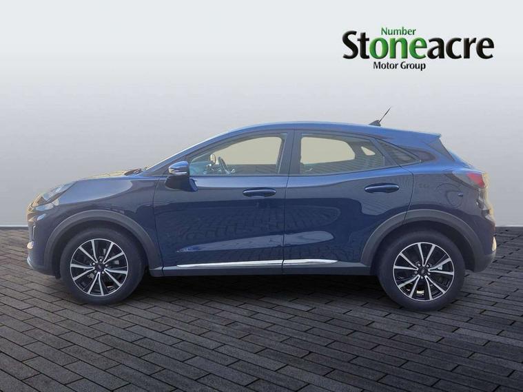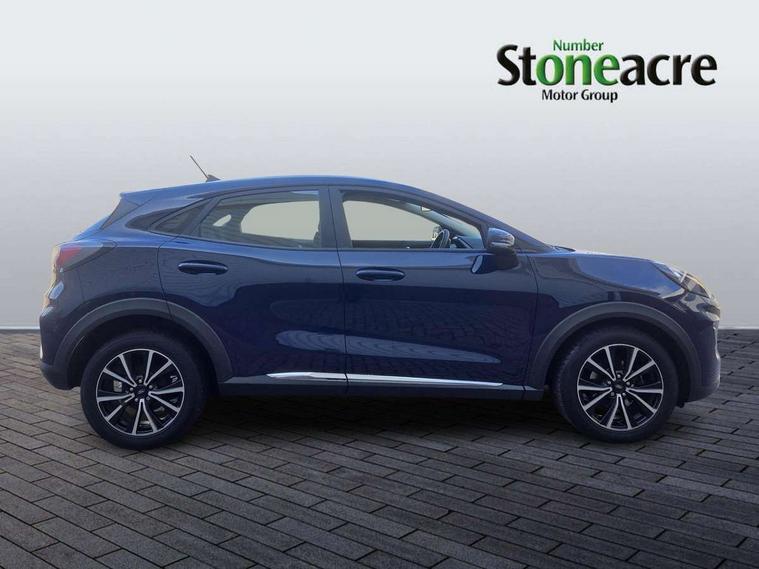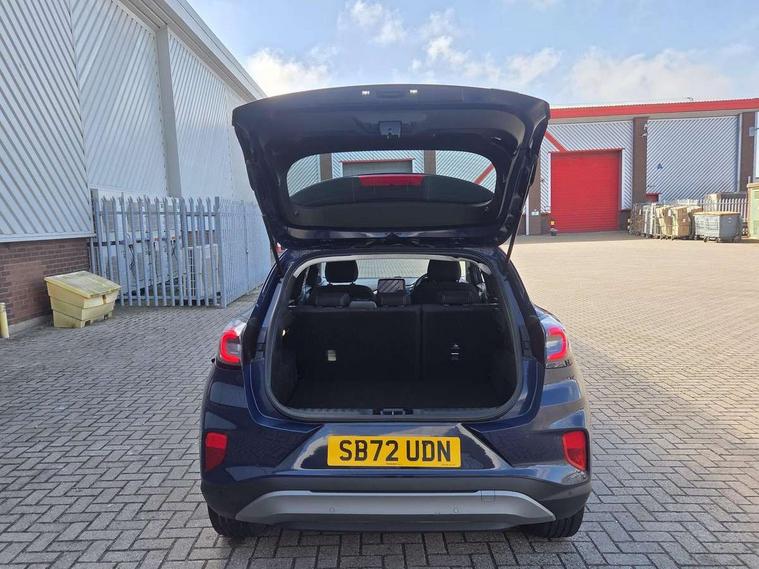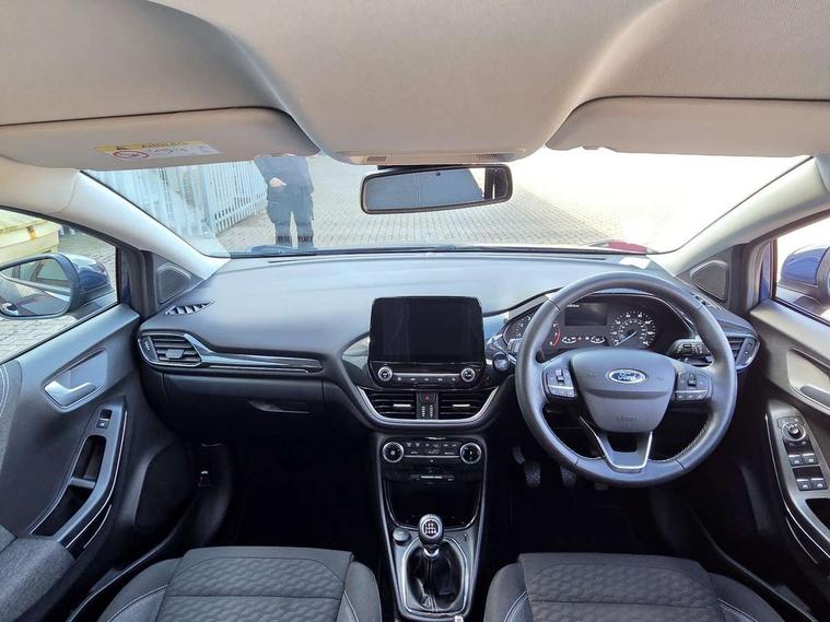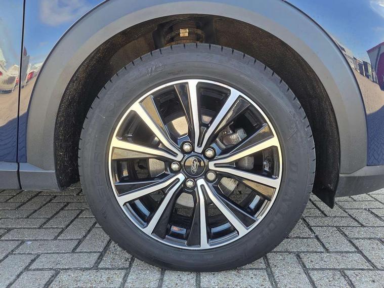 Driver impairment monitor, Emergency call service, Ford easy fuel, Lane keeping aid with lane departure warning, Power assist steering, Power start button, Rear parking sensor, Selectable drive modes(Normal, Eco, Sport, Slippery and Trail), Speed sign recognition, Standard suspension, Automatic headlights with auto high beam, Automatic rain sensing wipers, Body colour rear spoiler, LED rear lamps, Power foldable heated door mirrors with puddle lamps, Projector headlamps with LED day time running lights and front fog lamps, Quickclear heated windscreen, Rear side wing doors, Rear wiper, Third brake light, 3 seat bench in 2nd row, Centre console with armrest and stowage, Electronic automatic temperature control (EATC), Ford megabox extended bootspace, Front and rear head restraints, Front floor mats, Manual 2 way passenger seat adjustment, Manual 4 way driver seat adjust with lumbar adjustment, Sensico leather steering wheel/gear knob/handbrake, Single front passenger seat, Titanium cloth upholstery, Ford SYNC 3 navigation pack - Puma, 3 rear seatbelts, Child safety lock, Electronic stability control (ESC) and hill start assist, Pedestrian/cyclist detection & post-collision braking, Pre collision assist system, Tyre pressure monitoring system (TPMS), Thatcham alarm, 17" 10 spoke absolute black machined finish alloy wheel,