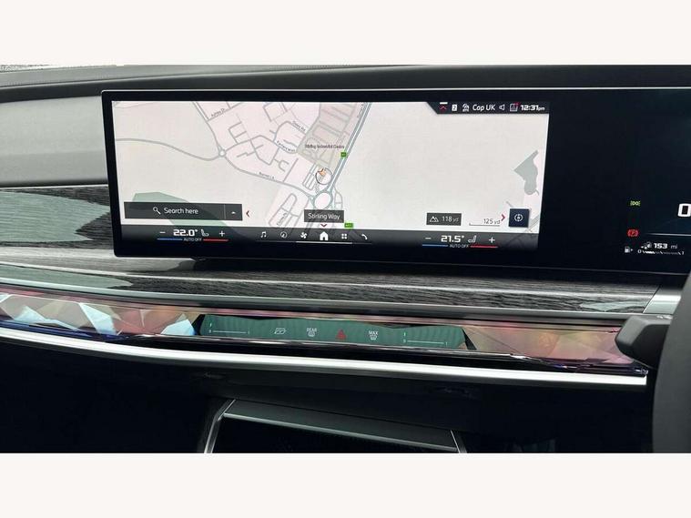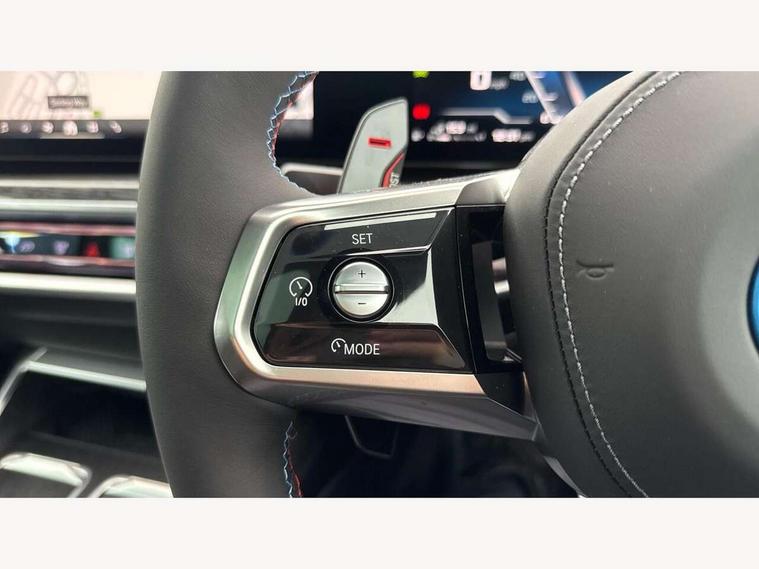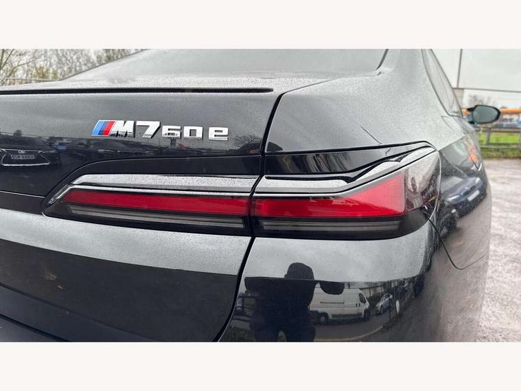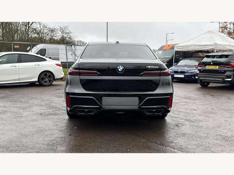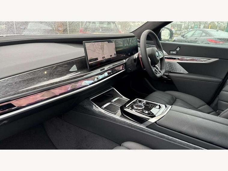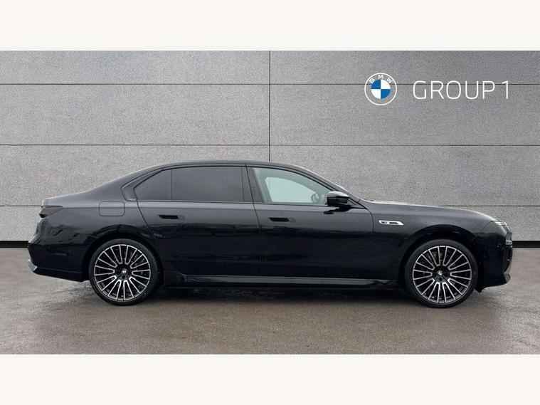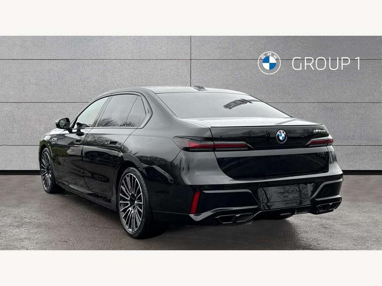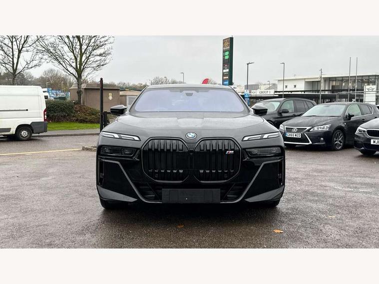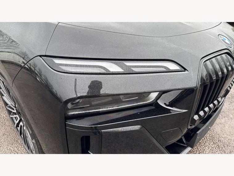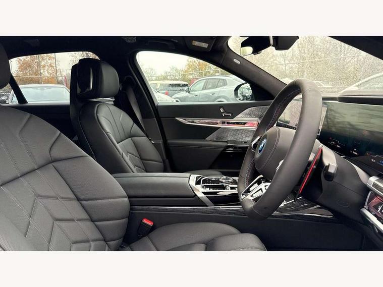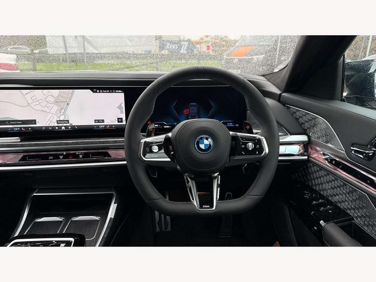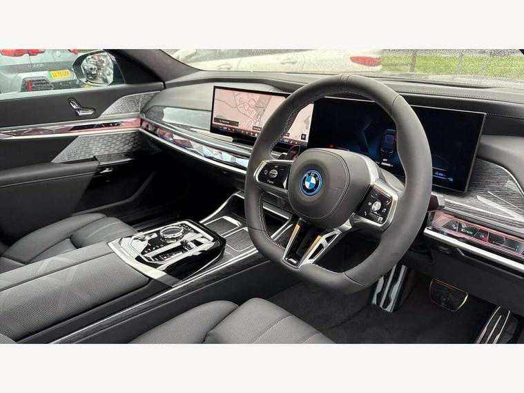 Active guard professional, Attentiveness assist, BMW ConnectedDrive - Online, BMW gesture control, BMW Iconic sounds electric, BMW iDrive, BMW interaction bar, BMW legal emergency call, BMW Teleservices, BMW Touch command, Brake pad wear indicator, Comfort access system with smart opener, Condition based service, Driving Assistant Plus Preparation, Driving control panel, Electric boot lid - electrically opening/closing rear tailgate, Executive drive pro, Instrument panel joint diffuser in black, Integral active steering, Live Cockpit Pro with head up display including 12.3" instrument cluster and 14.9" central display, My Modes, PAS, Rollback prevention, Run flat indicator, Smartphone wireless charging plate, AC fast charging maximum power 11kW, Adaptive 2-axle air suspension, BMW xDrive system, Steptronic sport transmission, 2x USB Type C ports in front centre console for charging and data transfer, 2x USB Type C ports in rear centre console for charging, DAB Digital radio, Personal eSim, BMW badge on front and rear, BMW radiator grille, Climate comfort windscreen, Daytime running lights, Deletion of front/front side sills and side rear apron, Door handle flush to surface including lock barrel on driver side, Dynamic brake lights, Electric adjustable door mirrors, Electric front and rear windows with fingertip open/close + anti-trap all round and comfort closing function, Electric heated door mirrors, Entry sills, Extended high gloss shadowline exterior trim, Exterior mirror base, Exterior mirror cap, Front and rear bumper panel, Front windscreen wiper in wet-arm technology, Ground lighting, Heated rear window, High beam assistant, Iconic Glow Illuminated Kidney Grille, Interiror rear view mirror, M rear boot spoiler in black sapphire, M Sport exterior styling, Model badge, Number plate lights, Number plate panel, Rain sensor + automatic driving lights control, Rear boot, Rear side wing doors, Roof aerial housing in black, Side window frames, Sun protection glass, Tailpipe trims, Third brake light, Towing eye, Trailer stabilisation logic, Two-part front light, Welcome lighting, Window recess finisher strip, Window washer nozzle for reversing assist camera, 12V power sockets, 2 upper retaining strap clips in parcel shelf, 3 seat bench in 2nd row, 3 spoke leather M steering wheel in BMW M specific design with M badge, 4 coat hooks in B-pillar and roof grab handle in rear, Ambient interior lighting, Bag hooks on luggage compartment trim panel, BMW ID, Central folding rear headrests, Comfort cushion in rear seats, Contour illuminated front and rear door pocket, Door sill finishers with BMW designation, Electric seat adjustment with memory, Electrically opening glove compartment, Footrests and pedals in plastic, Footwell courtesy lights front and rear, Four lashing eyes in luggage compartment, Four zone automatic air conditioning, Front and rear cupholders x 2, Front and rear reading lights, Front armrest, Front headrests, Grab handles, Heated front and rear seats, Illuminated front and rear centre armrest storage compartment, Illuminated glove compartment, Interior lighting, ISOFIX attachment point for both outer rear seats, Luggage compartment light, Luggage compartment removable panel, M sport interior styling, Multifunction steering wheel, Multifunctional front seats, Reach and rake adjustable steering column, Rear centre armrest, Rear door entry light, Rear door exit lights, Single front passenger seat, Soft close doors, Standard driver and front passenger seat, Stationary cooling and heating, Storage compartment in central/rear centre console, rear centre armrest, Storage compartment with cover on left, without cover on right in side trim panel, Sun visors for driver and front passenger with illuminated vanity mirror with slide cover, Through loading system, Velour floormats, Wireless charging tray, Connected Package Professional - 7 Series, Expanded exterior mirror package - 7 Series, 3 point seatbelts on all seats, Acoustic protection for pedestrians, Active protection, Anti-lock braking system (ABS), Automatic Stability Control (ASC), Brake assist, Brake drying, Braking readiness, Child locks on rear doors, Cornering brake control (CBC), Crash Sensor - activates hazard/interior lighting + unlocks doors, Driver and front passenger airbags, Driver central airbag, Driver/front passenger side airbags, DSC - Dynamic Stability Control, Dynamic brake control, Electromechanical parking brake + auto hold function, Front and rear brake discs, Head airbags for first and second row seats, Integrated braking system, PC iBrake PostCrash approach control warning with light braking function, Rear airbags, Tyre pressure monitoring system, Tyre pressure sensors, Warning triangle and first aid kit, Closing system with central locking, Electronic vehicle immobiliser, Fuel filler flap/charging socket flap in body colour, Locking wheel bolts, Remote central locking, Thatcham Cat.1 alarm, Vehicle key, Front centre console decorative trims, Tyre repair kit,