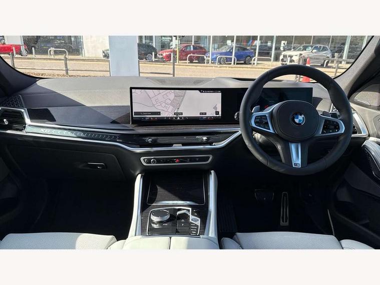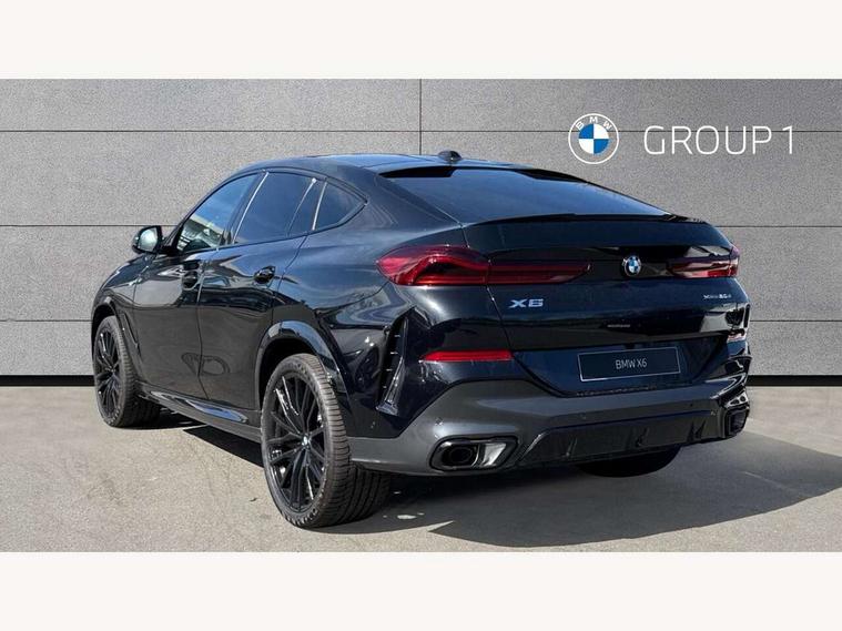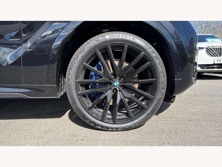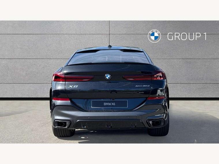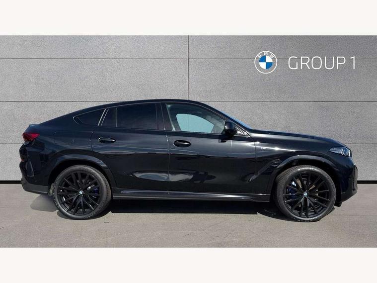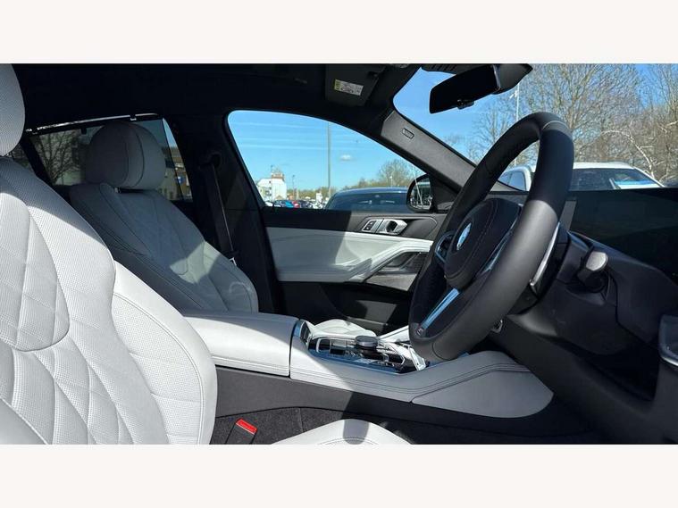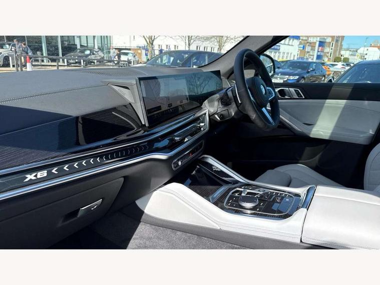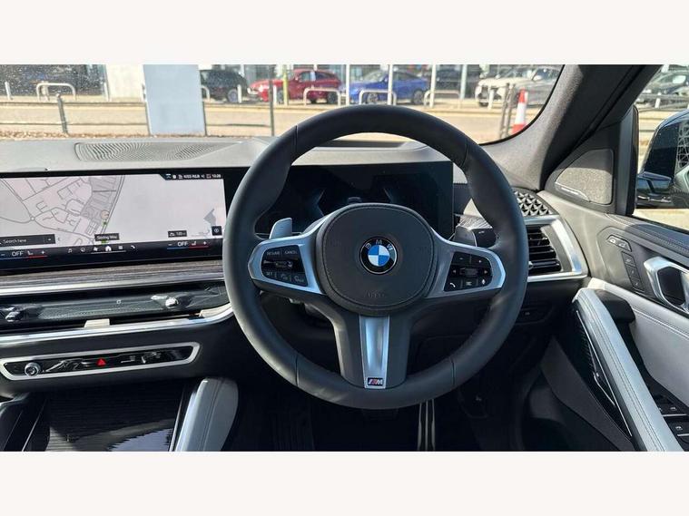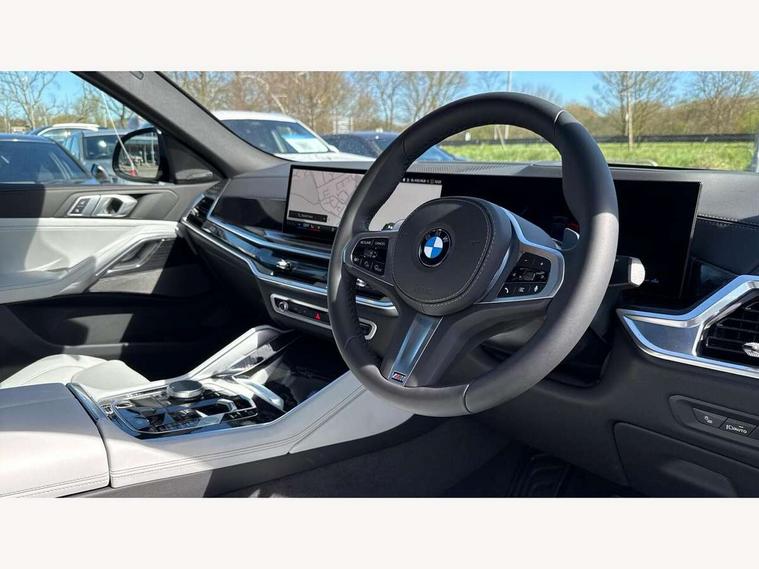 Active guard plus, Attentiveness assist, Automatic tailgate two part with top hinged section open and manual bottom hinged section, BMW live cockpit + with curved 12.3 instrument cluster/14.9 central display, nav/Tuner with diversity reception, RDS/4GLTE/remote software upgrade, BMW Recovery system, BMW Teleservices, Brake pad wear indicator in front and rear, Cruise control with brake assist, Driving experience switch, eCall emergency call system, Enhanced bluetooth with wireless charging, iDrive controller with shortcut buttons, Lights on warning, Oil sensor for level and grade, On board computer inc. average speed, fuel consumption, liquid crystal Info display, journey computer, outside temperature display, personal profile, Personal e-SIM, Service interval indicator, Speed limit info display, Speed limiter, Wifi hotspot preparation, 8 speed automatic with steptronic transmission including automatic hold function and gearshift paddles on the steering wheel, Diesel particulate filter, Double wishbone front axle, Drive performance control with ECO PRO comfort + sport mode, Safety battery terminal clamp, Variable vane geometry, DAB Tuner enables digital radio reception, Favourite buttons, Adaptive LED Headlights, Door locking - after driving off to secure vehicle, Dynamic brake lights with LED technology, Electrically adjustable and heated aspheric folding side mirrors with auto dimming, electric fold in function, automatic parking function, Front and rear electric windows with open and close fingertip control, anti trap facility and comfort closing, Heated windscreen washer nozzles, High beam assistant, Integrated turn indicators (door), LED daytime running lights, LED technology rear tail lights, brake lights and turn indicators, LED technology reflector left and right integrated in tailgate, LED third brake light in rear spoiler, M high gloss shadowline, Mirror base in black matt, Rain sensor with automatic headlight activation and windscreen wiper control, Rear side wing doors, Trailer stabilisation logic, Welcome light setting when approaching the vehicle, 12V - Power sockets with 2x centre console and 1x luggage compartment, 3 seat bench in 2nd row, 40:20:40 split folding rear seats, BMW inscription in front and rear door entry sills with illuminated, Centre and rear interior light, Driver and front passenger sunvisors with illuminated vanity mirrors and ticket holder, Electrical steering column with adjustable height and length with activation and control on the steering column, Foldable rear centre armrest with 2 cupholders and storage compartment, Front and rear side armrest integrated into door trim, Front footwell lights, Front reading lights, Grab handles in 1st and 2nd row outer seats, Headrests for all seats, Light inside glove compartment, Luggage compartment lighting, Luggage net, M leather steering wheel, Make-up mirror lights, Multifunction controls for leather steering wheel, Multifunctional hooks, Single front passenger seat, Velour floormats, Ambient light interior package - X6, M Aerodynamic pack - X6, Parking assistant pack - X6, 3 rear seatbelts, Active protection, Airbags - driver/front passenger, rear and side, first and second row seats head airbags, front passenger seat airbag deactivation + knee airbag, Anti-lock braking system (ABS), Automatic Stability Control (ASC), Brake drying, Brake energy regeneration, Brake fade compensation, Braking pre-tensioning, Cornering brake control (CBC), Crash sensor inclu activation of airbags, interior light, safety battery terminal clamp, hazard warn flasher, unlock doors, deactivation of fuel pump, DSC - Dynamic Stability Control, Dynamic brake control, Dynamic Traction Control - DTC, Electromechanical parking brake with automatic drive away release and auto hold function, Electronic brake force distribution, Front and rear brake discs with interior ventilation, Front head restraints with anti-whiplash, Hill descent control, Hill start assistant, Integrated braking system, M Sport blue painted brake calipers with 'M' designation, Mechanical child proof lock on rear doors, PC iBrake (Post crash approach control warning with light braking function), Seat occupancy detection for driver and passenger side, Side impact protection, Two tone horn, Tyre pressure monitoring system, Variable torque distribution, Warning triangle and first aid kit, Alarm system, Automatic locking when moving away from the vehicle, Automatic unlocking when approaching the vehicle, BMW Digital key, Comfort access system, Contractless opening/closing tailgate, Key card with NFC technology, Keyless access to the vehicle, Locking wheel bolts, Locking/unlocking and starting the vehicle using compatiable smartphone,