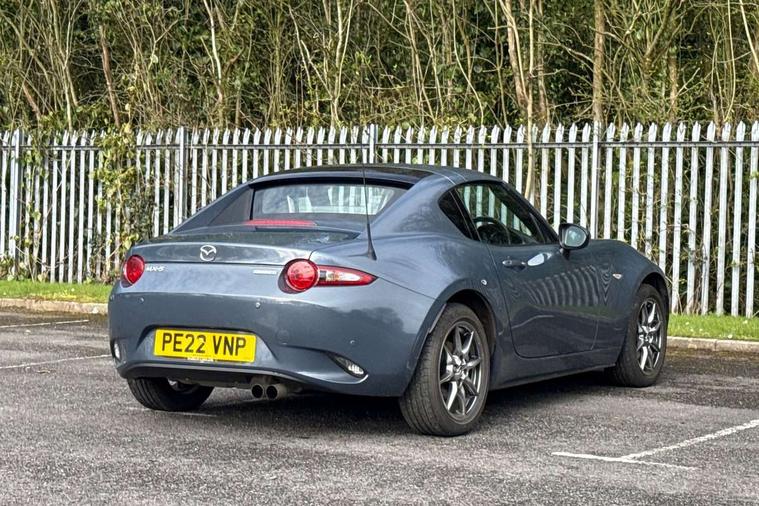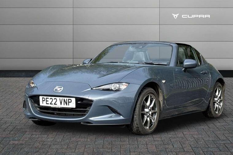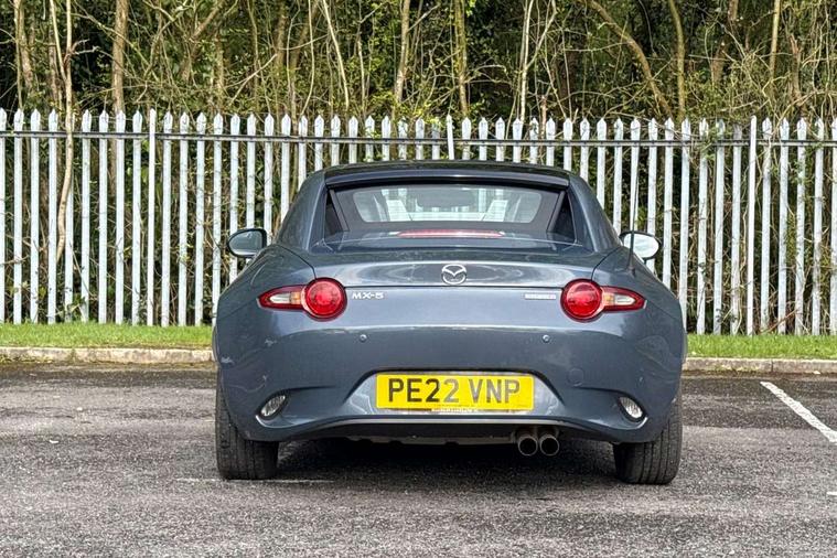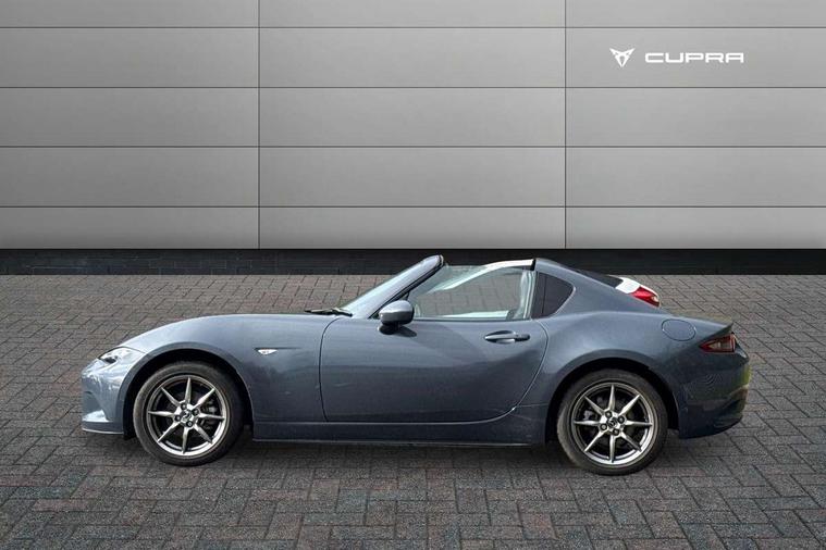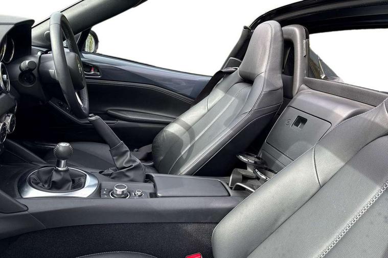 7" colour touch screen with Mazda connect infotainment, Aha and stitcher app, Analogue speedometer, Apple car play/Android Auto, Cruise control + speed limiter, Driver alert system, eCall emergency call system, Emergency stop signalling system, Engine start/stop button, Hands free phone preparation, Integrated bluetooth with hands-free calling, bluetooth audio and easy access to phone contacts, Integrated navigation system, Lane departure warning system, Multi dot display tachometer and electric odometer, PAS, Rear parking sensor, Service indicator, Traffic sign recognition, Trip computer, Water temperature gauge, I-ELOOP, i-stop, 2 USB/aux input socket, Multimedia Commander including separate volume dial, Premium Bose sound system with 9 speakers with 2 in each front headrest, AM/FM/DAB radio and MP3, Steering wheel mounted audio/bluetooth controls, Adaptive front lighting system, Auto dimming rear view mirror, Automatic headlamp levelling, Black scuff plates with stainless steel insert, Body colour bumpers, Body colour co ordinated interior upper door trim, Body coloured electric/heated door mirrors, Coming/leaving home lighting function, Dual exhaust pipes, Dusk sensitive headlamps, Electric front windows/one touch facility, High mounted rear brake light with Black coloured cover, LED 3rd brake light, LED daytime running lights, LED Headlights, LED indicator lights, LED rear lights, Manually operated black premium cloth soft top with heated rear glass window, Piano Black fashion bars, Rain sensing front wipers, Rear boot, 12V socket, Centre console storage box, Chrome Air conditioning dials, Climate control air conditioning, Coin Box, Driver and front passenger sunvisors with covered vanity mirror and driver ticket holder, Driver seat manual slide, recline and tilt adjustment, Front centre armrest, Front head restraints, Gear shift indicator, Heated front seats, in 3 heat levels, Interior courtesy light, ISOFIX front passenger seat child seat compliance, Leather gear knob, Leather handbrake lever, Leather steering wheel, Lockable rear centre box with lid, Passenger seat + manual slide/recline adjust, Perforated leather upholstery, Side door trim in black vinyl with silver stitching, Single front passenger seat, Sports seats, Tilt/telescopic steering column, Two cupholders, Windblocker, 3 point ELR front seatbelts with pretensioners, ABS+Electronic Brake force Distribution, Deployable Hood System (DHS), Driver and front passenger airbags, Driver and passenger seatbelt reminder audible warning, Front dynamic yaw stability control, Hill hold assist, Passenger airbag deactivate switch, SCBS - Smart City Brake Support, rear plus front with autonomous emergency braking, Side airbags, Traction control, Tyre pressure monitor, Remote central locking with deadlocking and remote boot release, Smart keyless entry, Superlocking, Thatcham category 1 alarm + immobiliser, Chrome air vent surrounds, Chrome meter rings, Dashboard panel - vinyl leather Black, 16" Bright Silver alloy wheels, Tyre puncture repair kit,