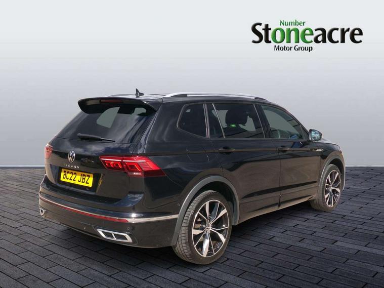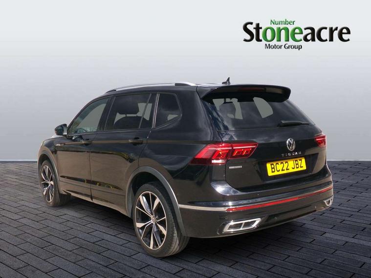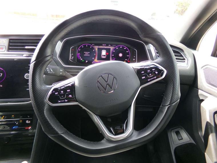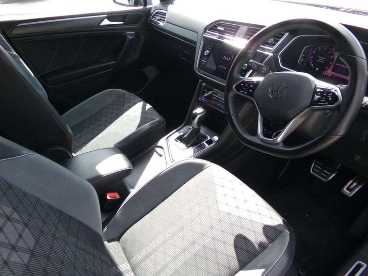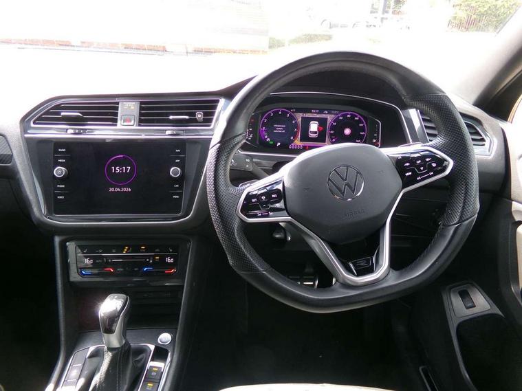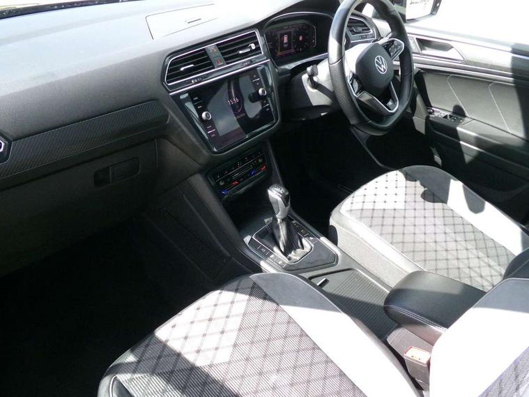 Adaptive cruise control, App-Connect, Digital cockpit pro, Driver alert system, Driver profile selection, Dynamic road sign display, eCall emergency call service, Electric boot lid, Lane change system side assist and rear traffic alert, Lane keeping system Lane Assist, Mobile phone interface comfort with inductive charging feature, Multifunction front facing camera, Power assisted speed sensitive steering, Speedo and rev counter, electronic odometer, trip, service interval display and exterior temperature gauge, Front wheel drive, Start-stop system with battery regeneration (recuperation - energy recovery during braking), 2 USB-C ports in the front, 1 USB-C charging socket on the center console in the rear, 8 Speakers, DAB Digital radio, Diversity antenna for FM reception, Radio, Auto dimming interior rear view mirror, Automatic headlight control system, Body coloured comfort bumpers, Chrome mouldings on side window, Coming/leaving home lighting function, Exterior badge deletion, Exterior mirror housings painted in silver, Heated windscreen washer jets, IQ light adv HBC, dyn light assist LED matrix headlamps, DH range, dark red LED rear combo light, poor weather, CL, LED headlamp with LED DRL and DCL - PXC, Privacy glass, Rain sensor, Rear fog light, Rear side wing doors, Rear wiper, Silver roof rails, Third brake light, Tilting and sliding panoramic sunroof, 12-volt outlet in centre console rear and luggage compartment, 12V socket in centre console, 3 head restraints in rear, 3 individual folding 2nd row seats, 3rd row 2 individual seats, Air Care Climatronic 3 zone automatic climate control with enhanced air filter and controls in the rear, Door and side trim panel, Drawers under front seats, Driver and front passenger seat height adjustment, Foldable front passenger seat backrest, Front + rear carpet mats, Front centre armrest, Front footwell illumination, Heated front seats, Illuminated scuff plates, ISOFIX anchorage points for mounting 2 child seats on rear seats and i-Size child seats, Leather gearshift handle, Leather-wrapped heated multi-function steering wheel with paddle shift, LED interior light with switch off delay/dimmer and 2 front/rear LED reading lights, Sun visors with illuminated vanity mirrors, Ambience pack - Tiguan Allspace, Driver assistance package - Tiguan Allspace, Easy open and close pack with safelock - Tiguan Allspace, Park assist pack - Tiguan Allspace, 3 point seat belt for centre rear seat, 3 rear three point seatbelts, ABS+EBD+Brake assist, Driver and front passenger safety-optimised head restraints, Driver's and front passenger's airbag with front passenger's airbag deactivation switch, Electronic parking brake, Electronic Stability Control (ESC) inc EDL (Electronic Differential Lock) and ASR (Traction Control), Height adjustable front 3 point seatbelts + pretensioners, Manual rear child locks, Pedestrian monitoring, PreCrash preventive occupant protection Front and rear, Rear disc brakes, Side airbag in front and rear with curtain airbag, Two tone horn, Warning buzzer for seatbelts if unfastened, Anti theft alarm system with interior monitoring, backup horn and towing protection, Anti-theft wheel bolts, Electronic steering lock, Remote central locking with 2 remote folding keys, Chequered flag tinanium decorative inserts,