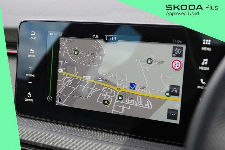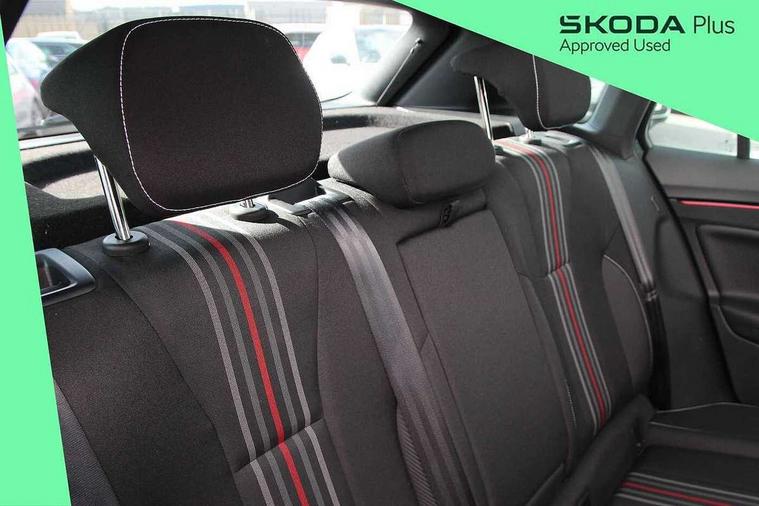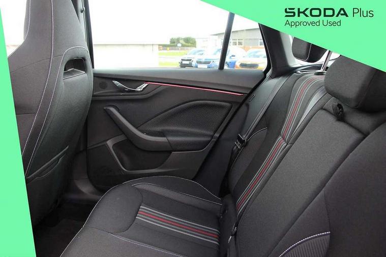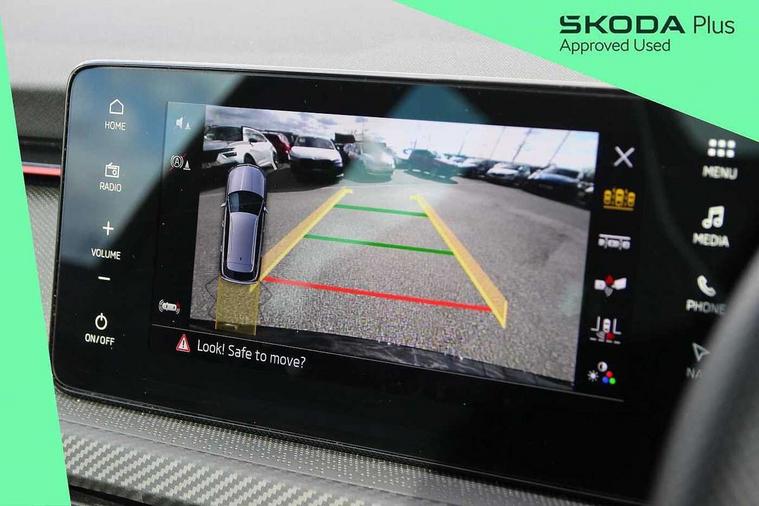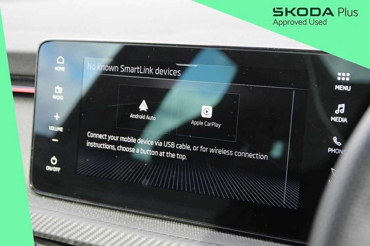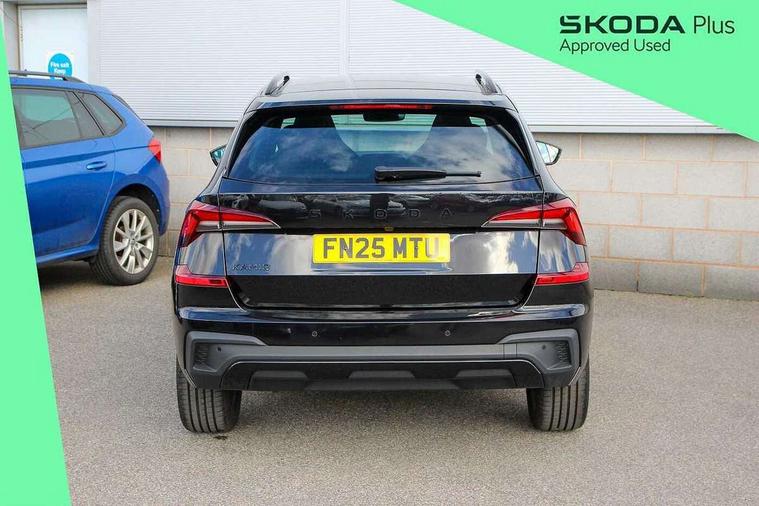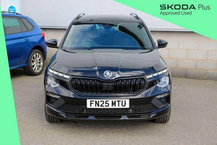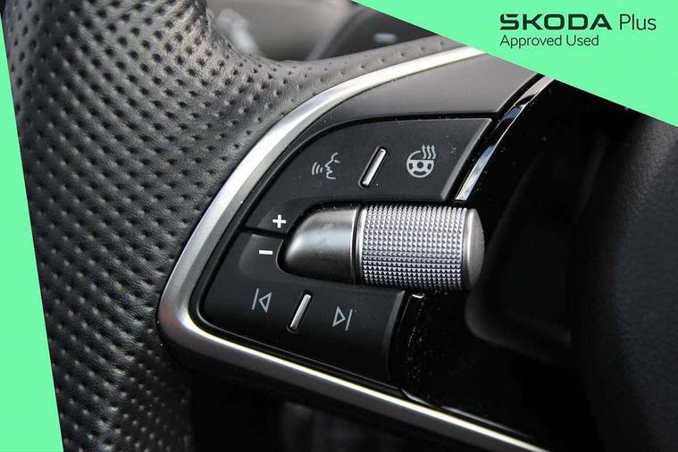 Advanced driver attention and drowsiness monitor, Bluetooth system, E-call, Front assist system, PAS, Rear parking sensors, Rear view camera, Service indicator, Speed limiter, Traffic sign recognition, Virtual cockpit with 10.25" display, Voice control system, Wireless smartlink, 4 USB C ports, 8 Speakers, 9.2" Skoda navigation display, DAB Digital radio, Auto dimming rear view mirror, Automatic headlight control with coming home and leaving home feature, Black door mirrors, Black radiator grille, Black rear diffuser, Black roof spoiler, Body colour bumpers, Body colour door handles, Boot lettering in black, Extended tailgate glass, Fixed panoramic sunroof with black roof rails, Front and rear electric windows, Heated rear window, LED daytime running lights, LED high beam, LED low beam, LED third brake light, Light sensors, Monte carlo plaque, Privacy glass, Rear side wing doors, Rear wiper, Ticket holder inside windscreen, 12V socket in luggage compartment, 3 seat bench in 2nd row, Aluminium pedals, Ambient lighting in white/red, Art leather carbon decor inserts, Art leather carbon door inserts, Black roof lining, Cargo elements, Chrome inner door handles, Driver and passenger sun visors with vanity mirror, Dual zone climate control, Front and rear roof lights, Front centre armrest, Front head restraints, Glove compartment with illumination, Height adjustable driver seat, Height adjustable front passenger seat, Ice scraper, Inner circulation control with pollen filter, ISOFIX on front passenger seat, Isofix preparation for back seats, Leather gearknob and handbrake lever, Manual lumbar support for front seats, Monte Carlo cloth upholstery, Net package and top tether hooks in boot space, Net under rear shelf, Pocket on the back of both front seats include mobile phone pockets, Rake/reach adjustable steering wheel, Reading lights, Rear centre armrests, Red hotstamping, Single front passenger seat, Sports seats, Textile floor mats, Third rear headrest, Top tether for front passenger seat, Umbrella in driver's door, Light and view plus package - Kamiq, 3x3 point rear seatbelts, Airbags - driver and front passenger, Disc brakes, ESP, Extended and predictive pedestrian/cyclist protection, Front passenger airbag deactivation switch, Front side airbags with curtain airbags, Hill hold control, Manual leather parking brake, Manual rear child locks, One tone horn, Seatbelt reminder for driver an co-driver, Traction control, Tyre pressure monitor, Anti-theft alarm system with interior monitoring, backup horn, towing protection and remote central locking with SAFE system, Anti-theft wheel bolts, Electronic engine immobilizer, 18" Ursa black diamond cut alloy wheels,