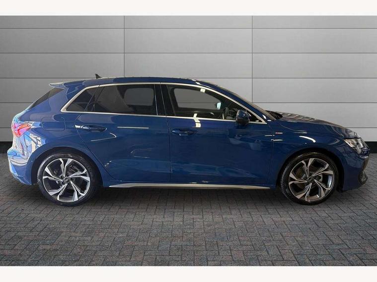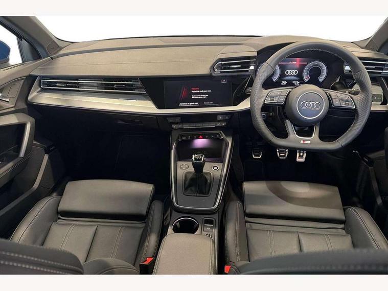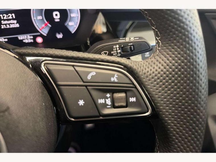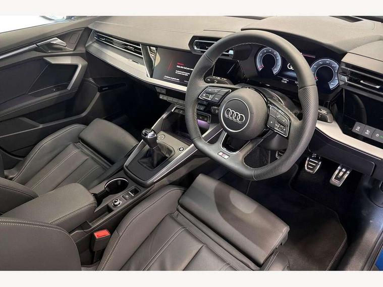 Adaptive cruise control (ACC), Adjustable speed limiter, Audi drive select (Auto, Comfort, Dynamic, Efficiency and Individual), Audi virtual cockpit plus - 12.3" full HD resolution dynamic digital instrument cluster, Automatic start/stop system with recuperation, Bluetooth interface, Camera based traffic sign recognition, Collision avoidance assistant, Driver attention and fatigue detection, e-Call (emergency call), Electromechanical power speed sensitive steering, Intersection assist, Lane departure warning system, MMI Navigation Plus with high resolution 10.1" colour touch screen display, Park Assist with parking system Plus, Reversing camera, Service indicator, Smartphone interface with app store includes wireless Apple carplay, Android auto and Amazon alexa integration, Trip computer, Voice control system with natural language interaction, Sports suspension, Audi Phonebox light with wireless charging, Audi sound system - 10 loudspeakers including centre loudspeaker and subwoofer, DAB Digital radio, USB ports with charging function in the rear, Acoustic glass windscreen, All weather light, Aluminium window trim, Auto dimming frameless rear view mirror, Automatic dynamic range control, Body colour exterior mirrors, Dipped beam, main beam, position light and turning light, Electrically adjustable/heated/folding/auto dimming door mirrors with integrated LED indications + kerb view function for passenger side, Exterior model badging, Front and rear side air inlets in grained matt black with dark liquid chrome frame, Front electric windows, Front radiator grill in high gloss dark chrome, Heat insulating glass windscreen, Illuminated door sills with aluminium inserts at the front with S logo, Intersection light, Invisible tailpipe, LED 3rd brake light, LED brake lights, LED daytime running x3, LED headlights with LED rear lights and dynamic rear indicators, LED rear number plate lights, LED reverse light, LED tail lights, Light and rain sensors, Manoeuvring light, Motorway light, Privacy glass - dark tinted rear window, rear door and side windows, Rear diffuser and grill in grained matt black with inlay in dark liquid chrome, Rear electric windows, Rear side wing doors, Rear wiper, S line bumpers, S roof spoiler, Side S line emblems on front wings, Side sill trim in dark liquid chrome, Static cornering light, 12V socket and storage compartment in front centre console, 3 seat bench in 2nd row, 3 spoke flat bottomed multi-function leather sport steering wheel, 3-zone deluxe automatic air conditioning, 4 way electrically adjustable lumbar support for driver and front passenger, 40/20/40 split folding rear seat bench, Black cloth headlining, Black front and rear floor mats, Front and rear centre armrest in artificial leather with contrasting stitching on armrests and instrument panel, Front and rear headrests, Heated front seats, Height and reach adjustable steering wheel, i-Size child seat mounting on the front passenger side and outer rear seats, i-Size and top tether on the outer rear seats, Manual boot compartment lid, Manually adjustable front seats, Rear centre armrest with cupholder, S badging on the steering wheel, Seat side bolsters, Single front passenger seat, Stainless steel pedals and front footrest in black, Twin leather upholstery with front sports seats S embossed logo, Aluminium interior elements pack - A3, Multi-coloured LED interior lighting package with Multi-coloured contour lighting of instrument panel - A3, 3x3 point rear seat belts, Driver and front passenger airbag with passenger airbag deactivation, Electronic Stabilisation Control (ESC) including ABS, ASR and EDL, First aid kit with warning triangle and 2 safety vests, Front side airbags with head airbags and interaction airbag, Hill hold assist, Pre-sense front with pedestrian and cyclist detection, Seatbelt monitoring, Tyre pressure loss indicator, Anti theft alarm, Anti-theft wheel bolts, Electronically operated child locks, Immobiliser, Black dashboard, Inlay in dark aluminium spectrum,